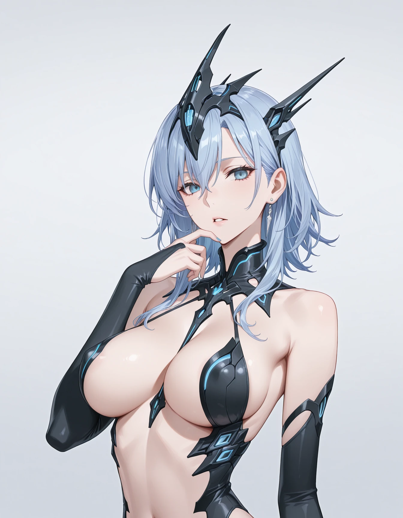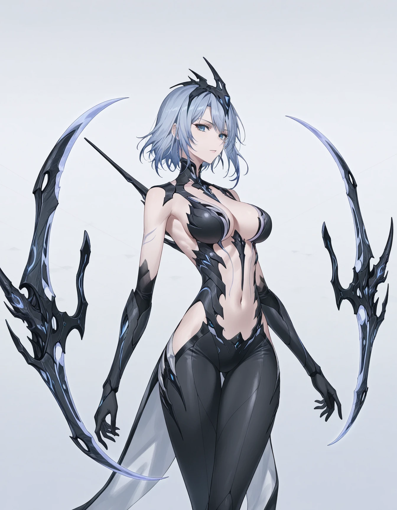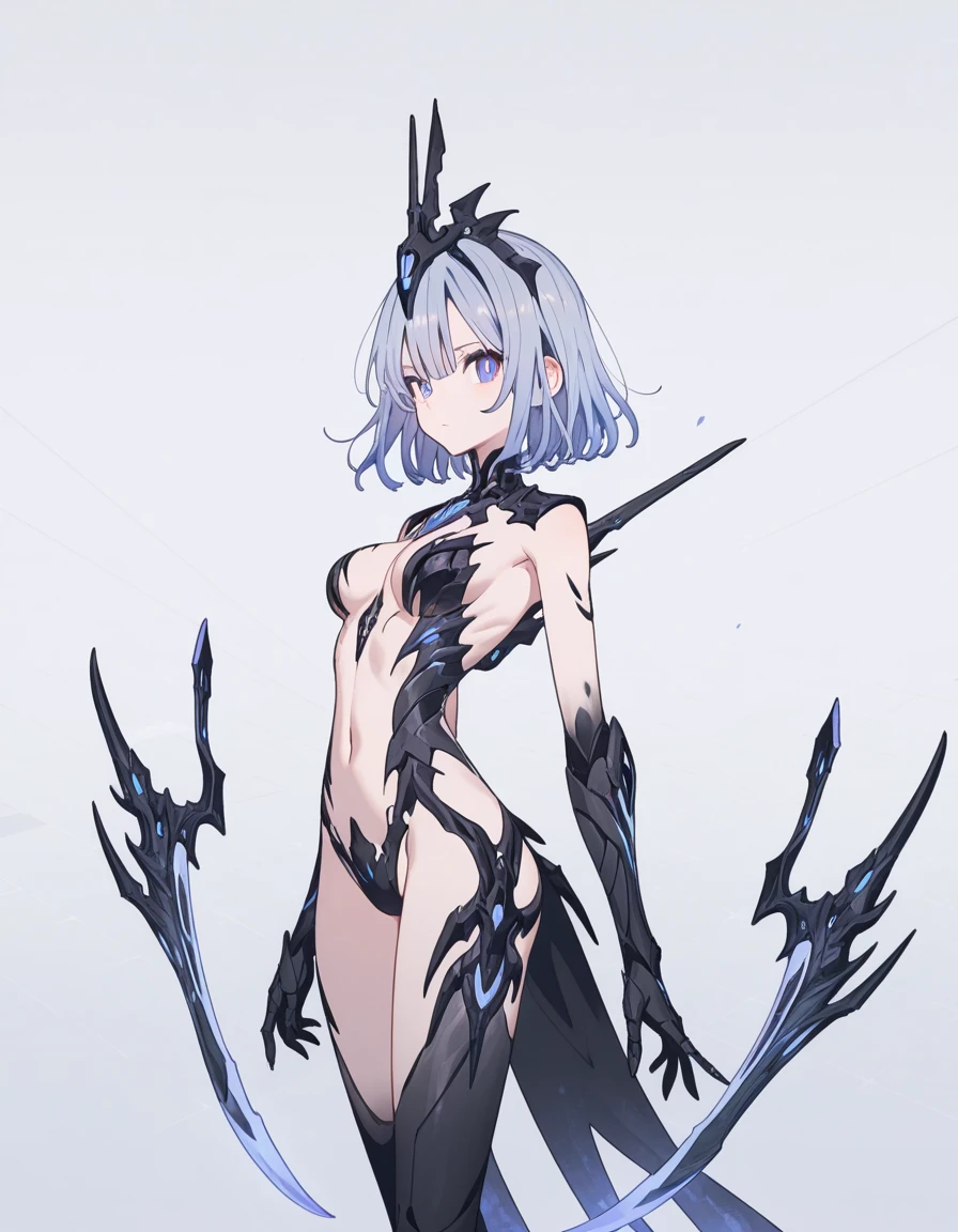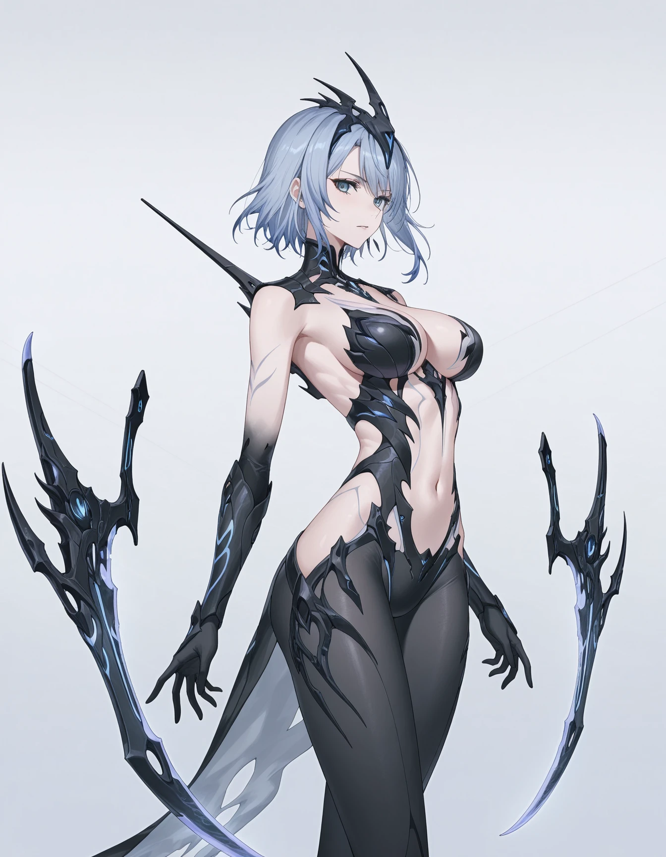 mai_pgr_qz, ,mature female, (age up:2),blue_hair, short_hair, high_heels, arm_blade, floating_weapon, headgear, blue_eyes, medium_hair, grey_hair, claw_(weapon)Recommend preferred Strength: 0.7~1.