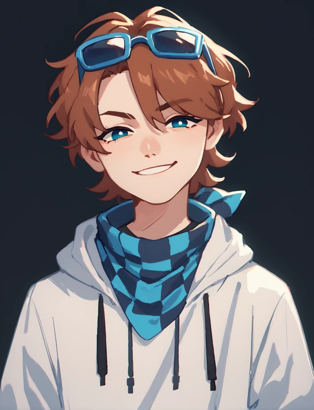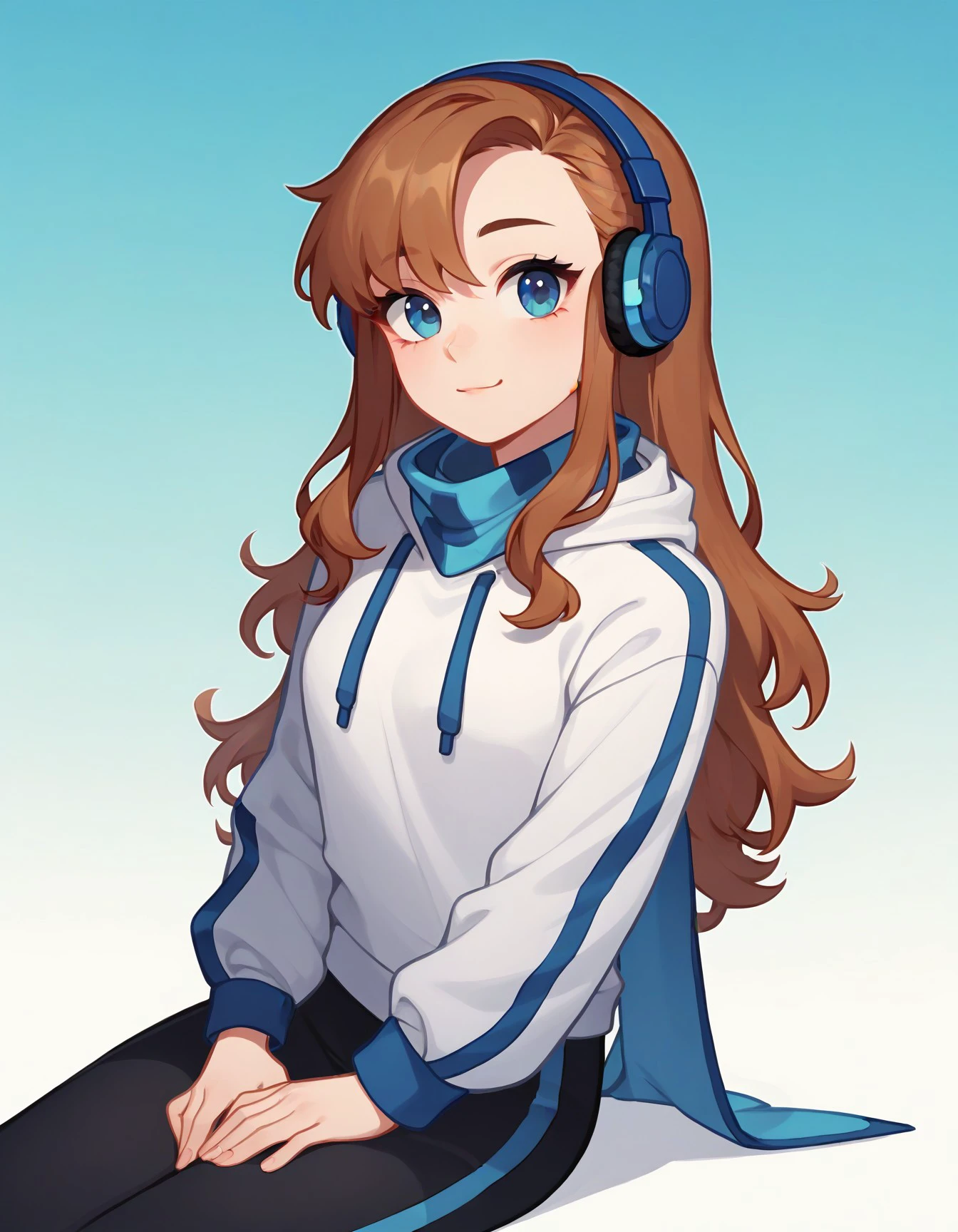 Suggested weight: 0.75-1. Triggers for basic outfit: blue sunglasses, blue headphones, white hoodie, blue scarf
