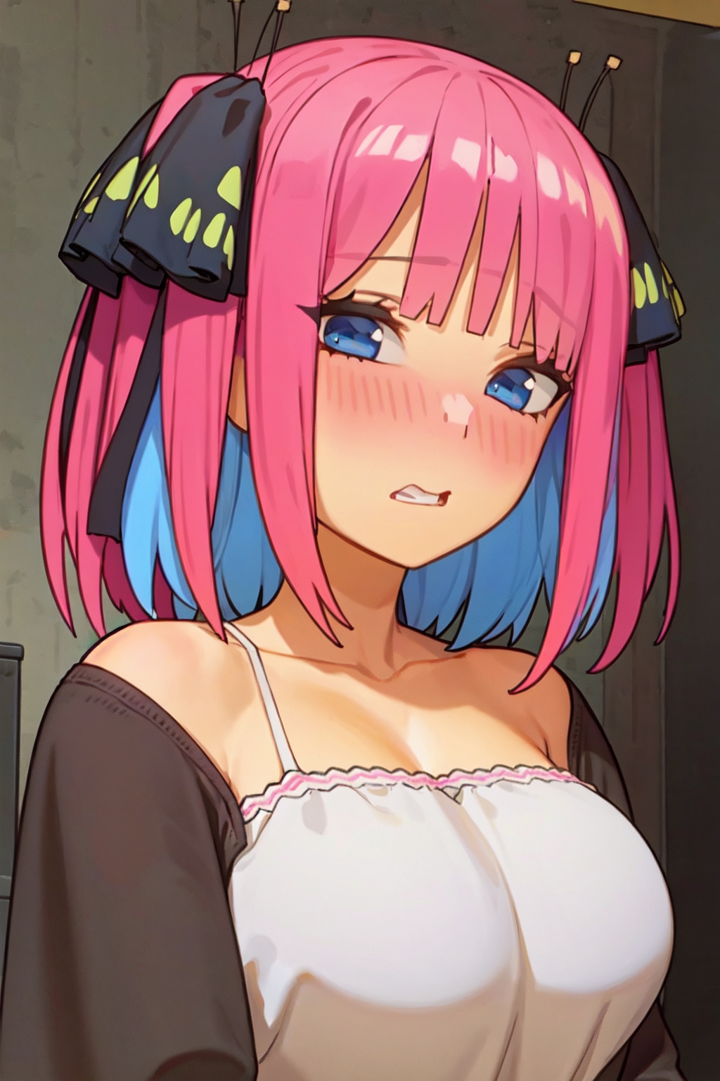 The model tends to produce close-ups, so I recommend adding close-up to negatives. Additionally, the default face expression isn't neutral and tends towards tokens like :3 or wavy mouth. Adding face expressions to your prompts or adding the above to your negative prompt should improve your generations. After I get some time to clean up the dataset and retrain the model, these problems should go away.