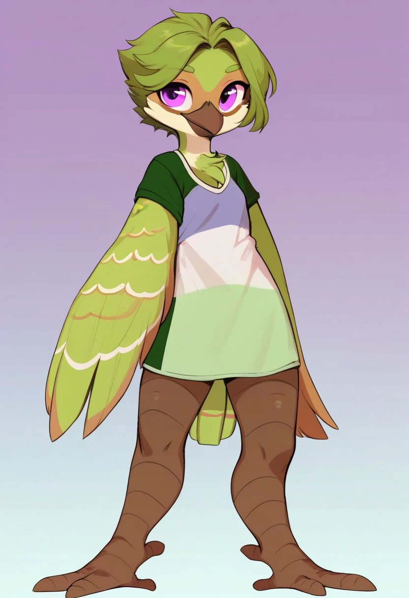 anthro bird, avian, beak, purple eyes, hair, winged arms