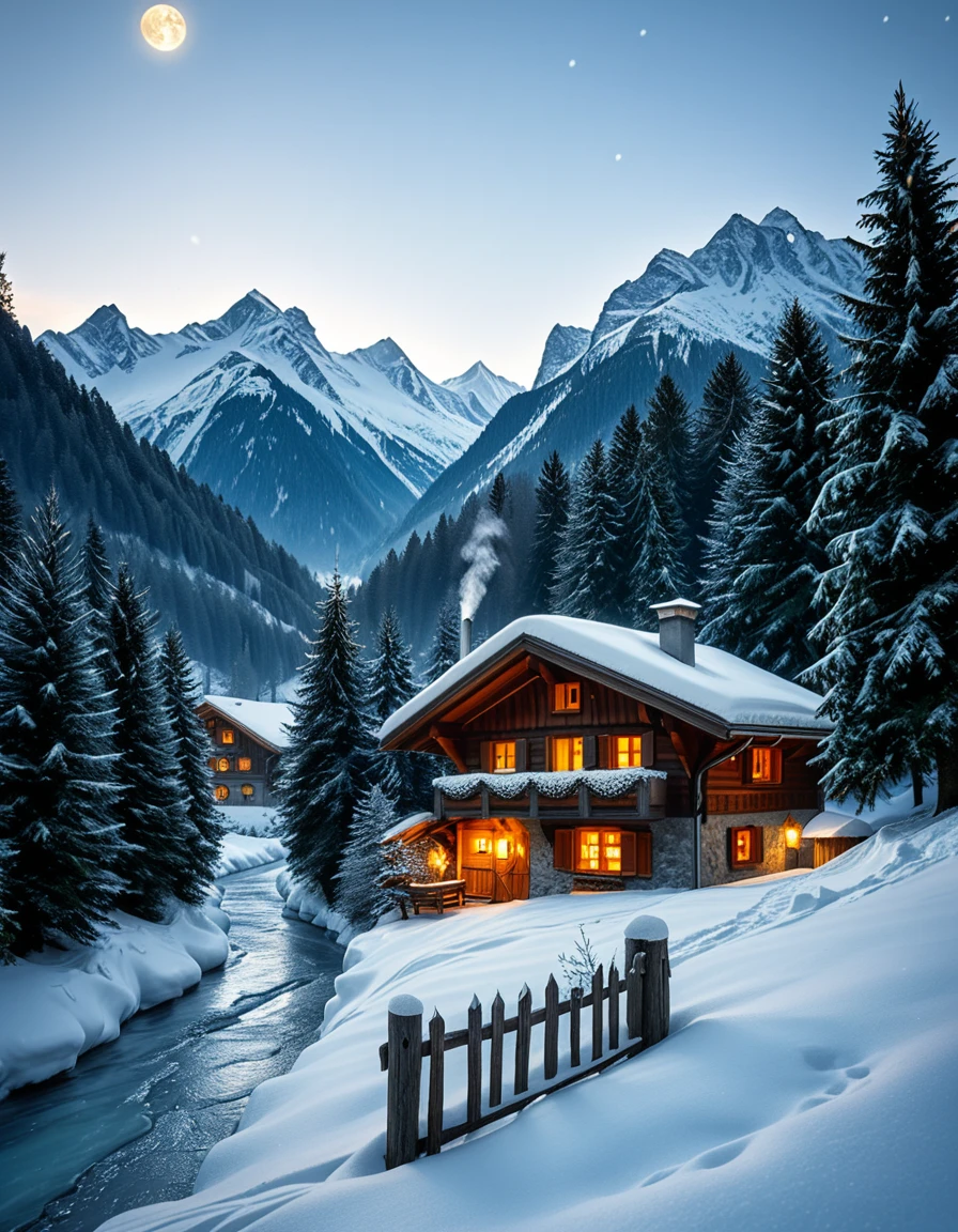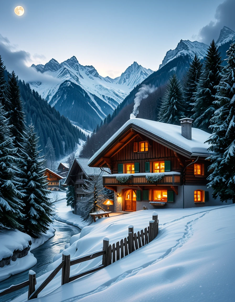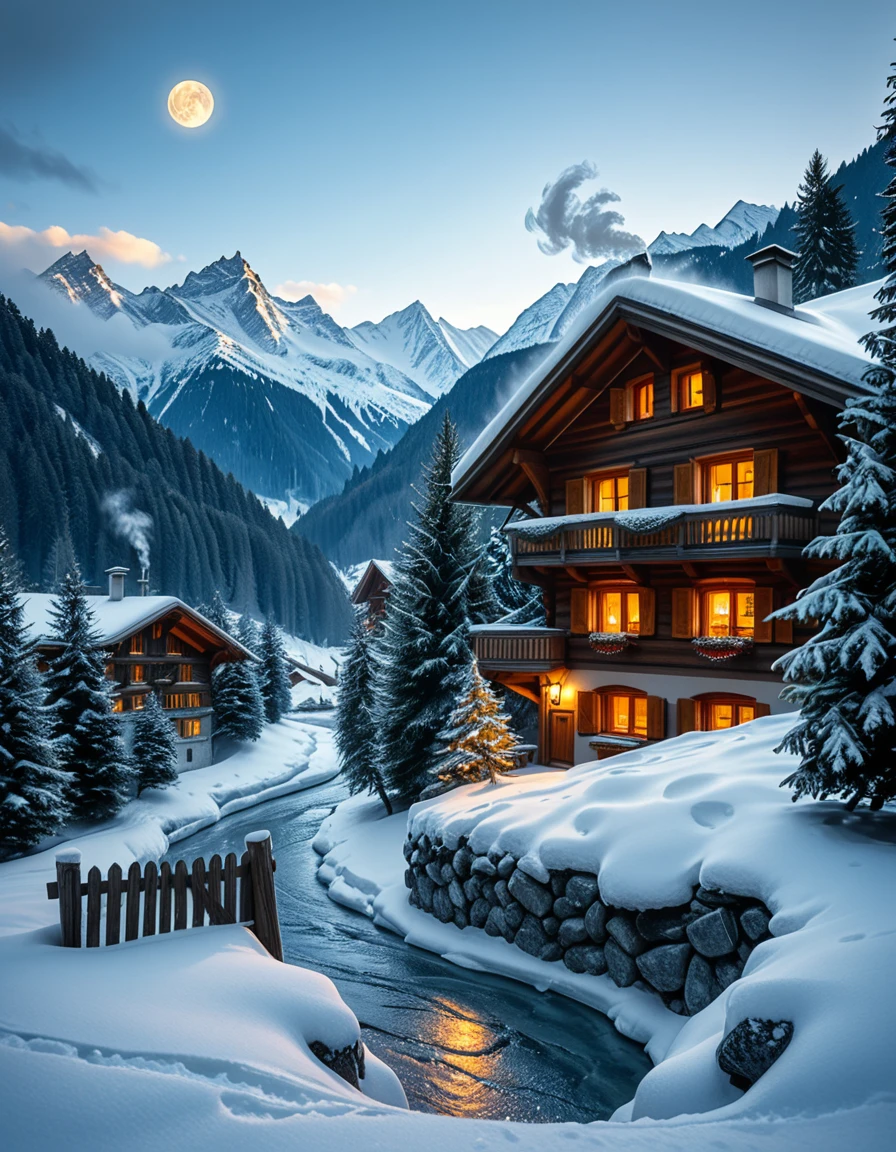 winter scene in the Tyrol,Thanks C0rn_Fl4k3s https://civitai.com/user/C0rn_Fl4k3s/images?sort=Newest to explain to me how to make lora, with my image set