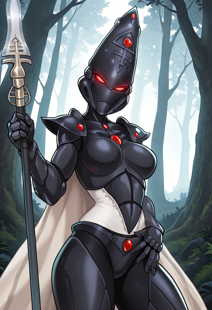 breasplate, back spikes, cape, shoulderpads, black gauntlets,long skirt