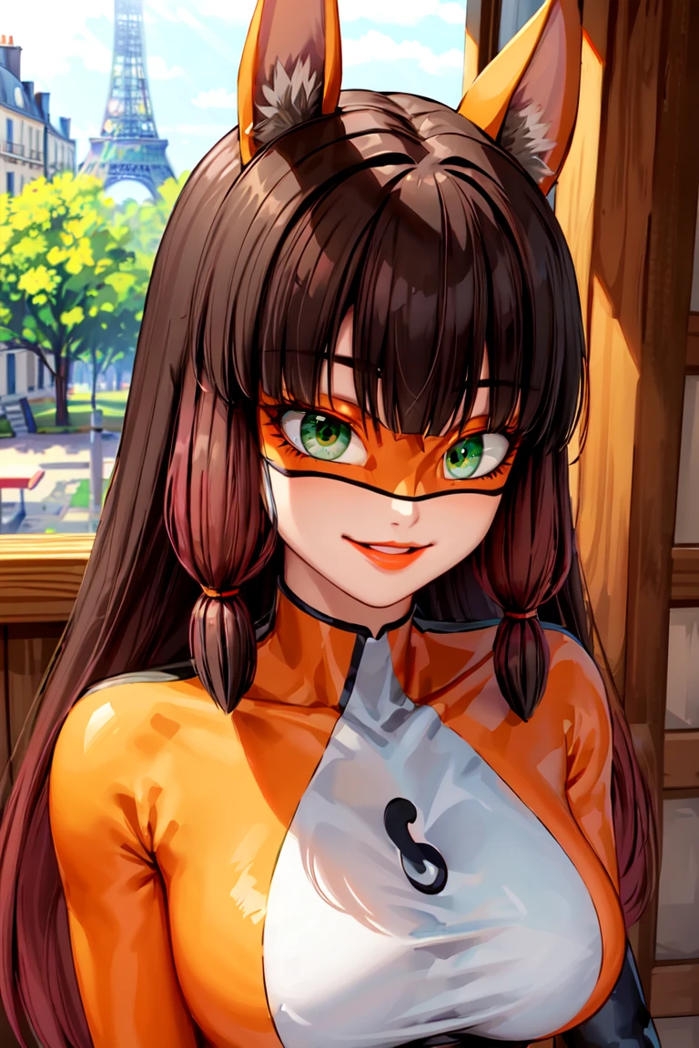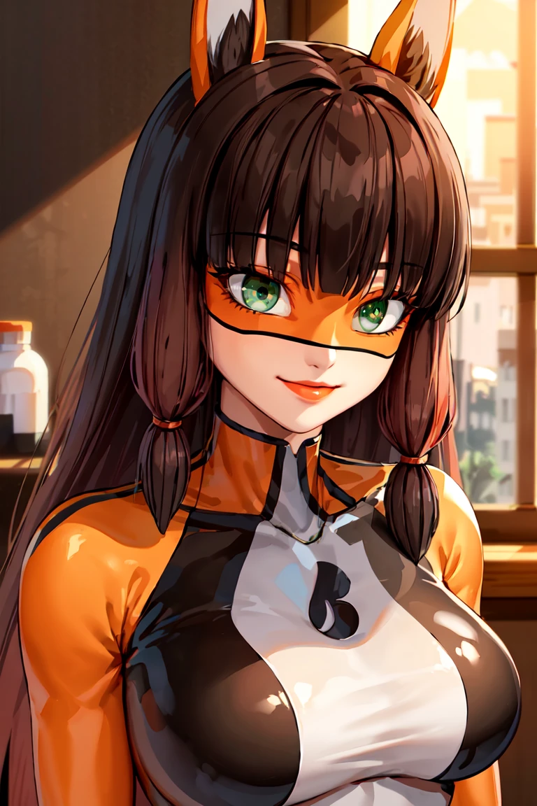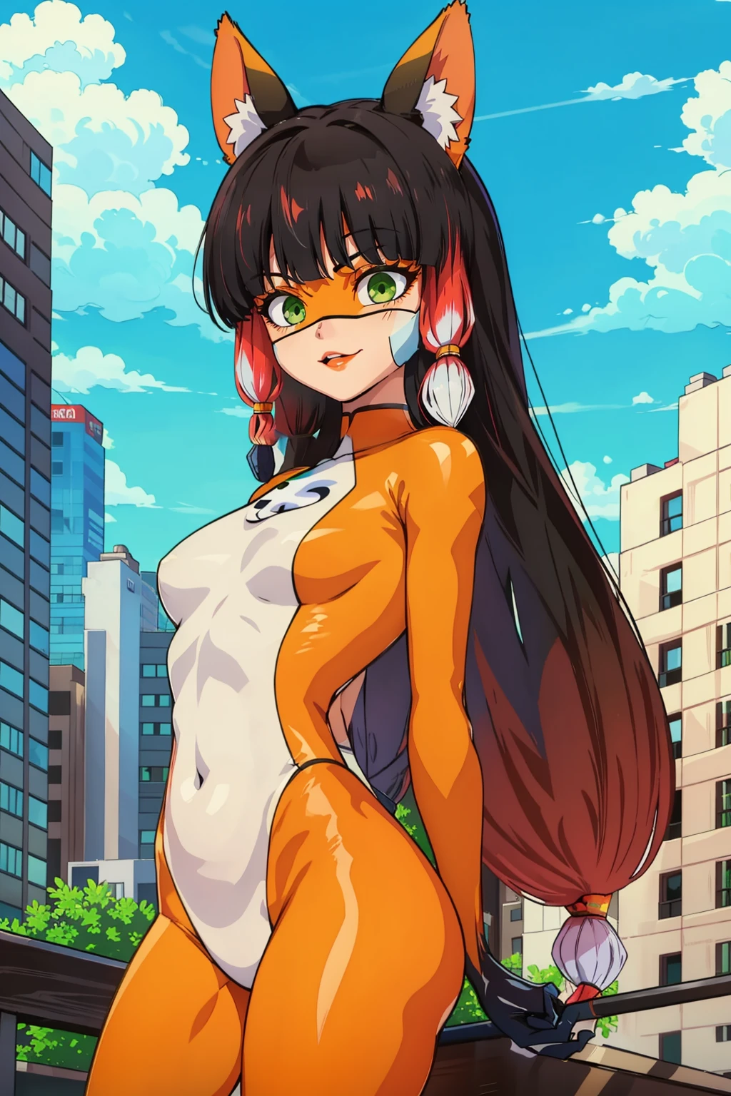 Triggerwords: lilavolpina, (mask, domino mask), orange bodysuit