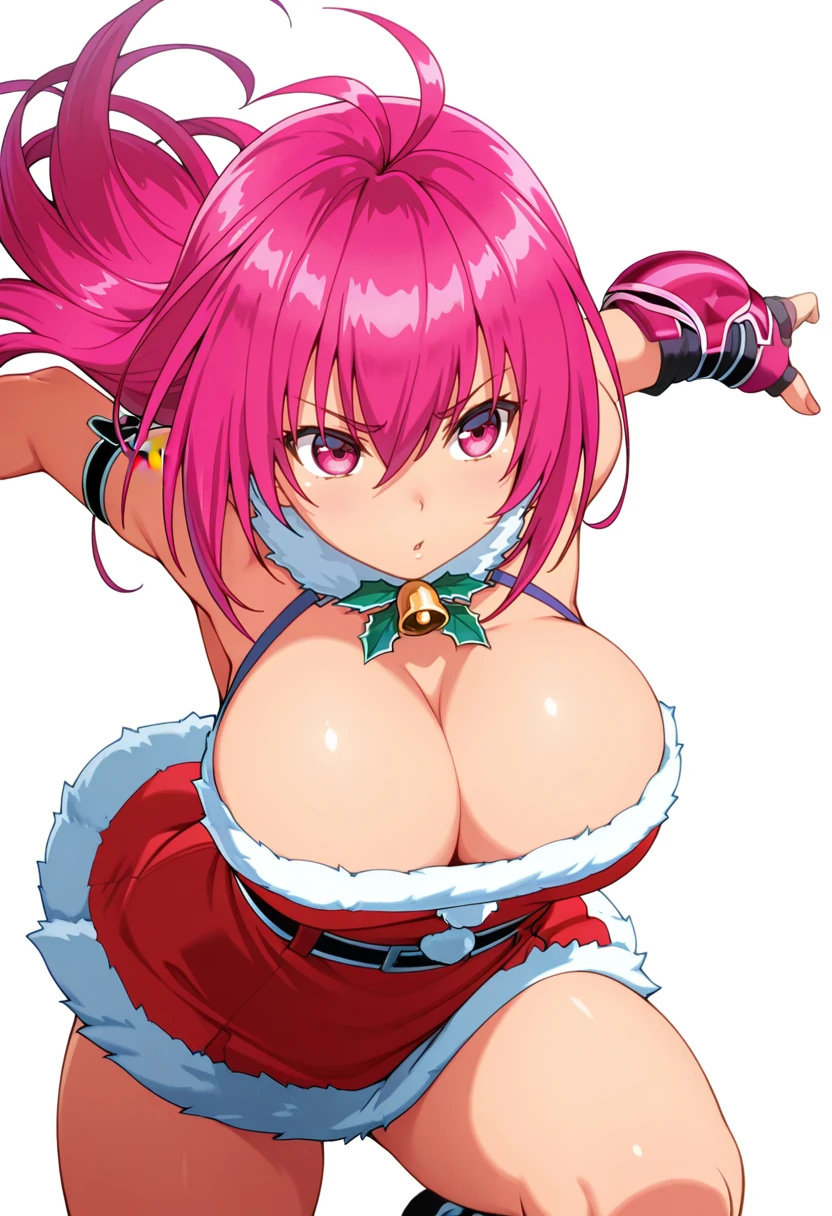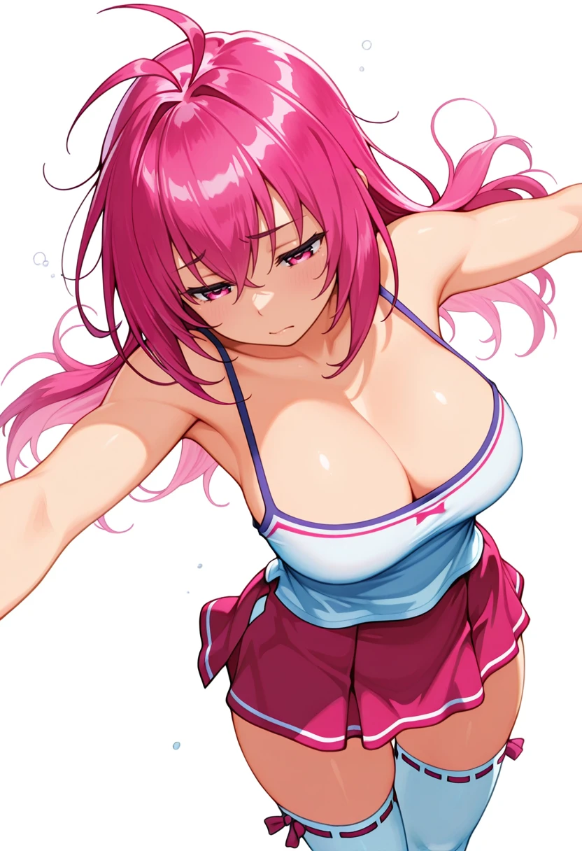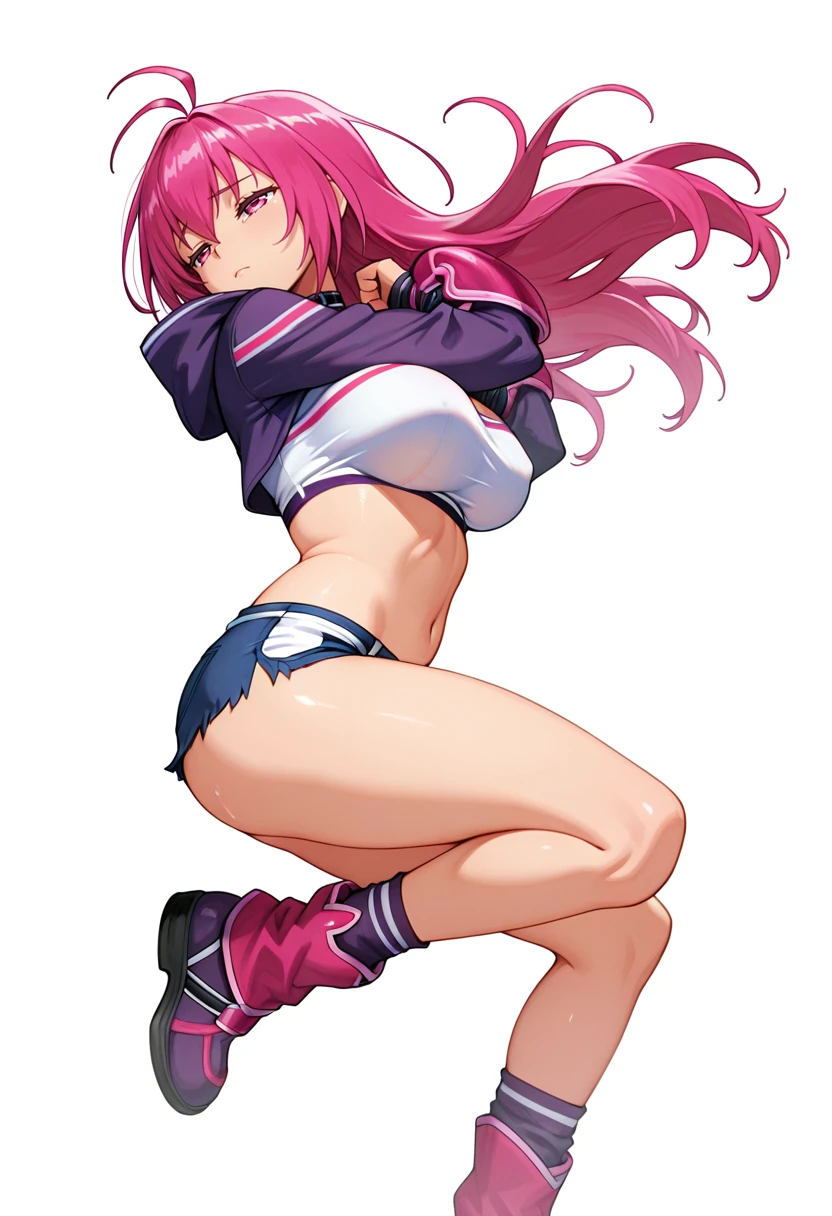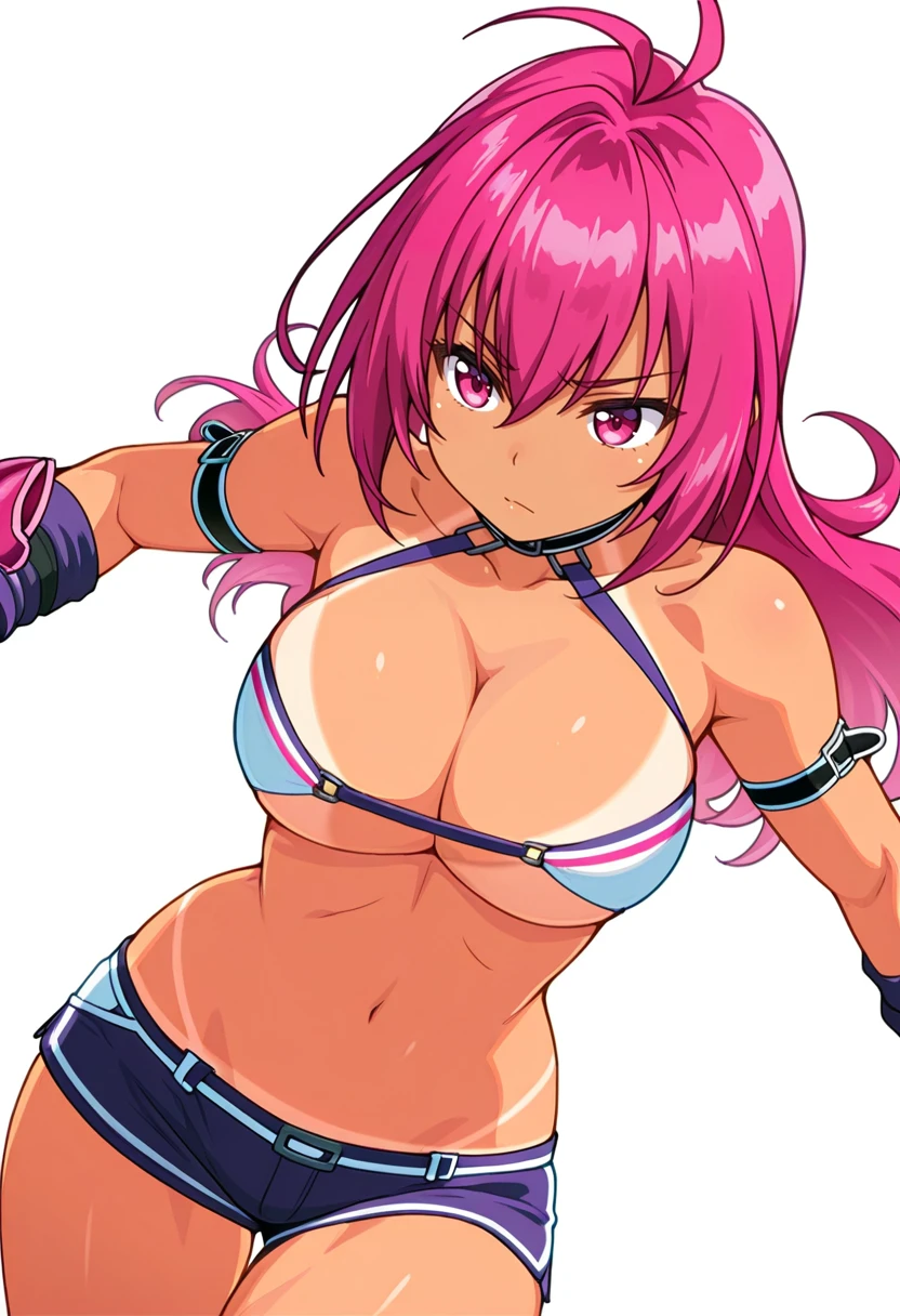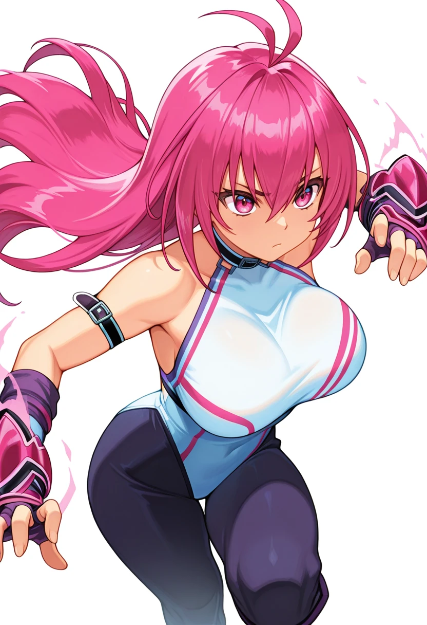 fighter_cnr, 1girl,long hair, pink hair, large breasts, pink eyes,antenna hair,