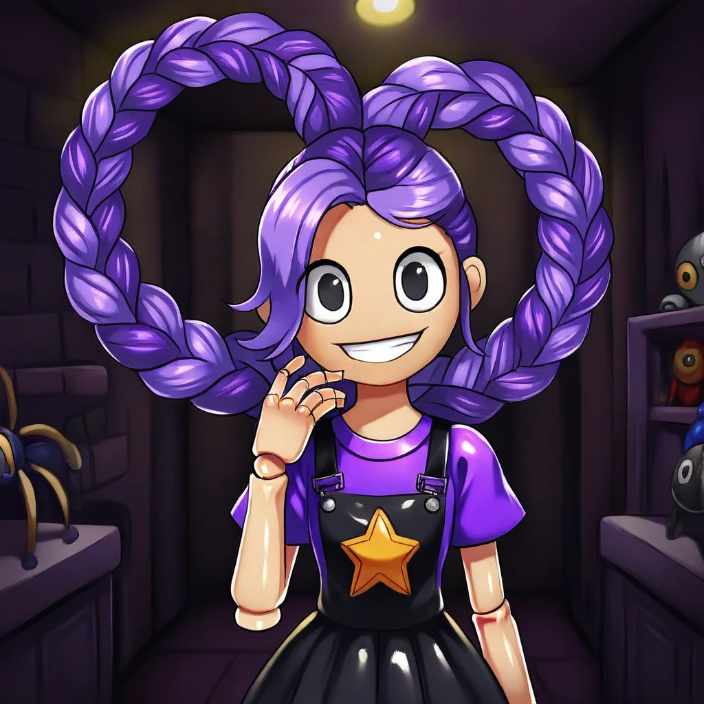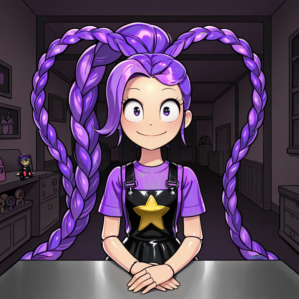 Lily(character), female, purple hair, braids, doll, two toned hair, 3 braids, multiple braids,