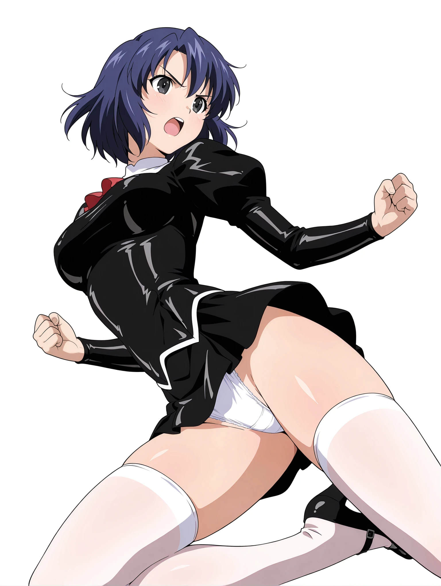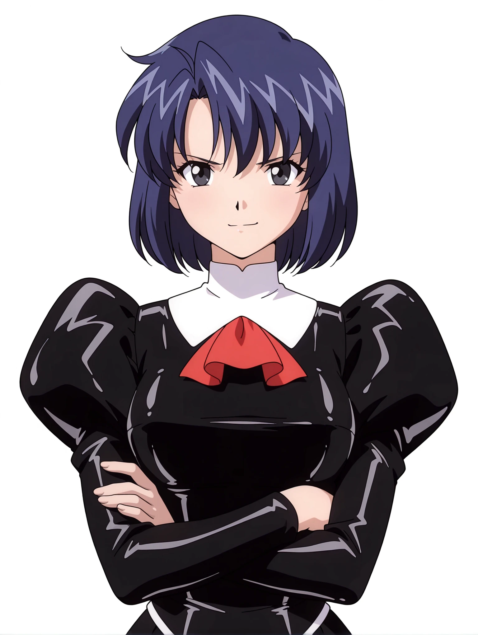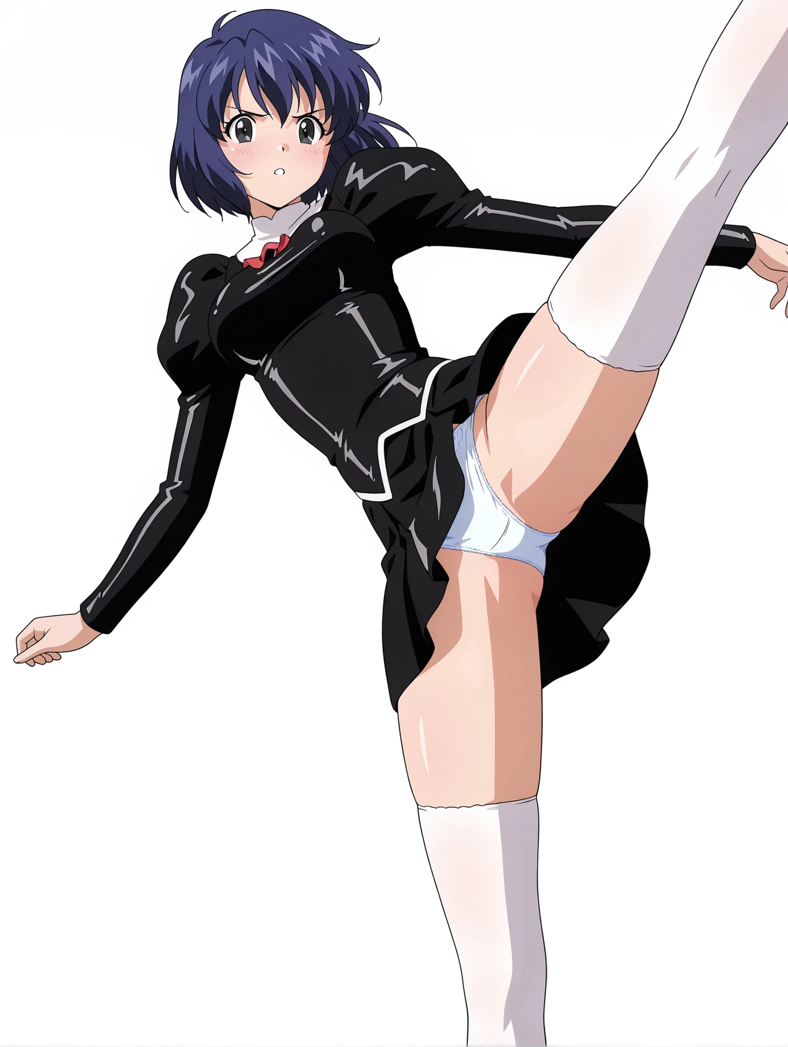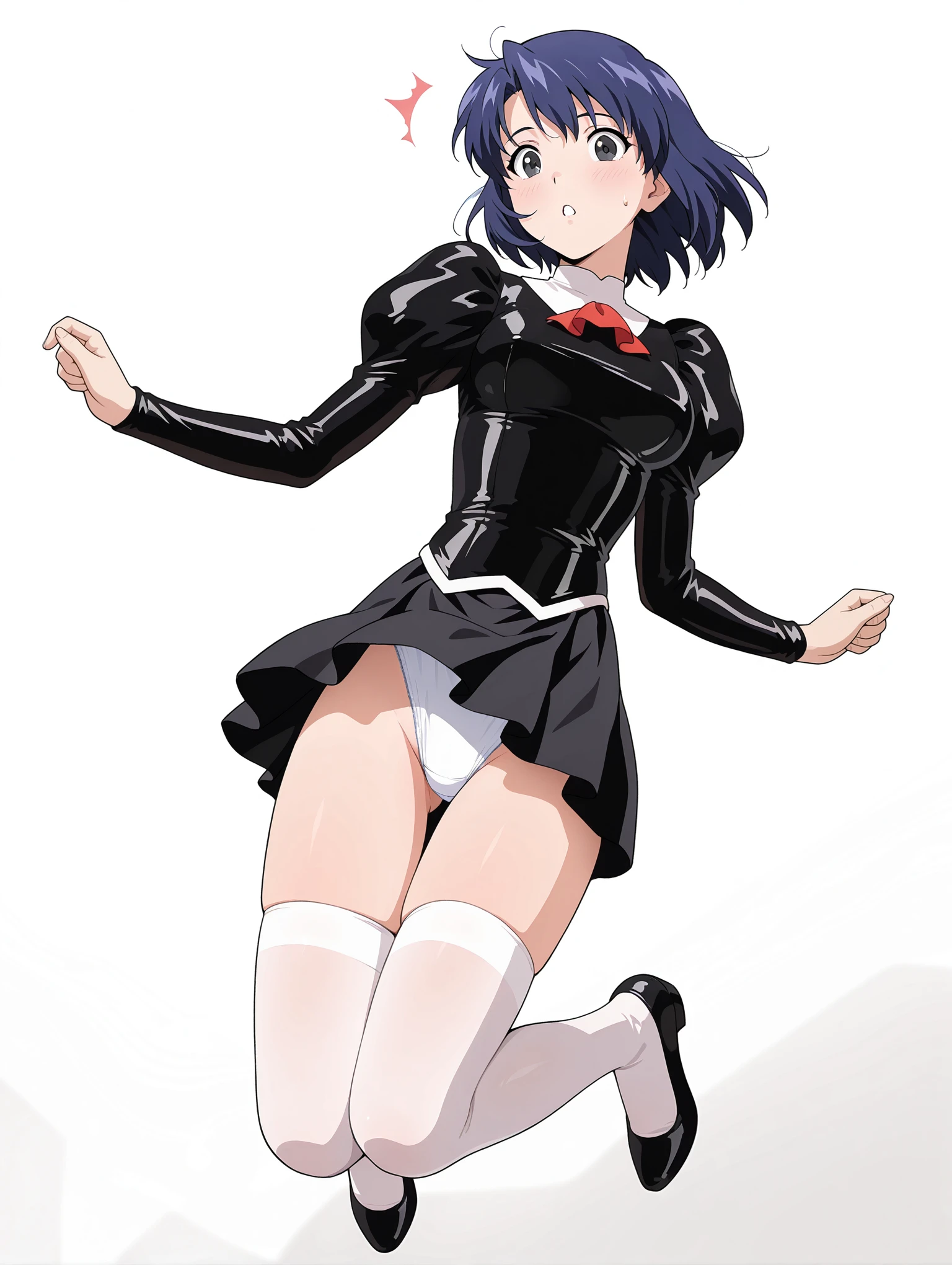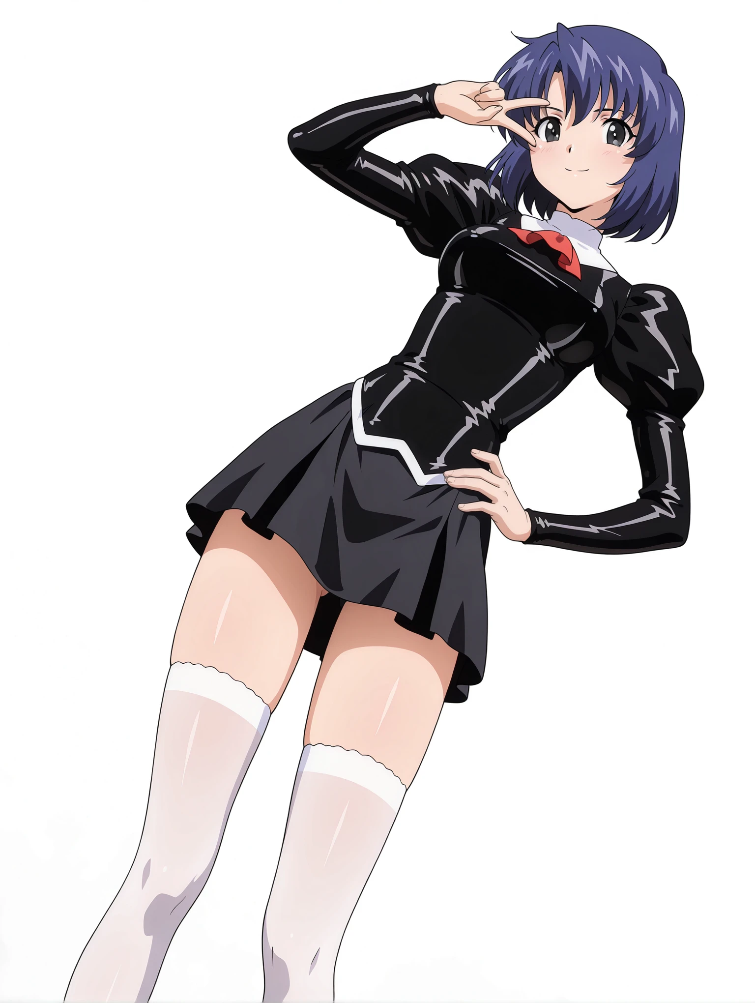 d_clothes,red ascot,black dress,juliet sleeves,long sleeves,bare hands,black skirt,white thighhighs,