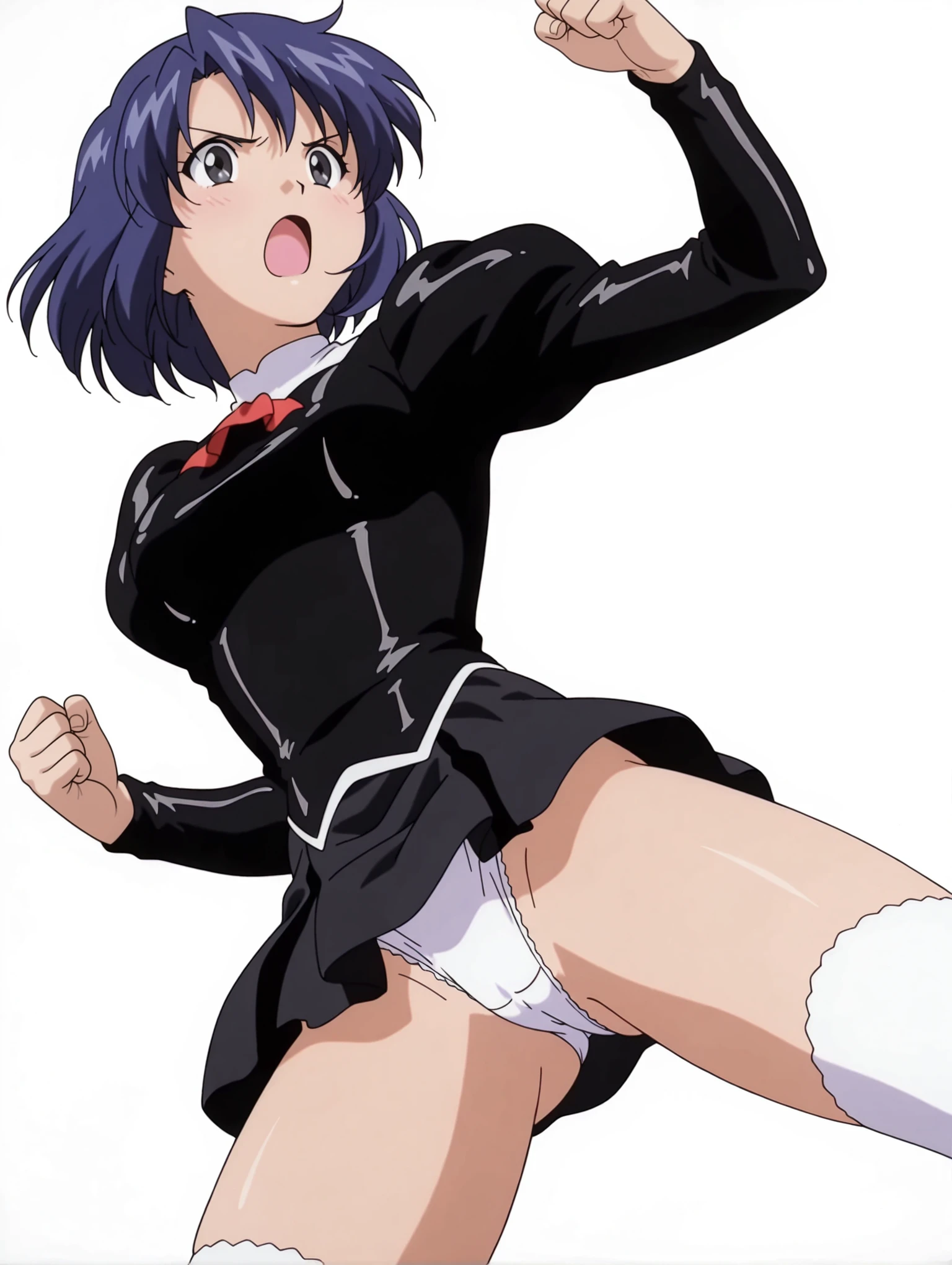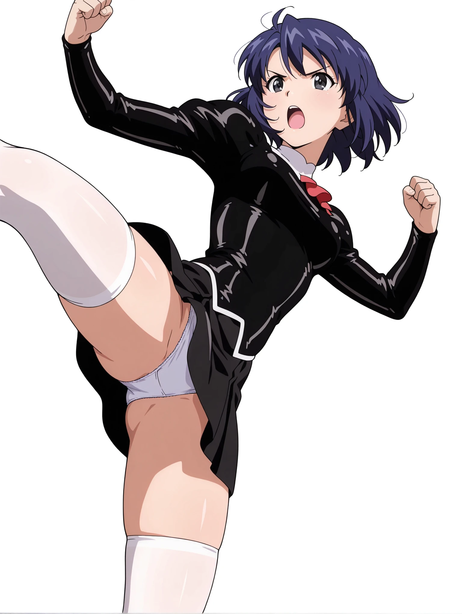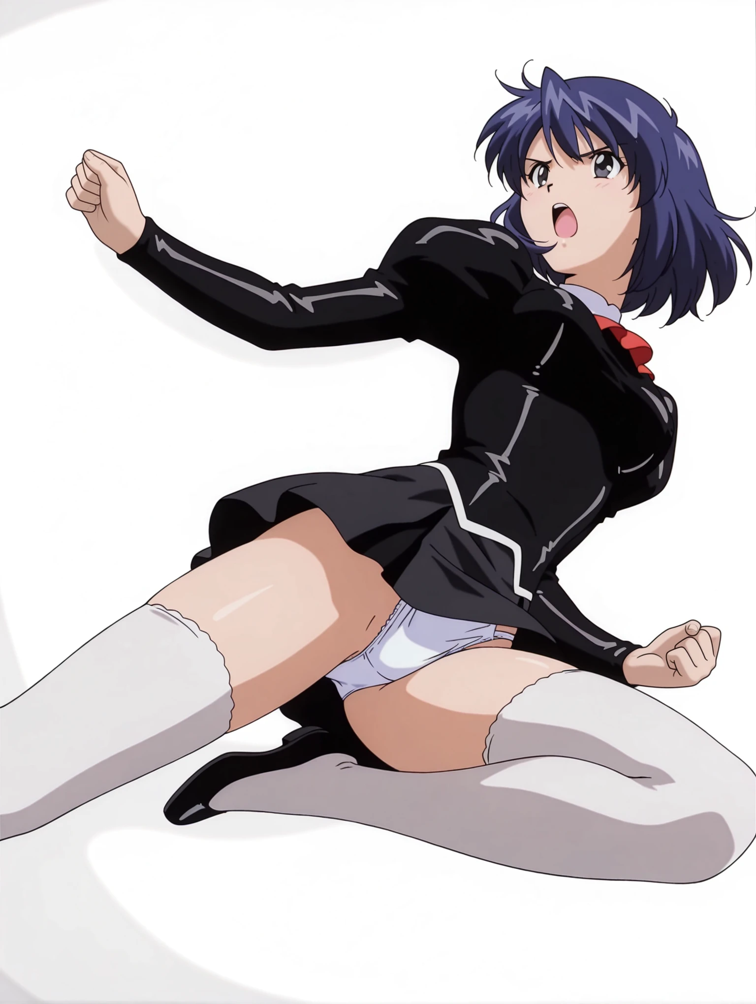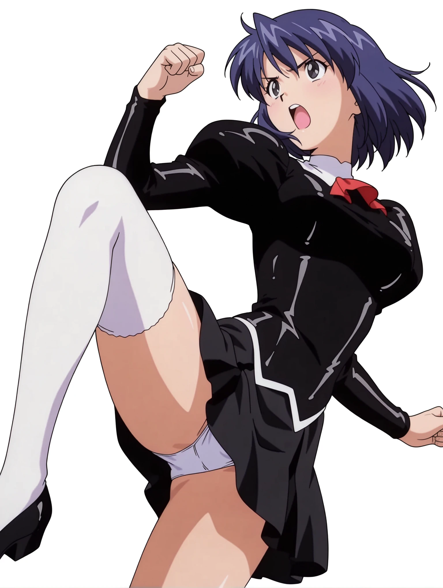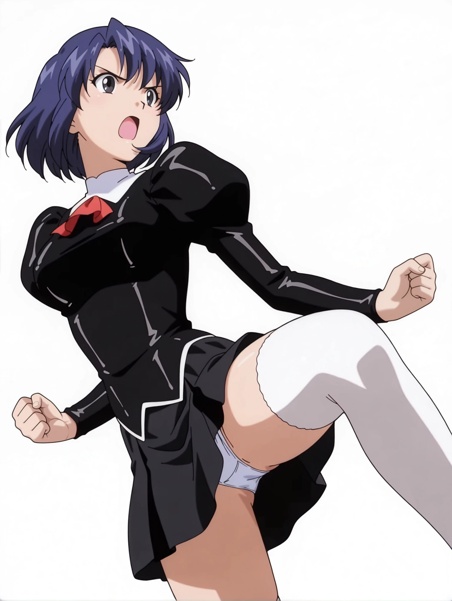 d_clothes,red ascot,black dress,juliet sleeves,long sleeves,bare hands,black skirt,white thighhighs,