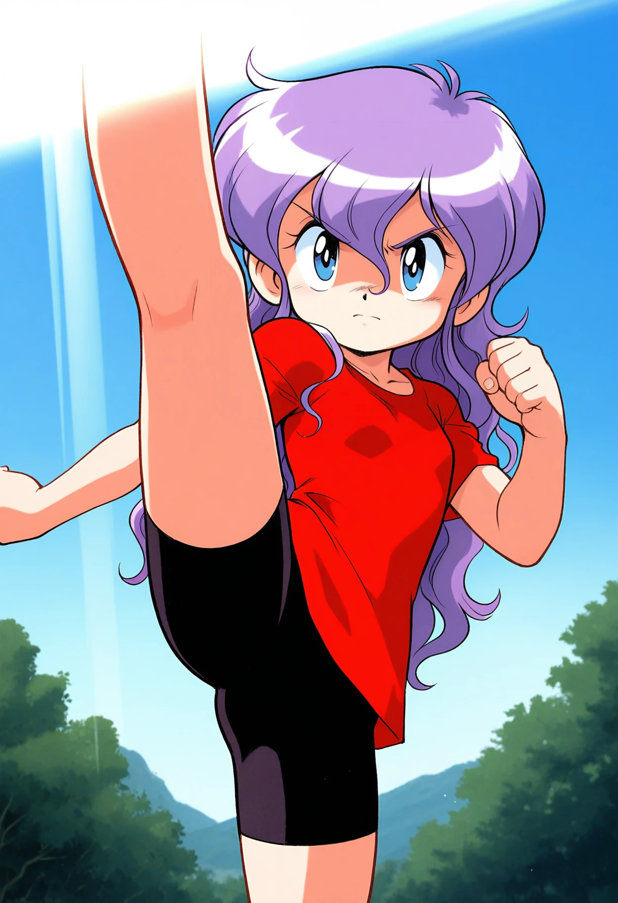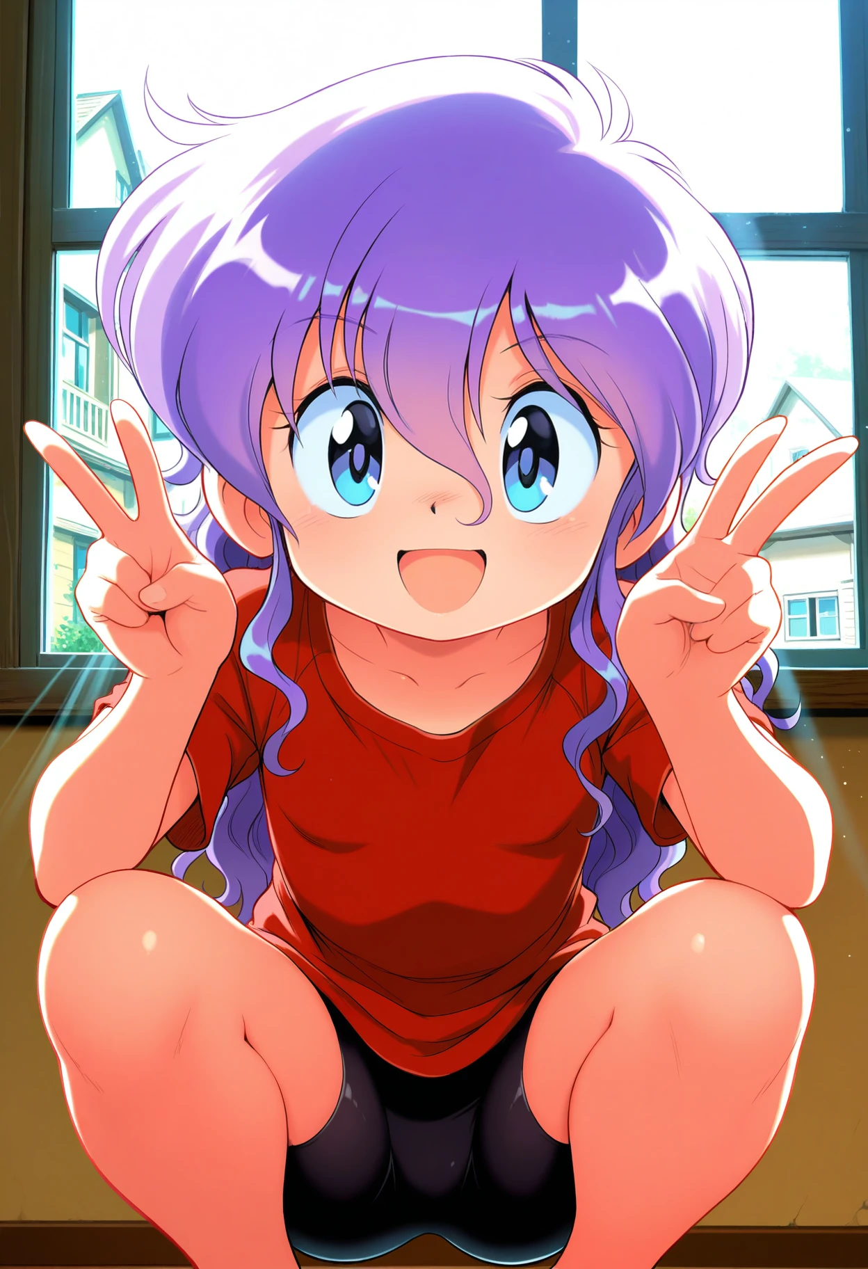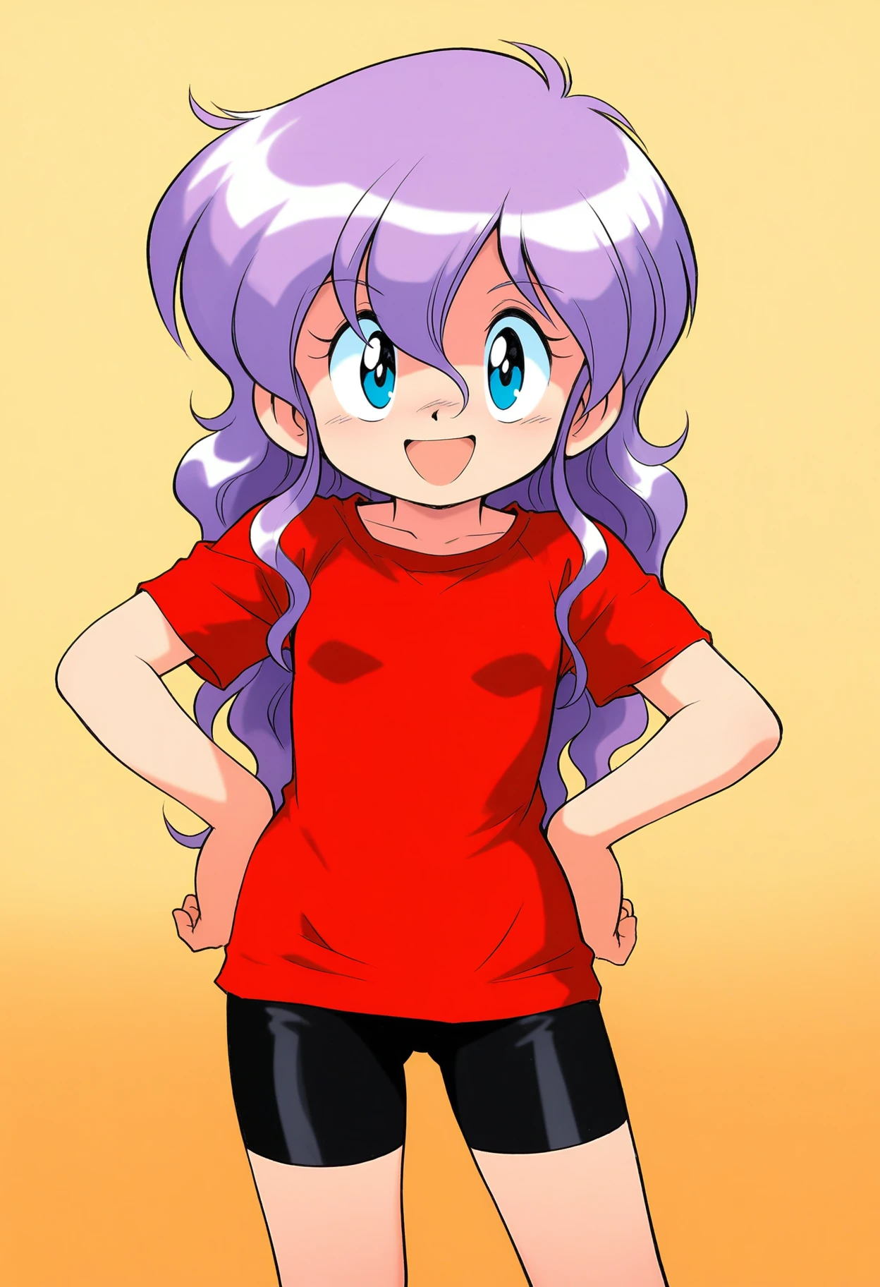 long hair, flat chest, purple hair, blue eyes, wavy hair,