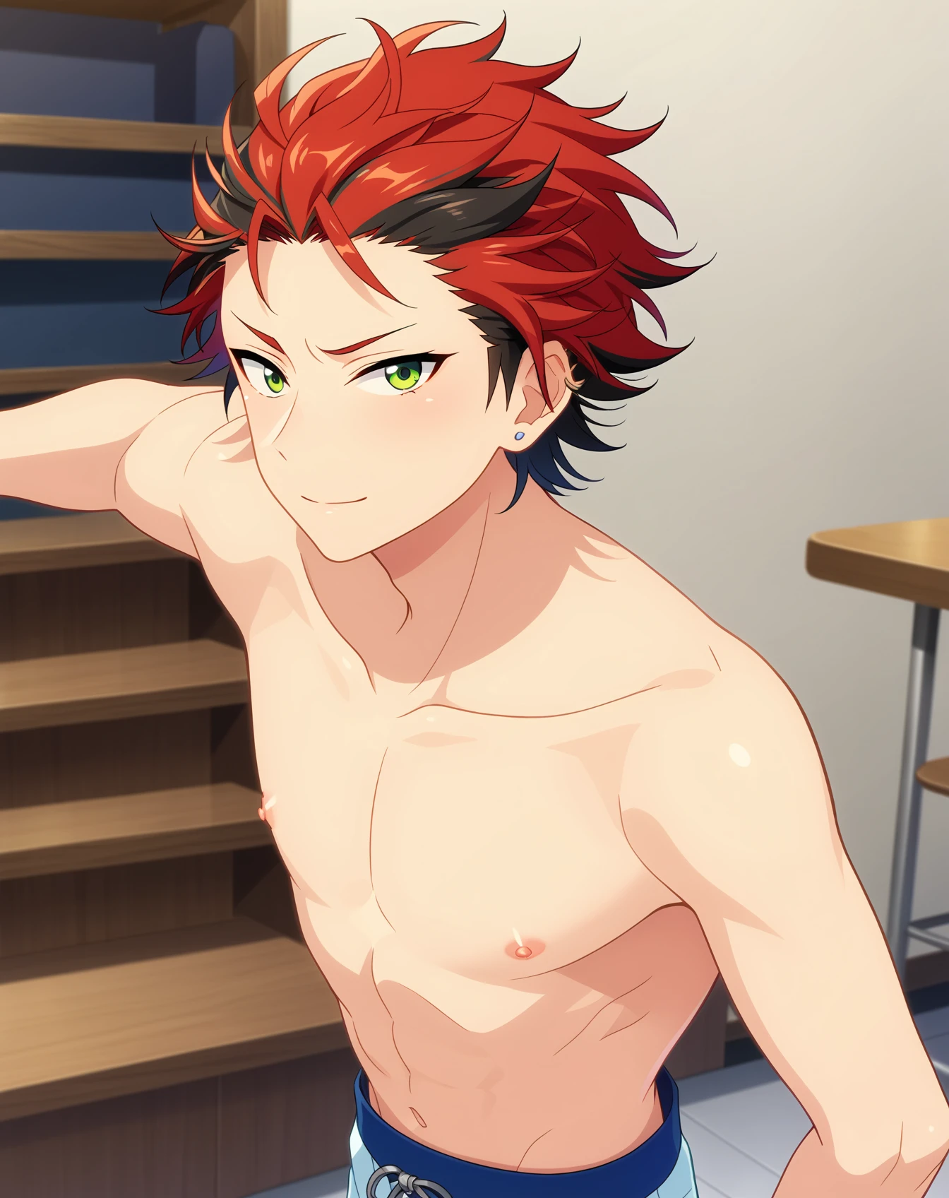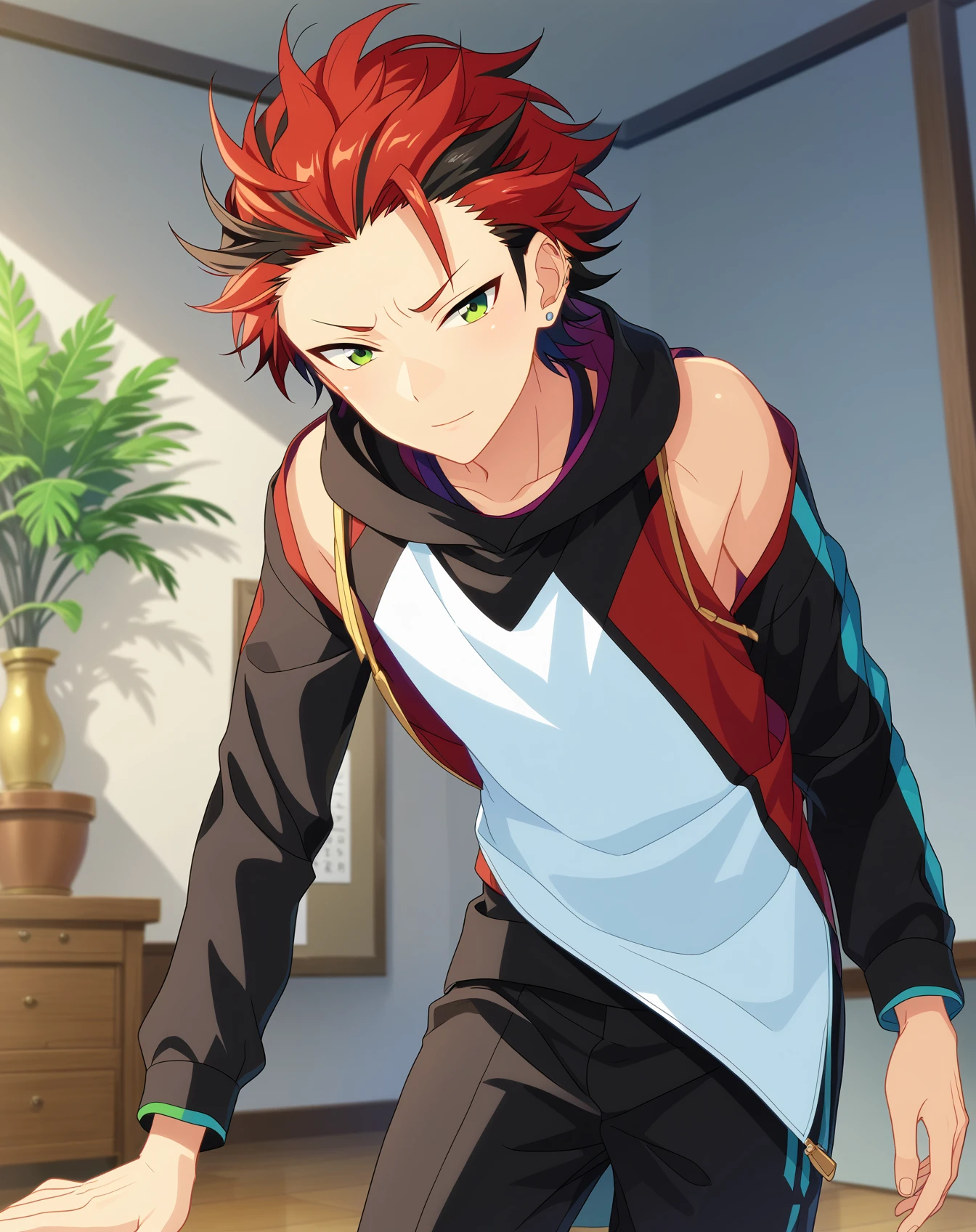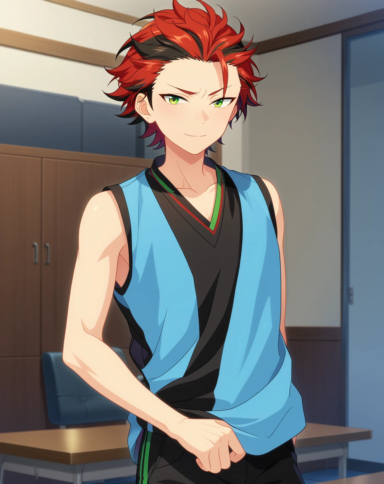 kiryu_kuro_pony, red hair, green eyes, streaked hair, black hair, short hair, multicolored hair,