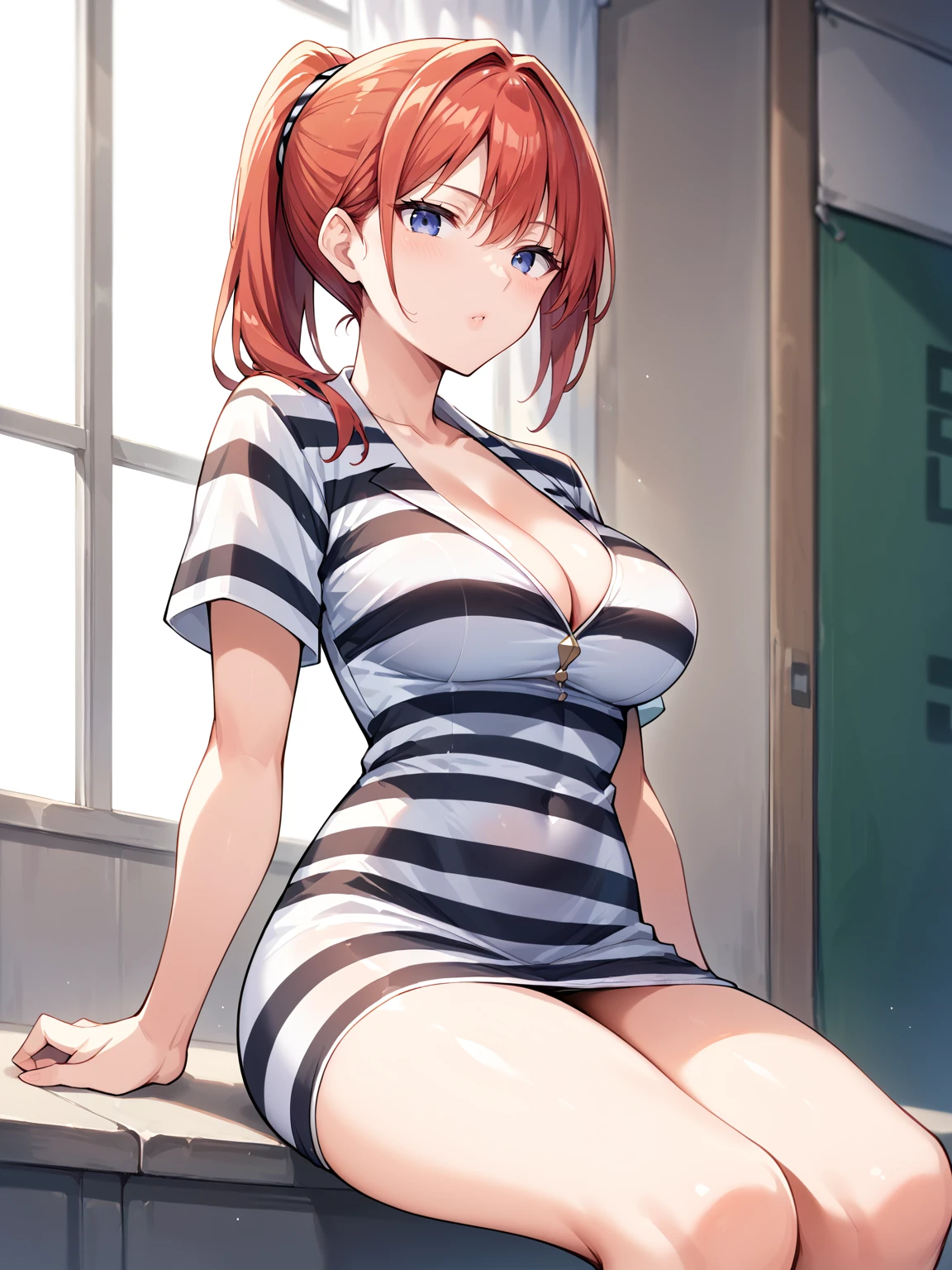 Suggested Tags: waifu_ward_uniform, prison_cloth, striped_shirt
