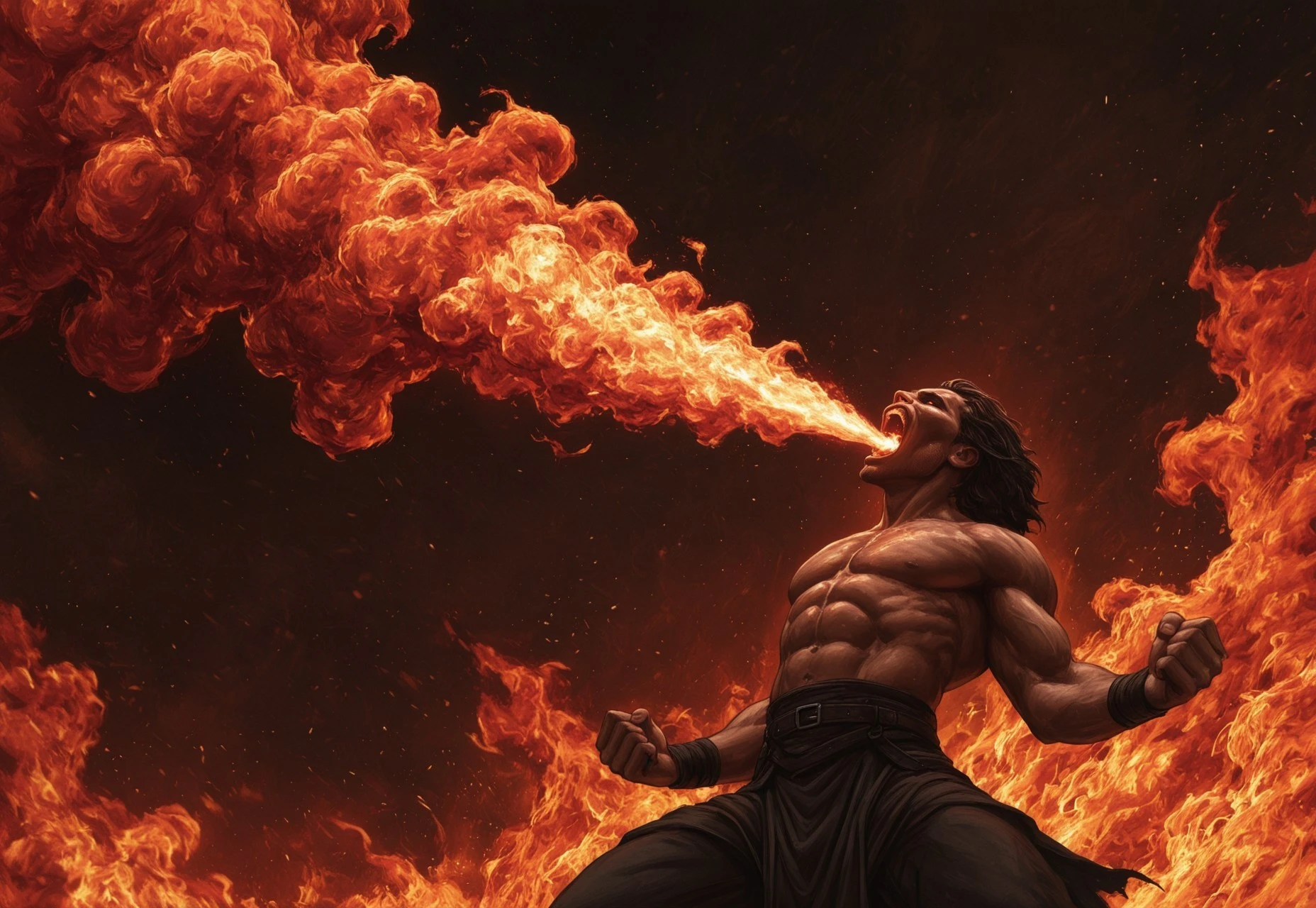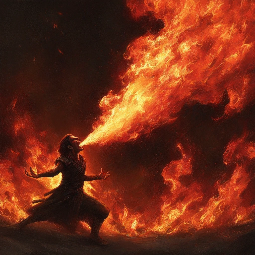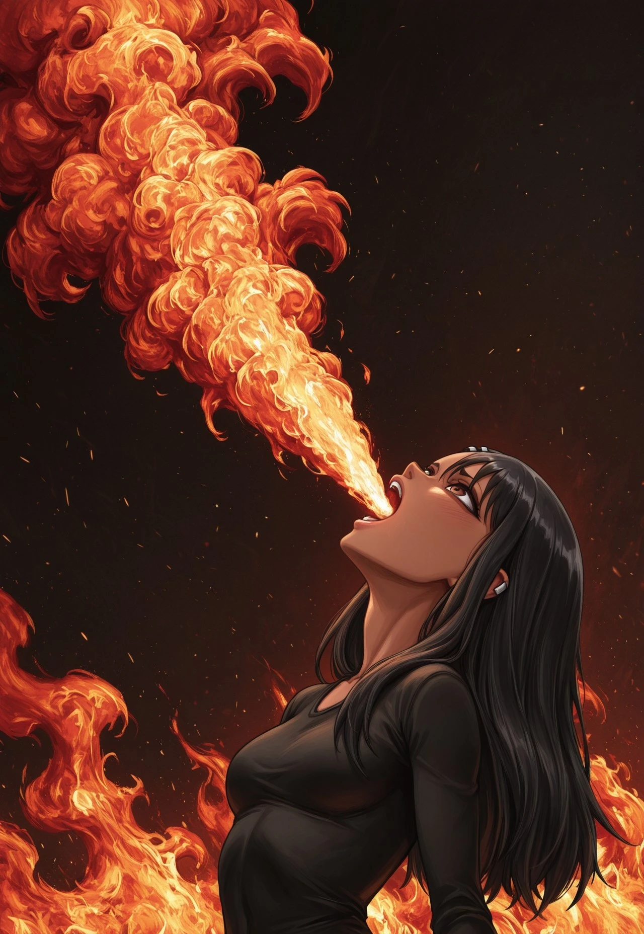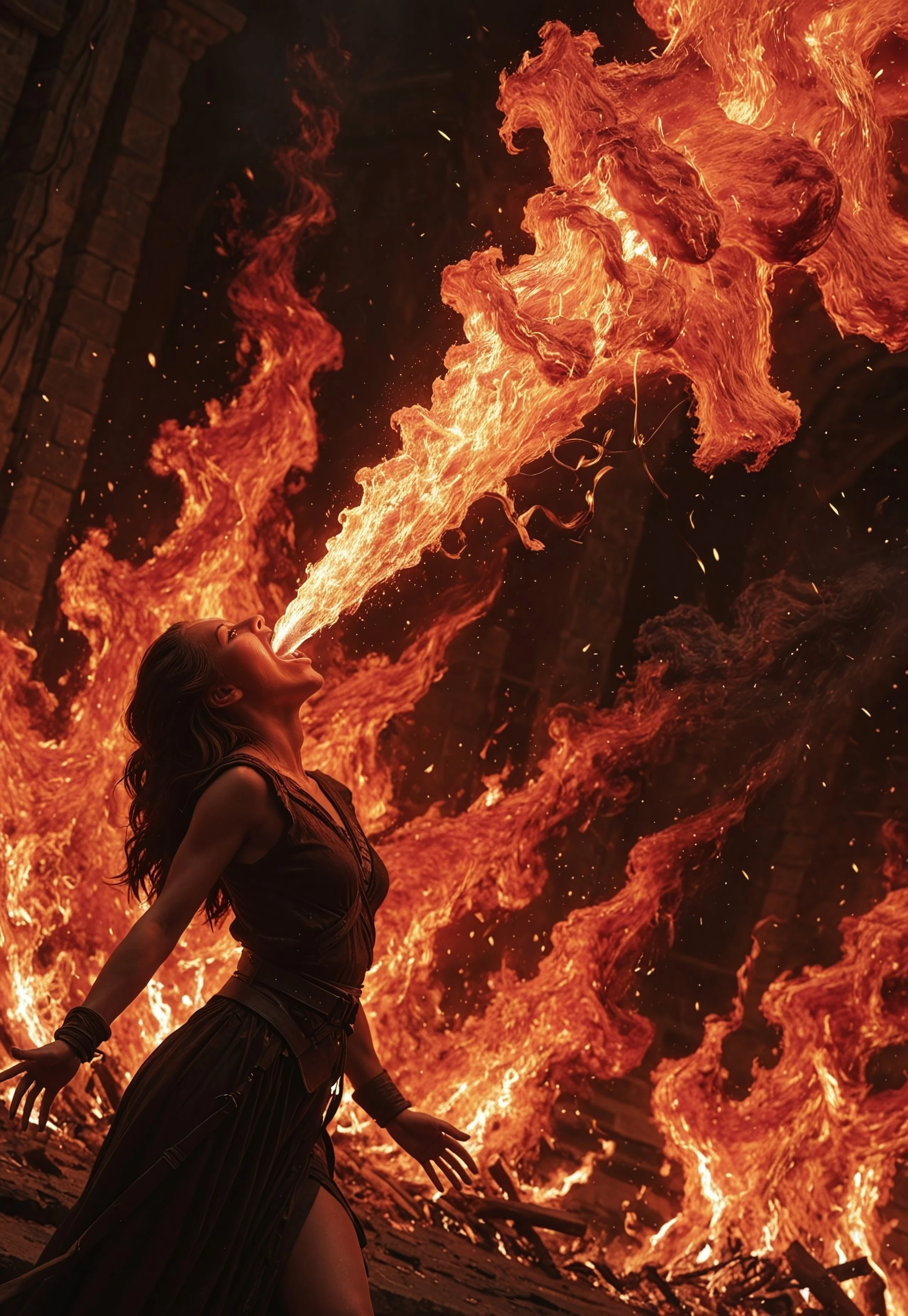 Firbremb2, breathing fire, flame eruption, fiery breath attack, mouth fire blast, flame stream, blazing energy,