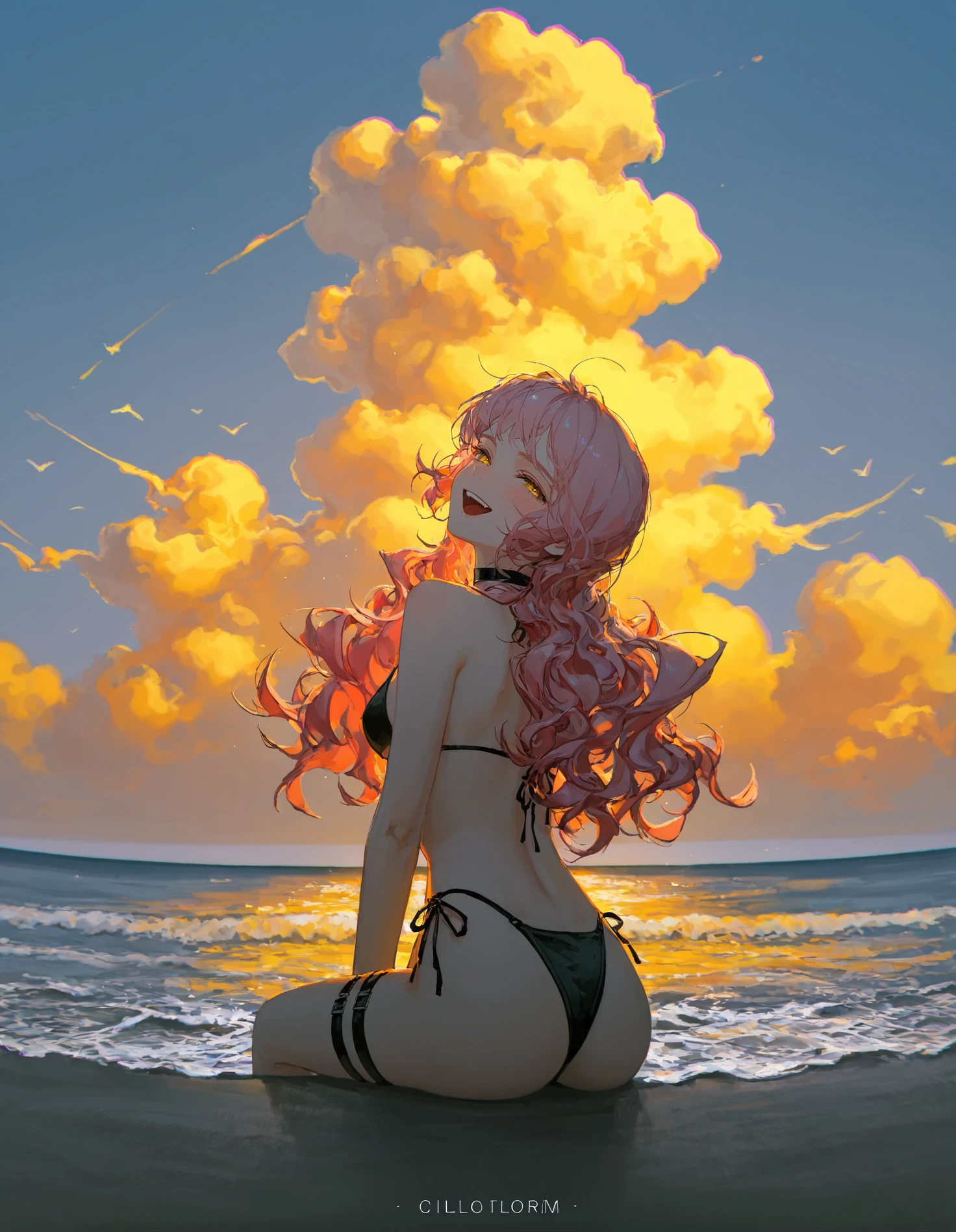 tags标签: litiya,yellow eyes,pink hair,long hair,wavy hair,