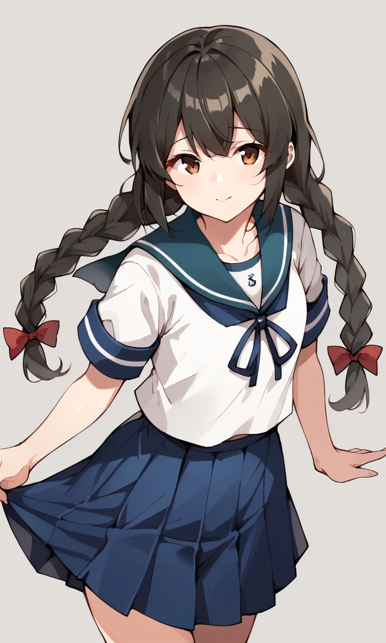 Default Outfit : isonamiKC,long hair, school uniform, braid, sidelocks, serafuku, sailor collar, twin braids, neckerchief, blue sailor collar, blue skirt