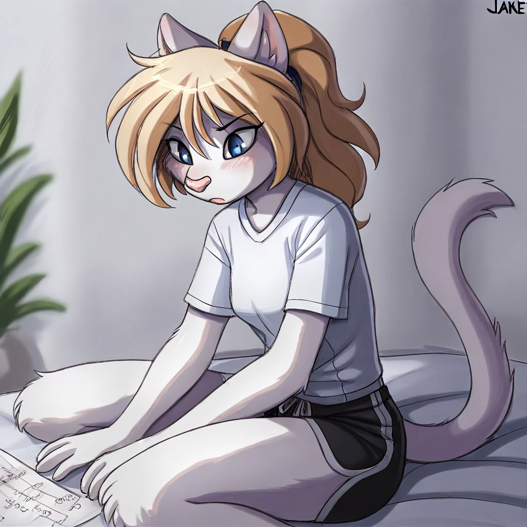 janie,blonde hair,blue eyes, furry,ponytail,dolphin_shorts ,cat ears,cat girl