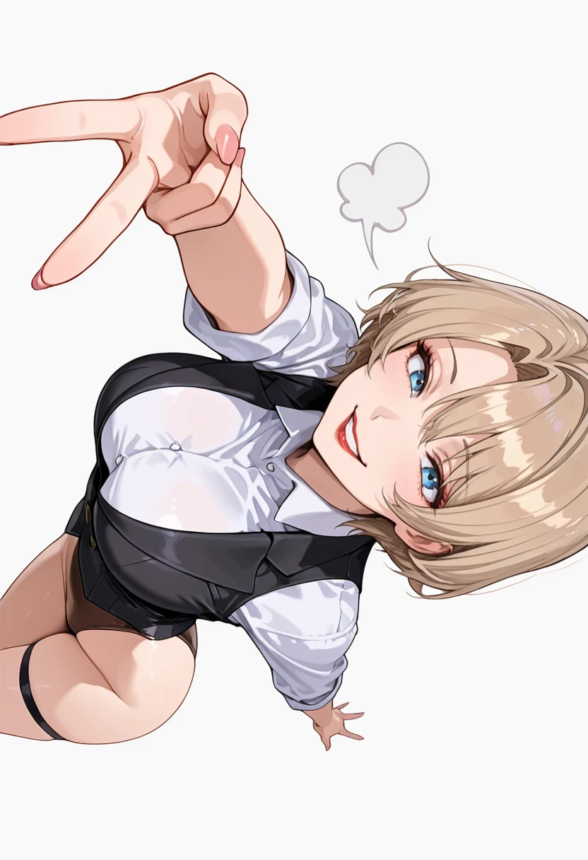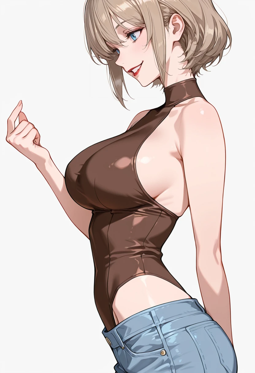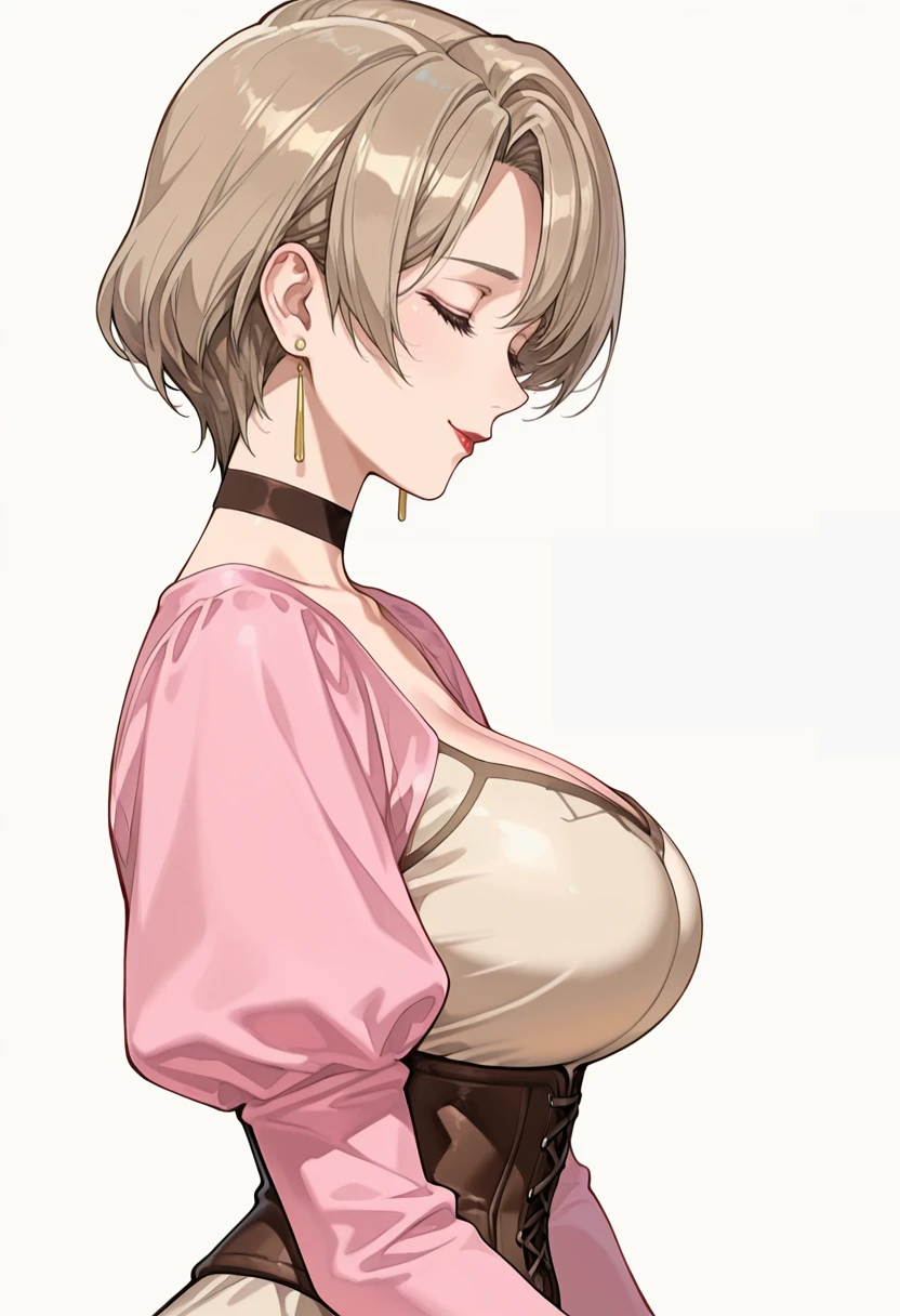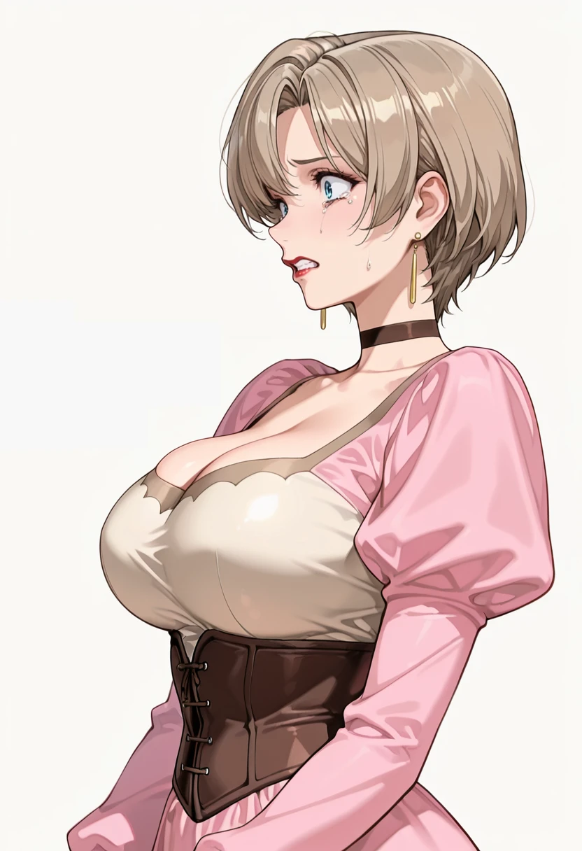 jane_cnr, 1girl, short hair, large breasts,blue eyes,light brown hair,red lips,mature female,