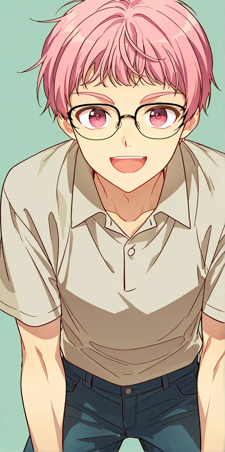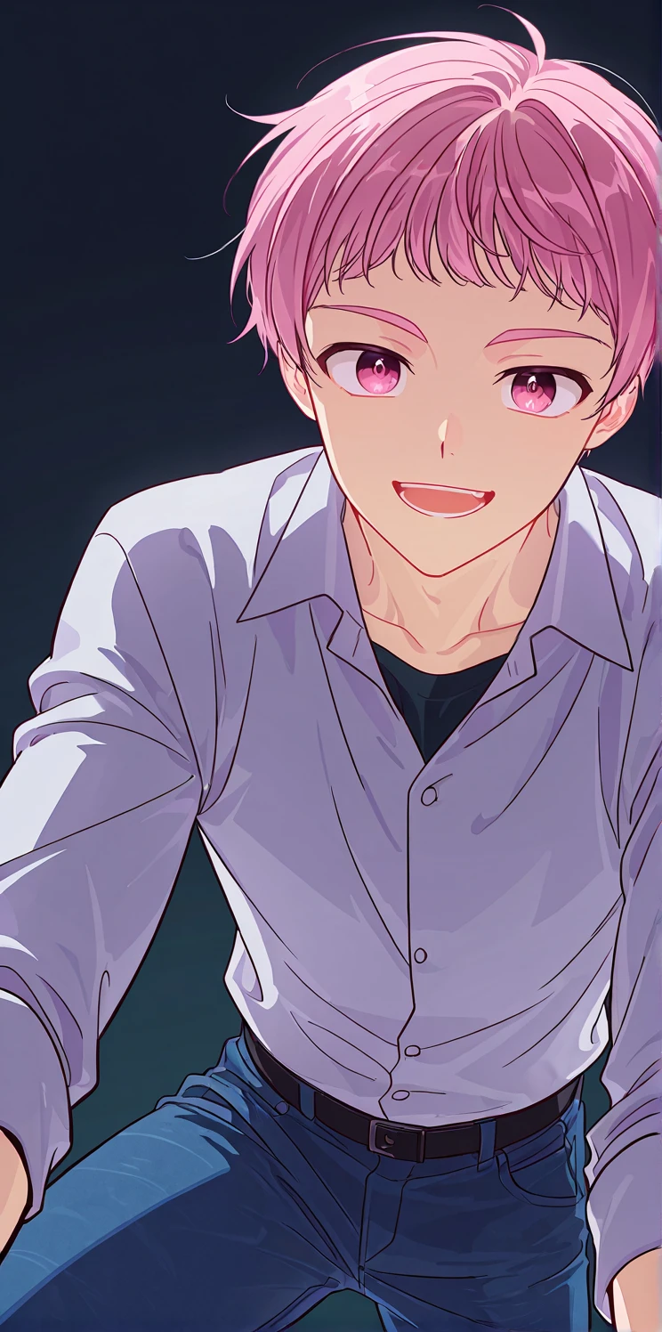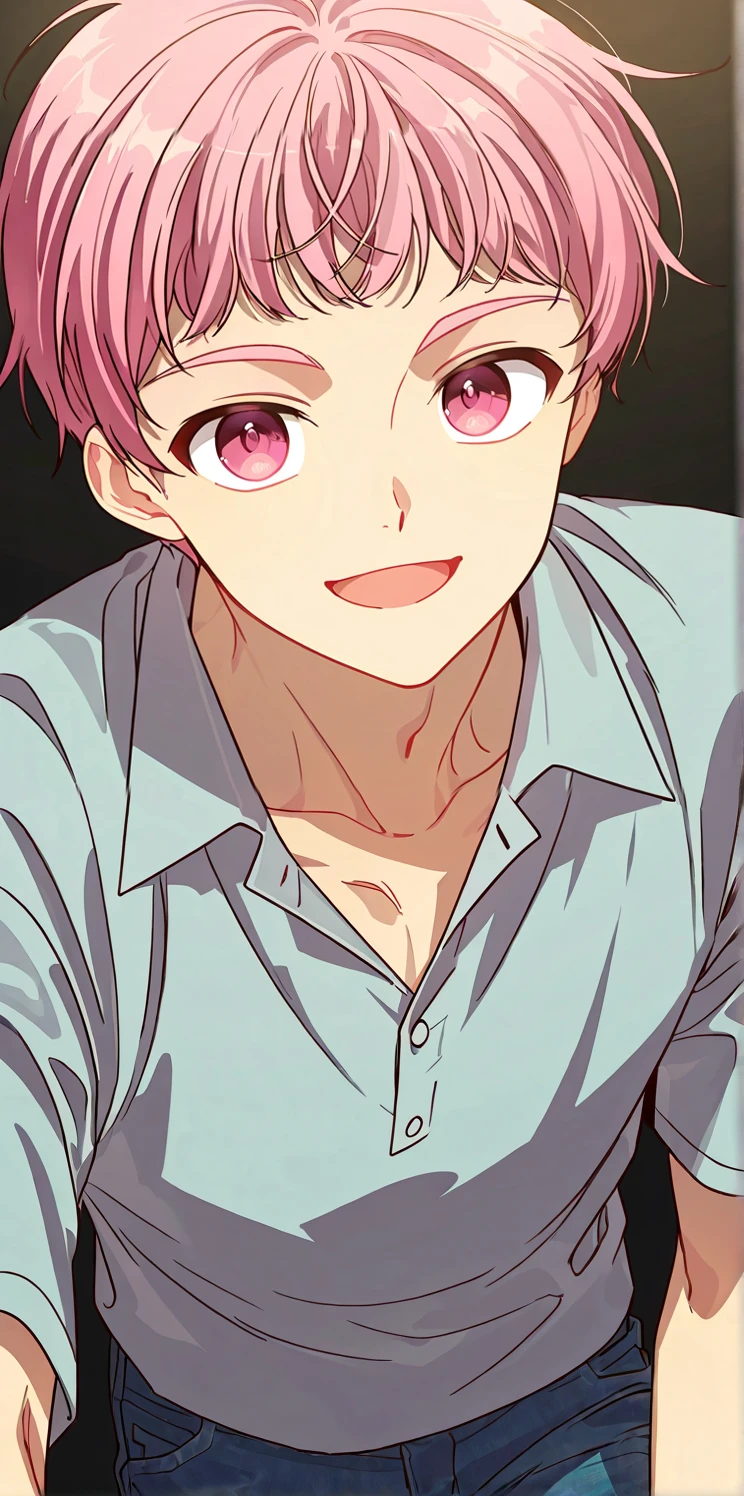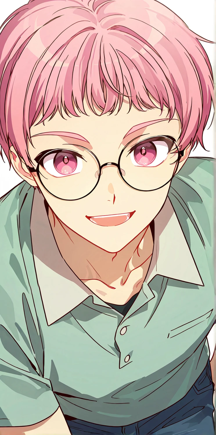 young hwang hyeon ui,pink hair,pink eyes,short hair