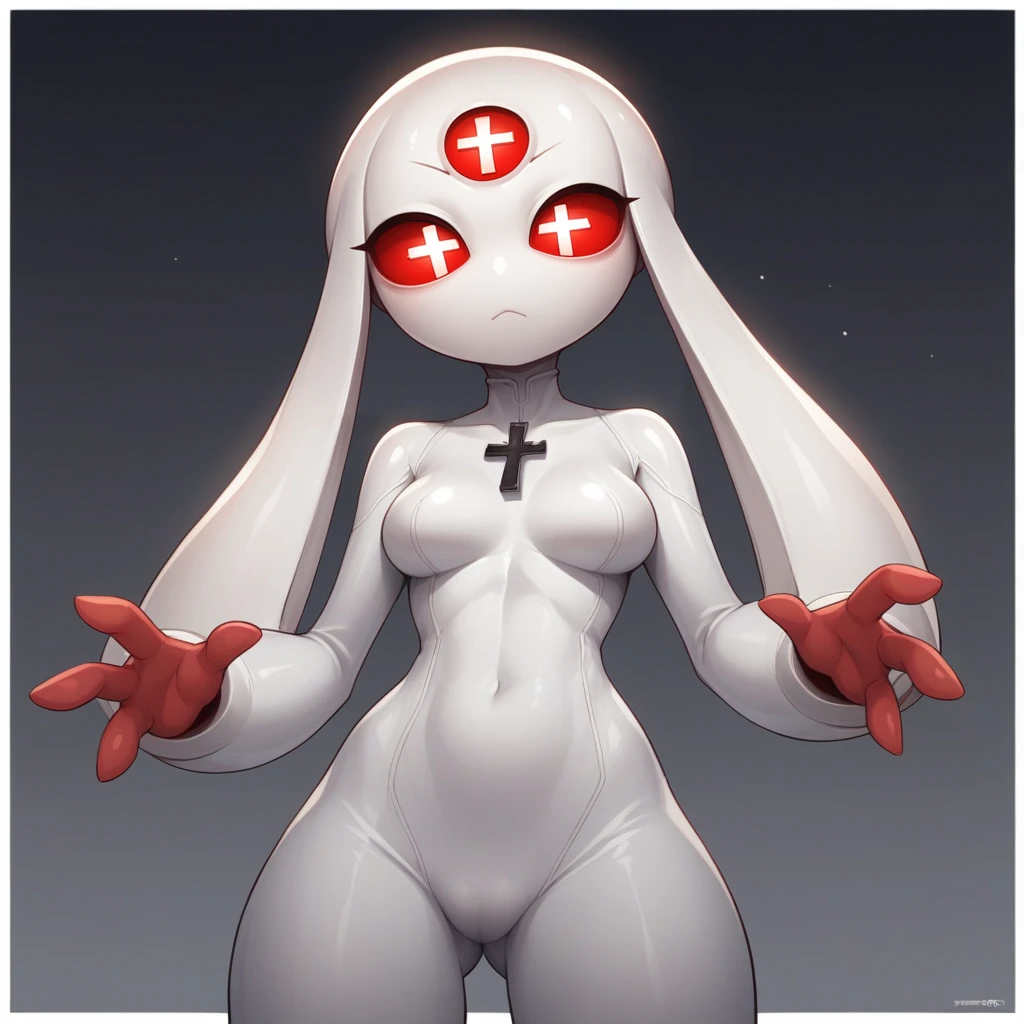 Лора на «вид» инопланетян с 3 глазами и белой кожей.