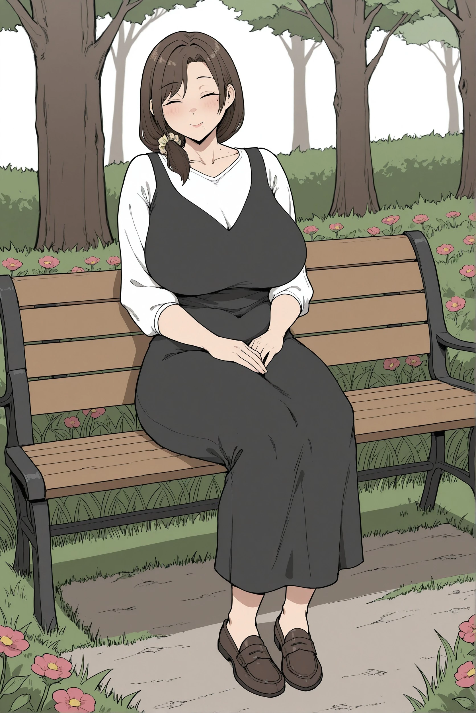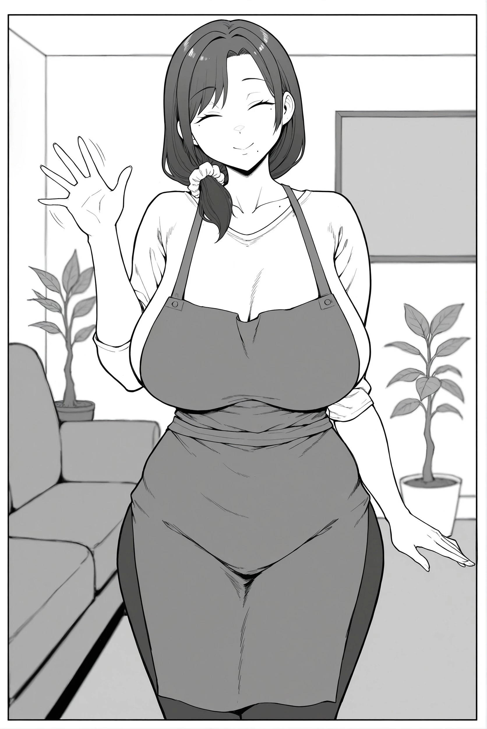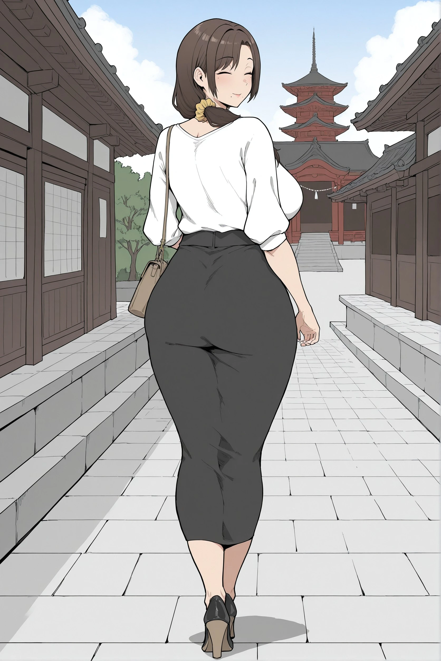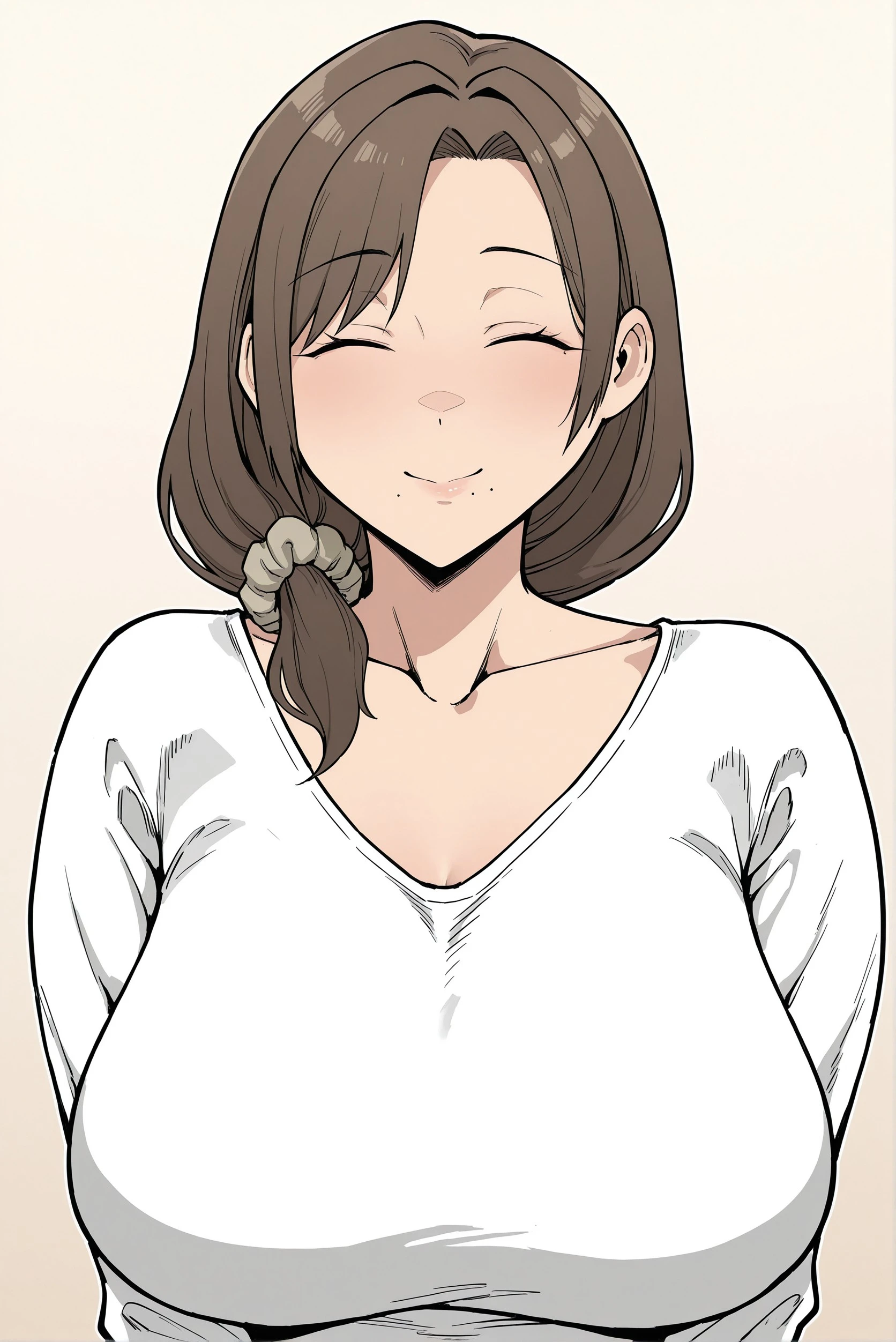 yuk4r1, mole, , hair_scrunchie, hair_on_shoulder, mature