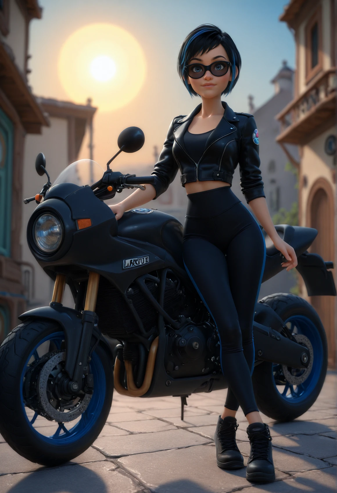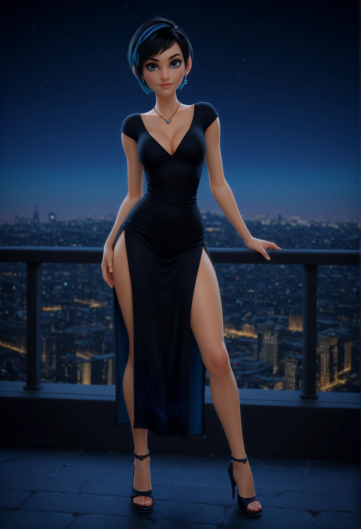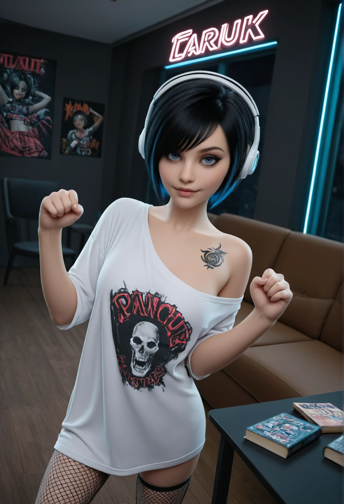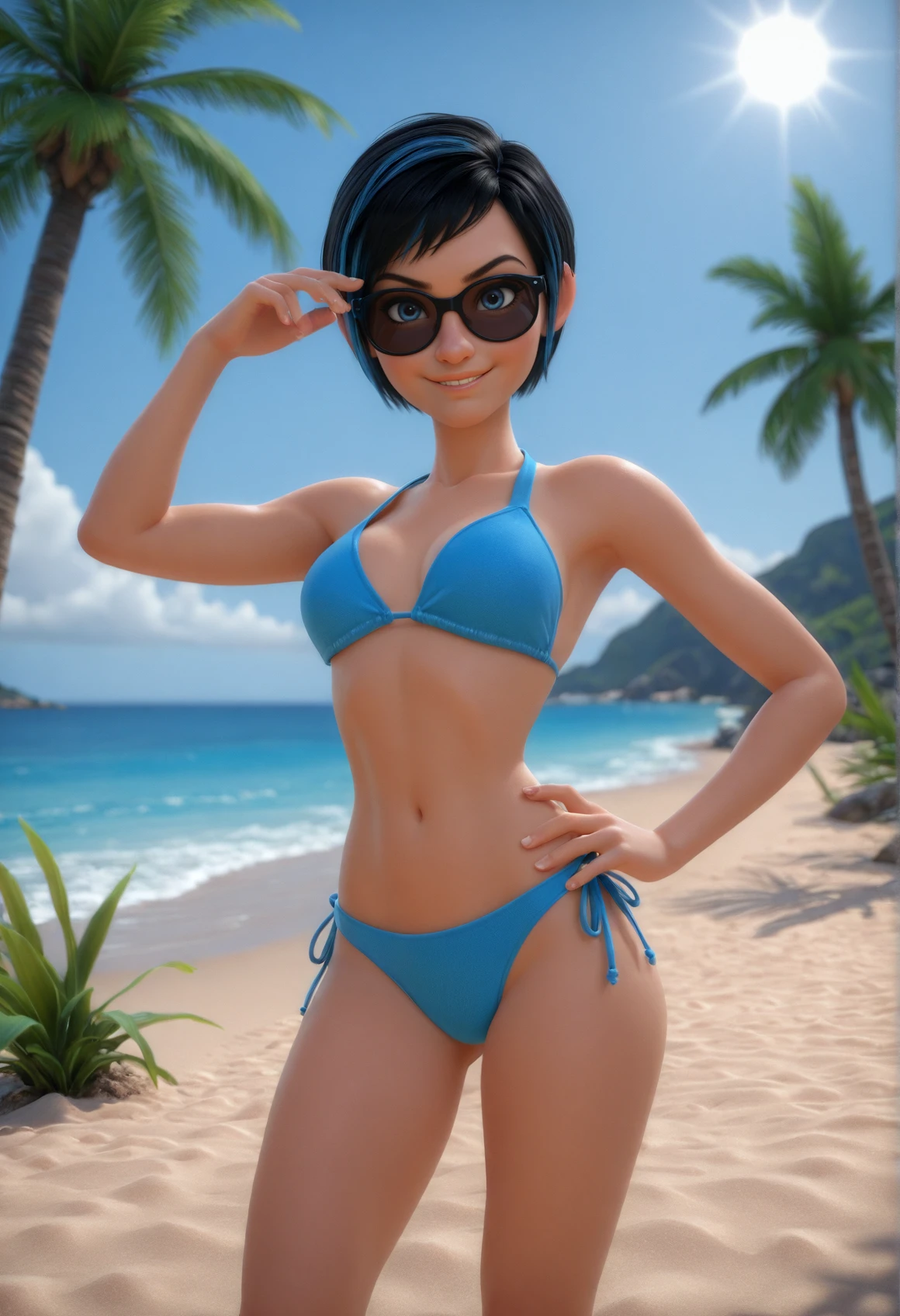 LaraCute, blue eyes, short hair, black hair, blue highlights