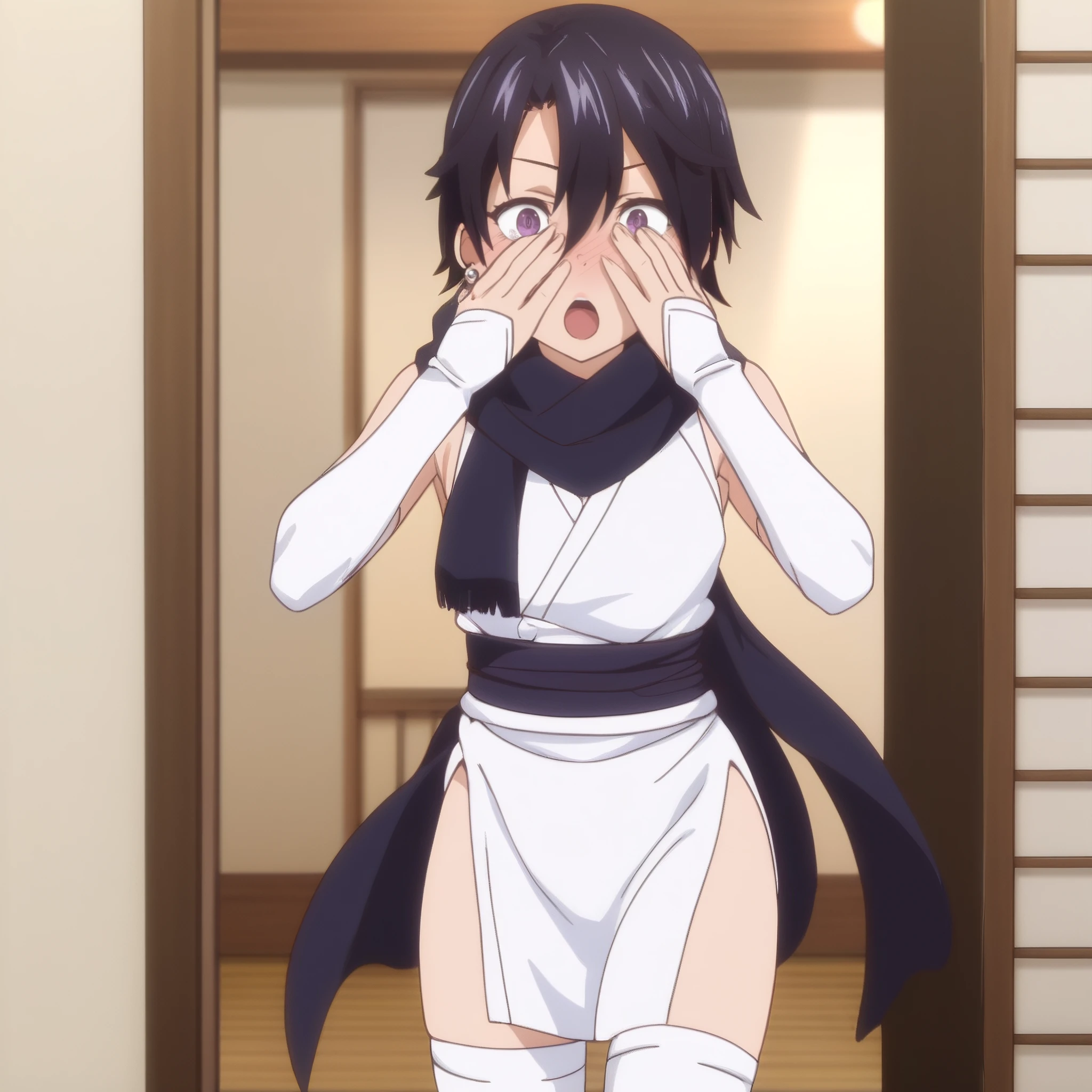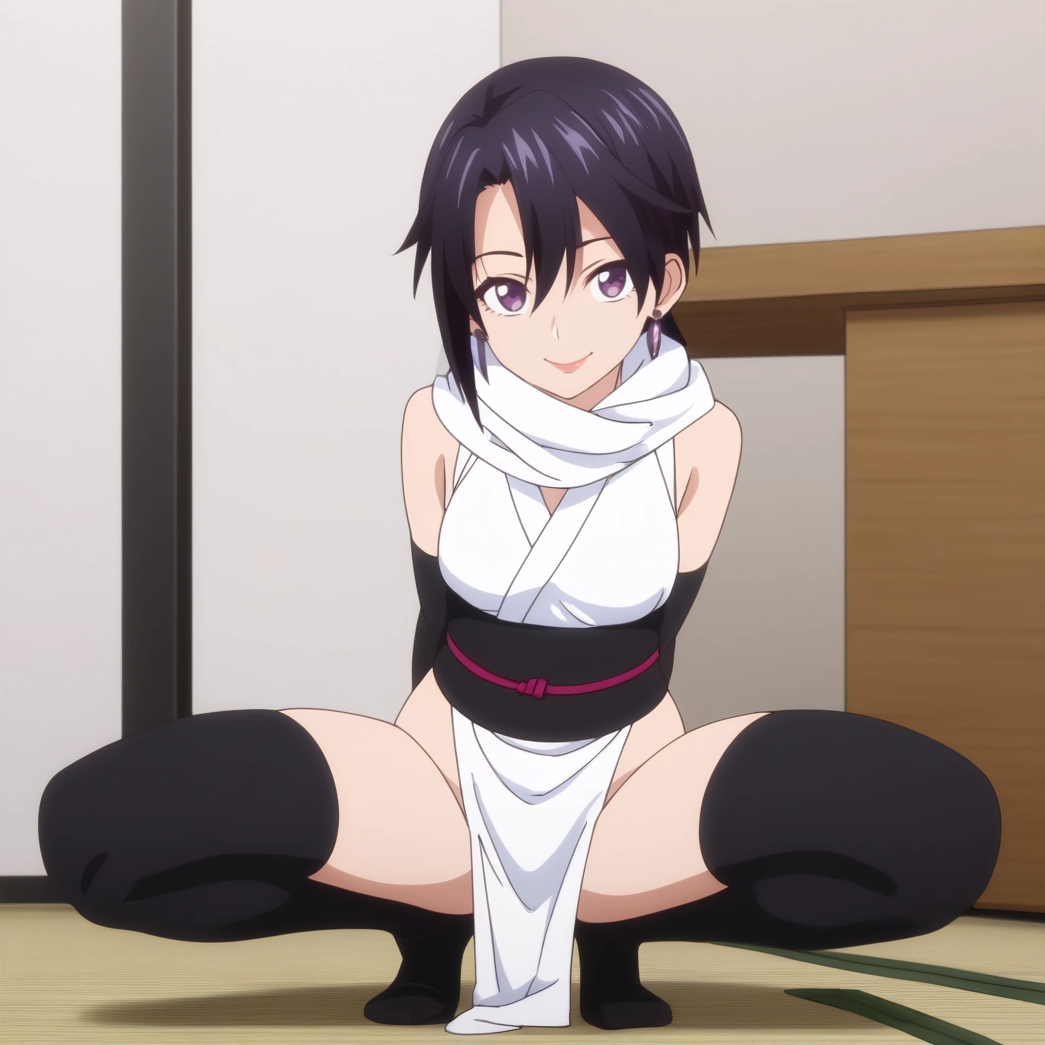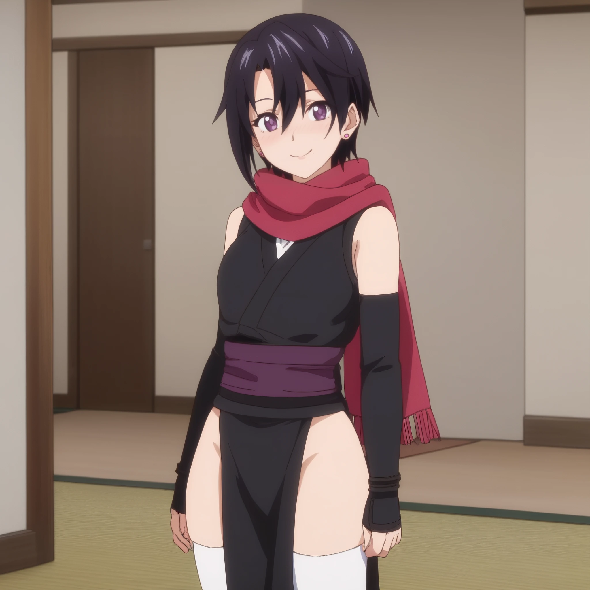 KuroNinja, scarf, ninja, thighhighs, sleeveless, white scarf, elbow gloves, sash, pelvic curtain, white legwear, japanese clothes,