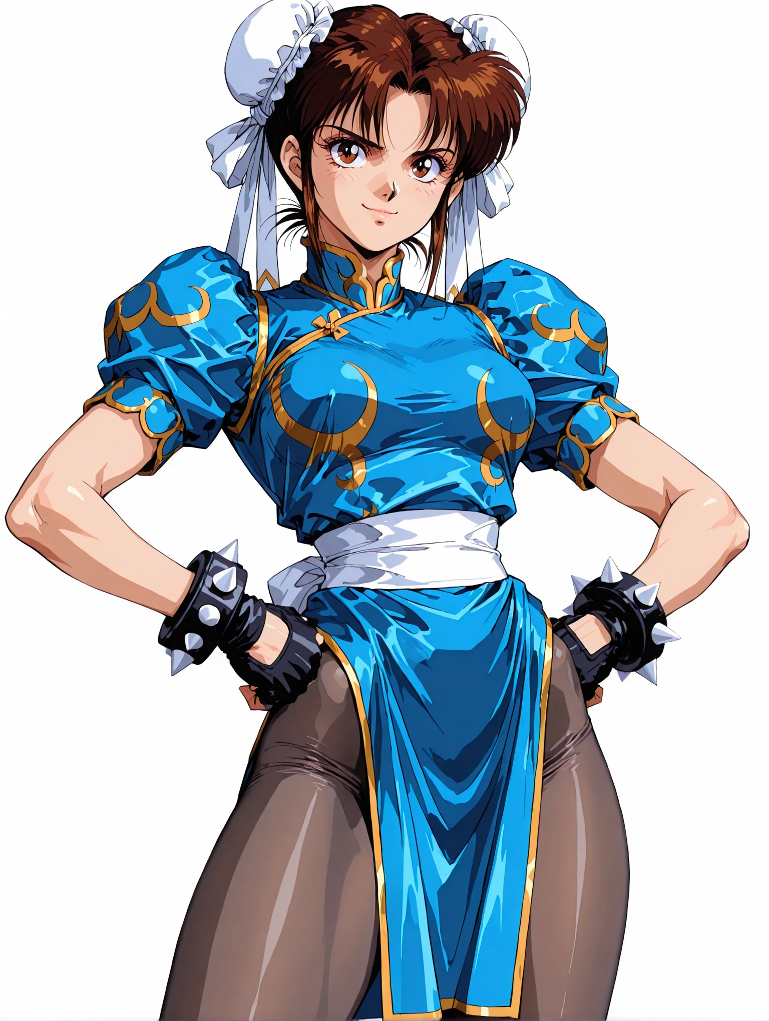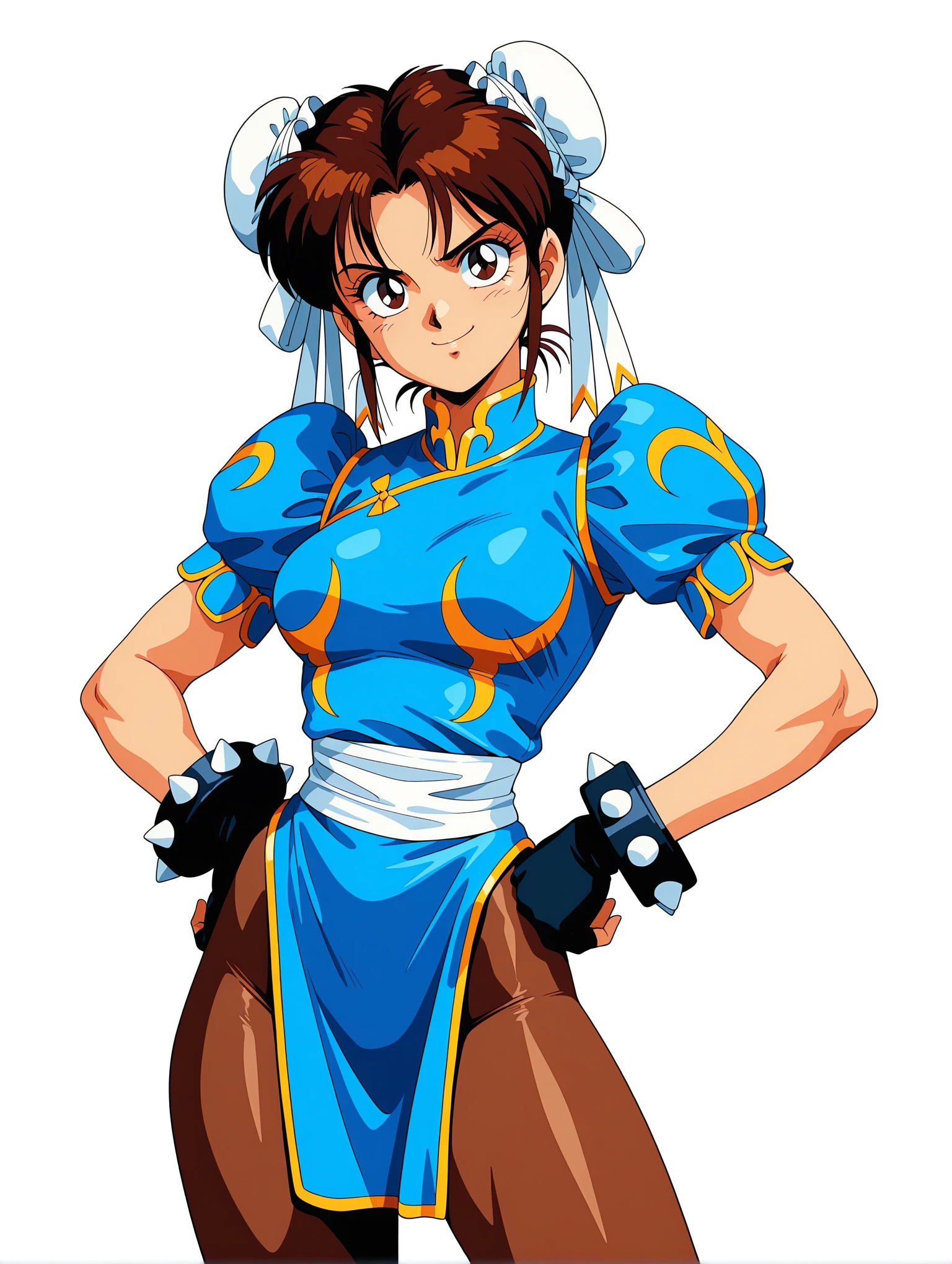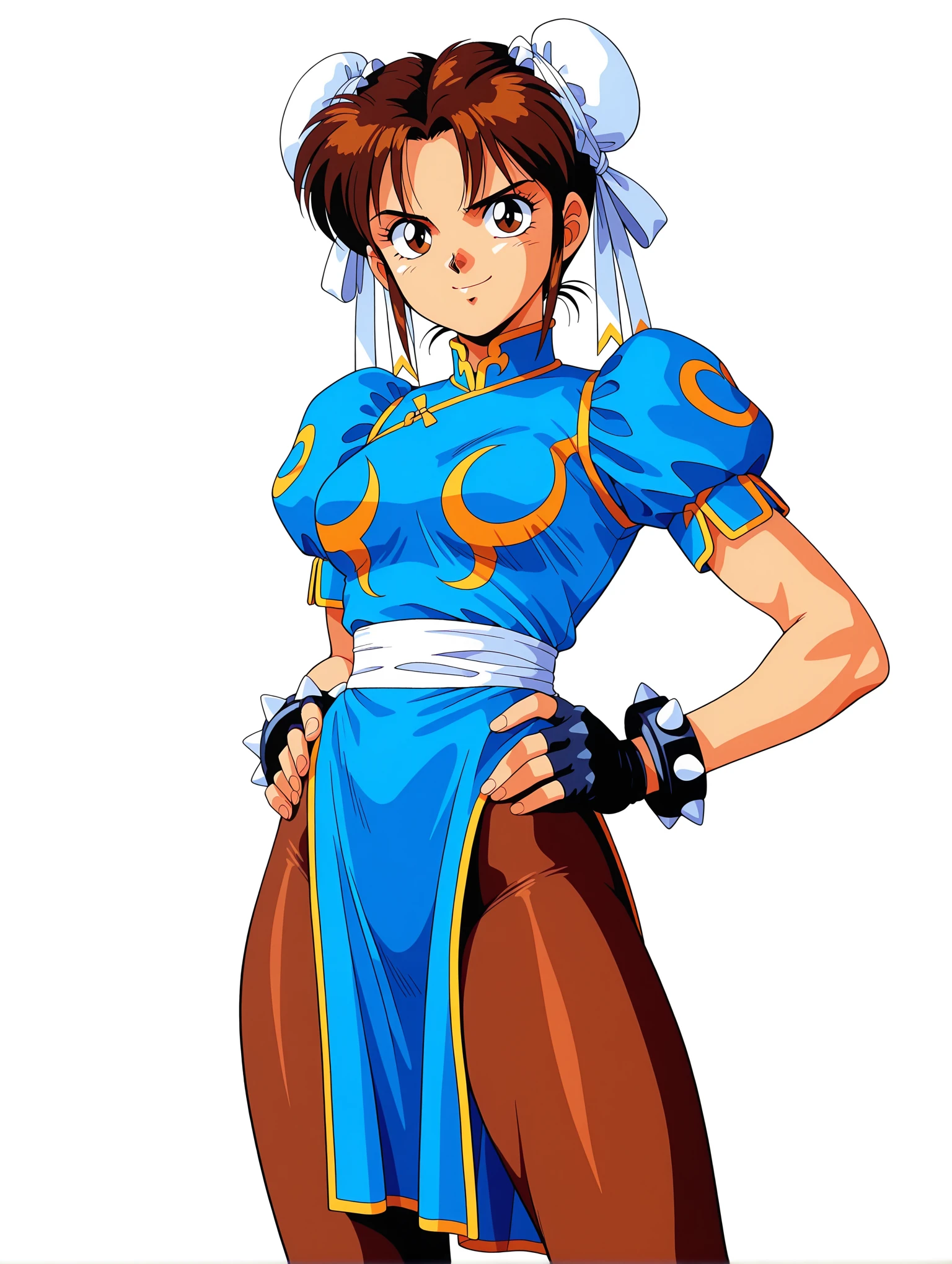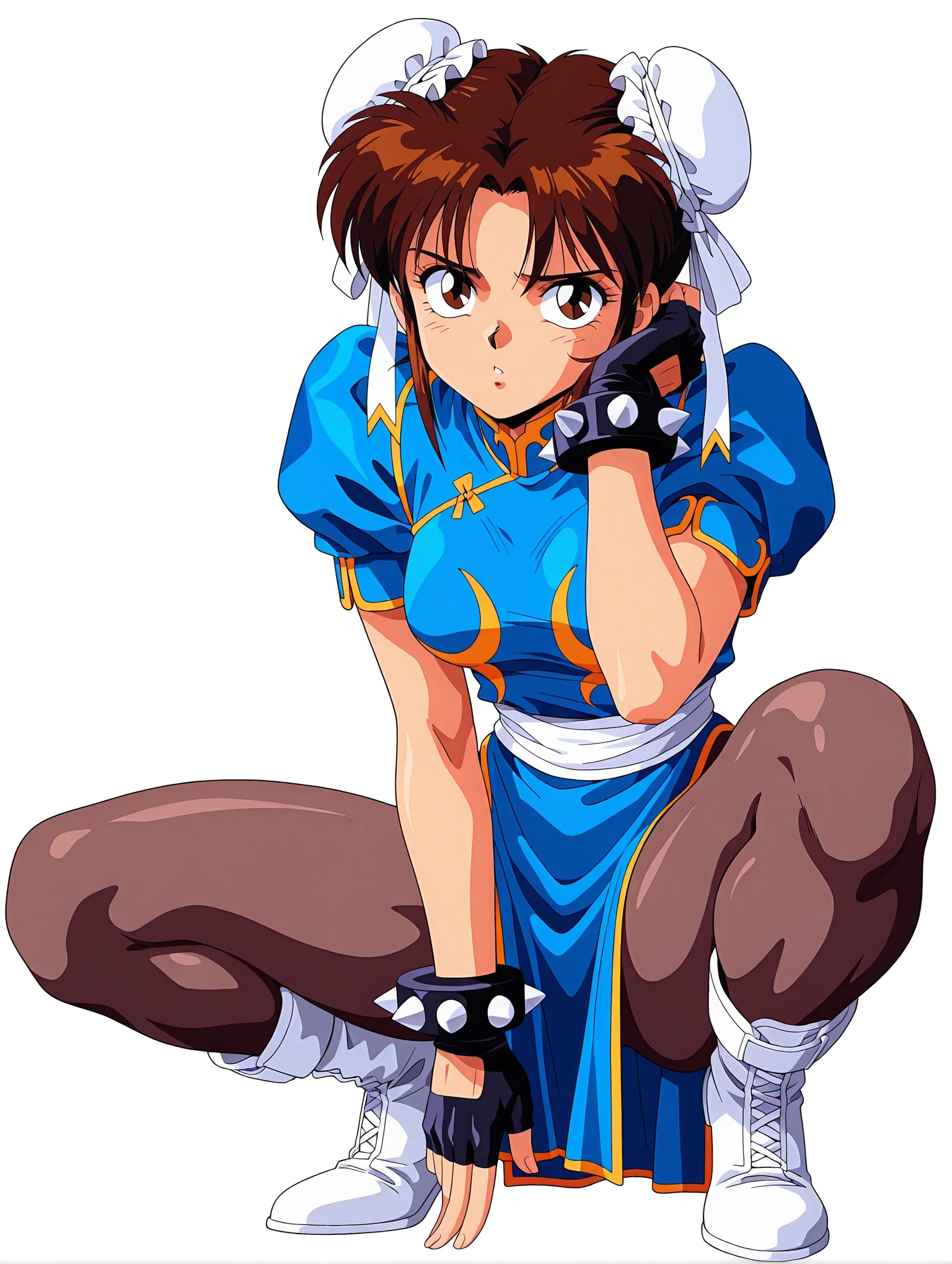 トリガーワード ・c_l,white double bun,brown hair,short hair,brown eyes,
