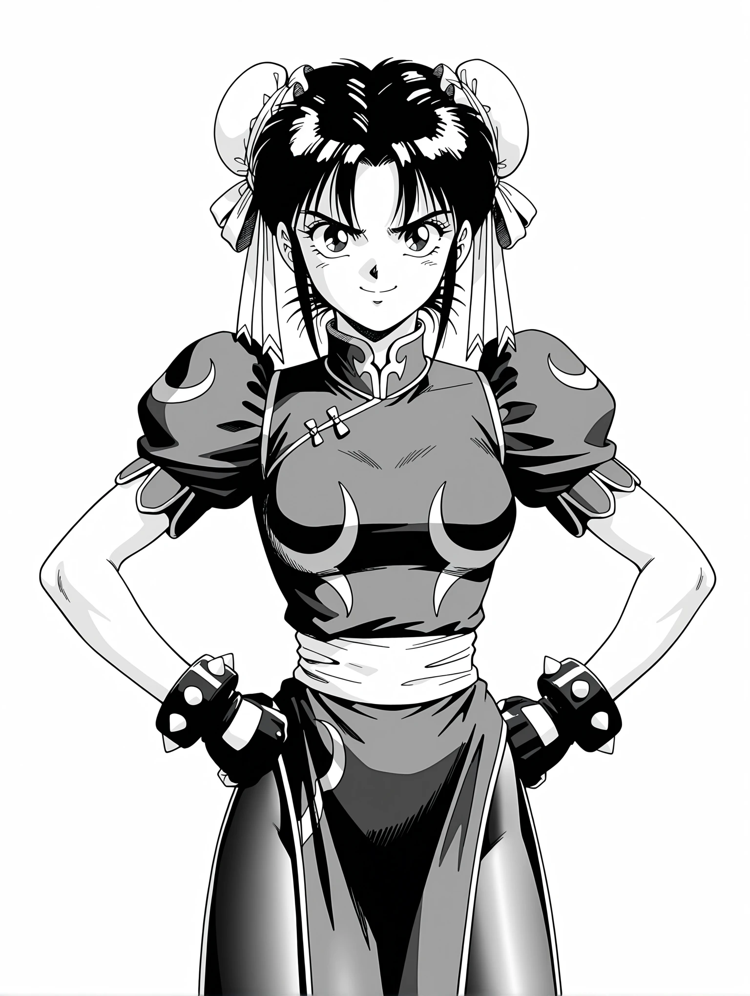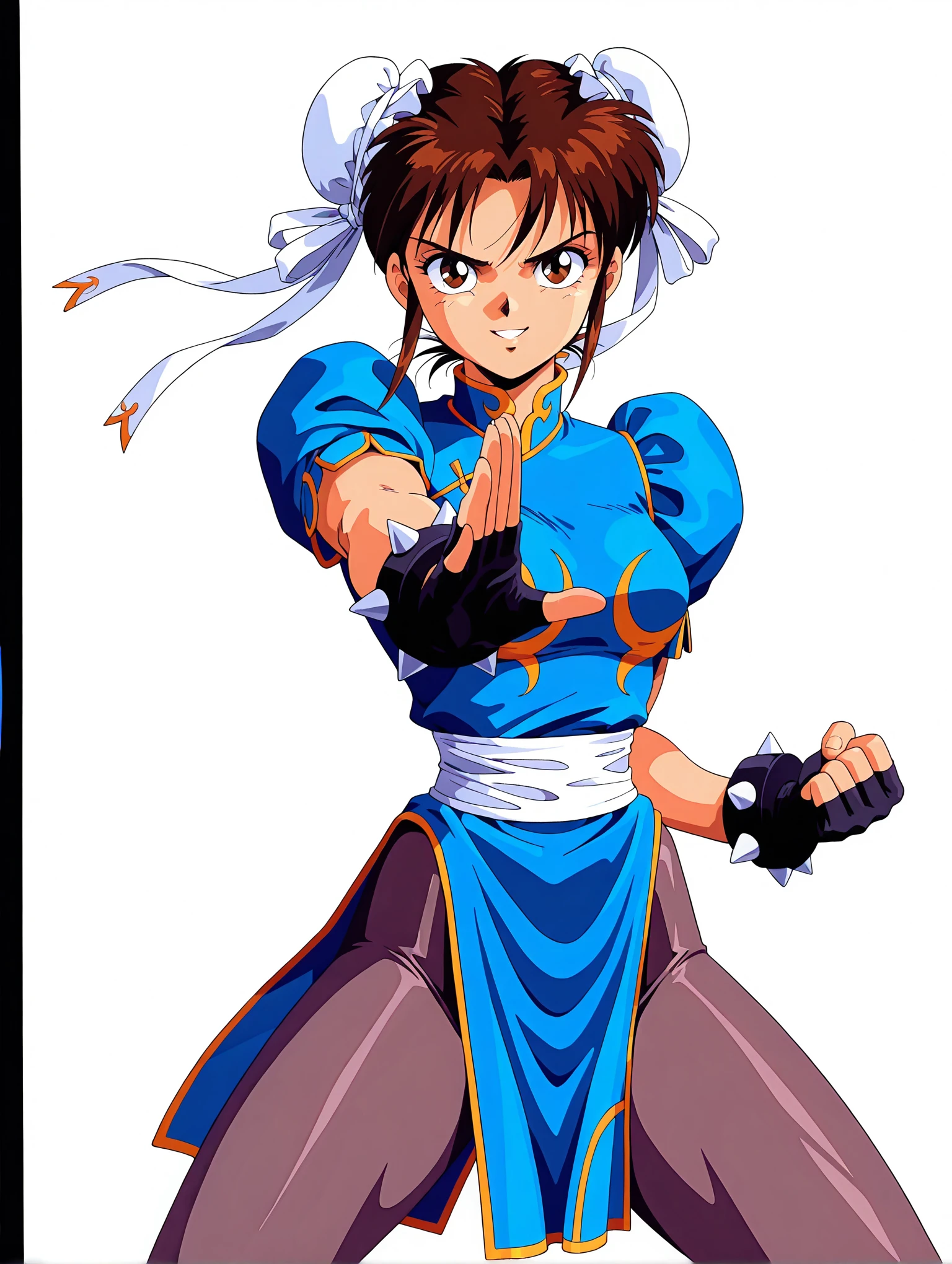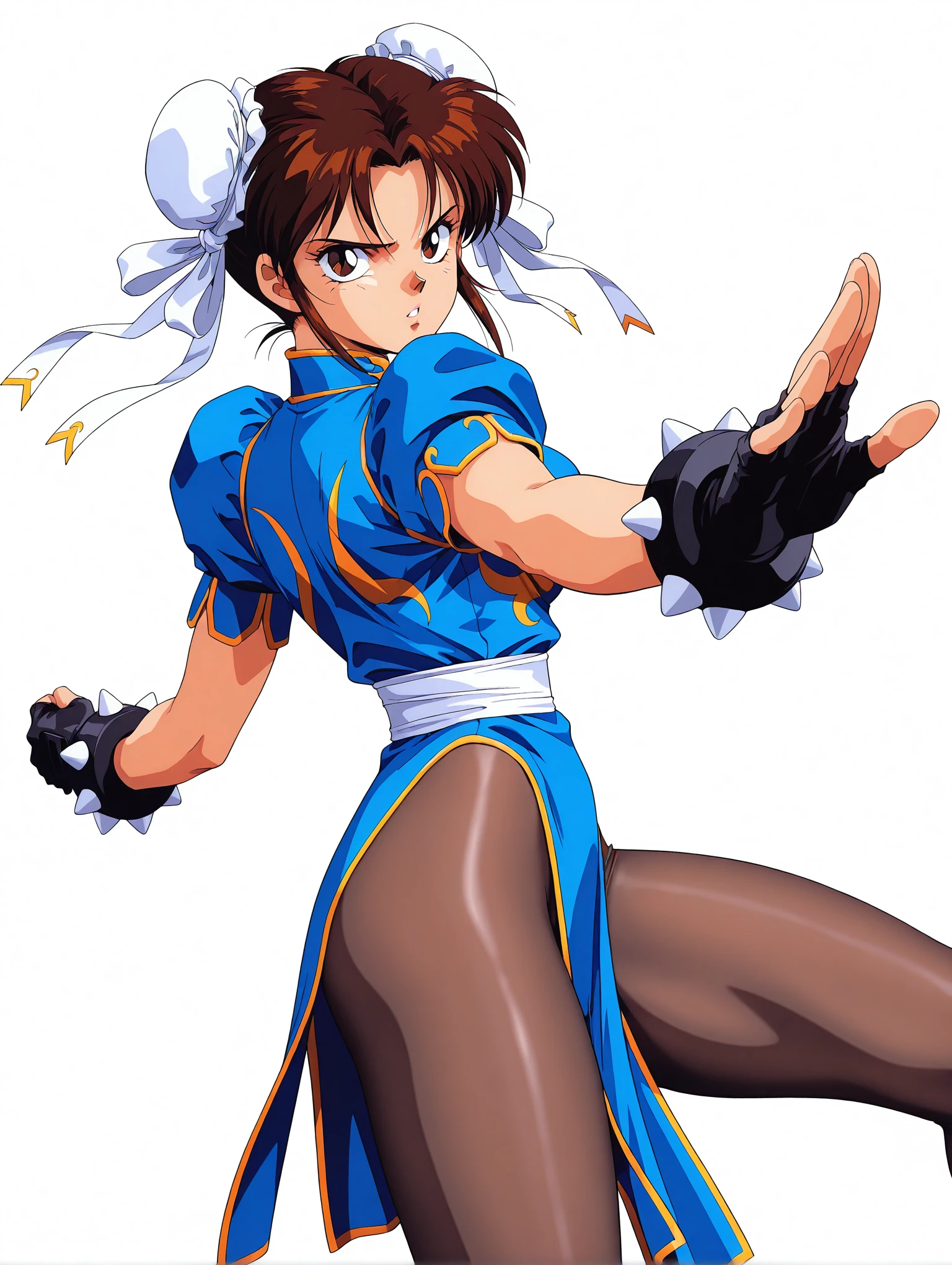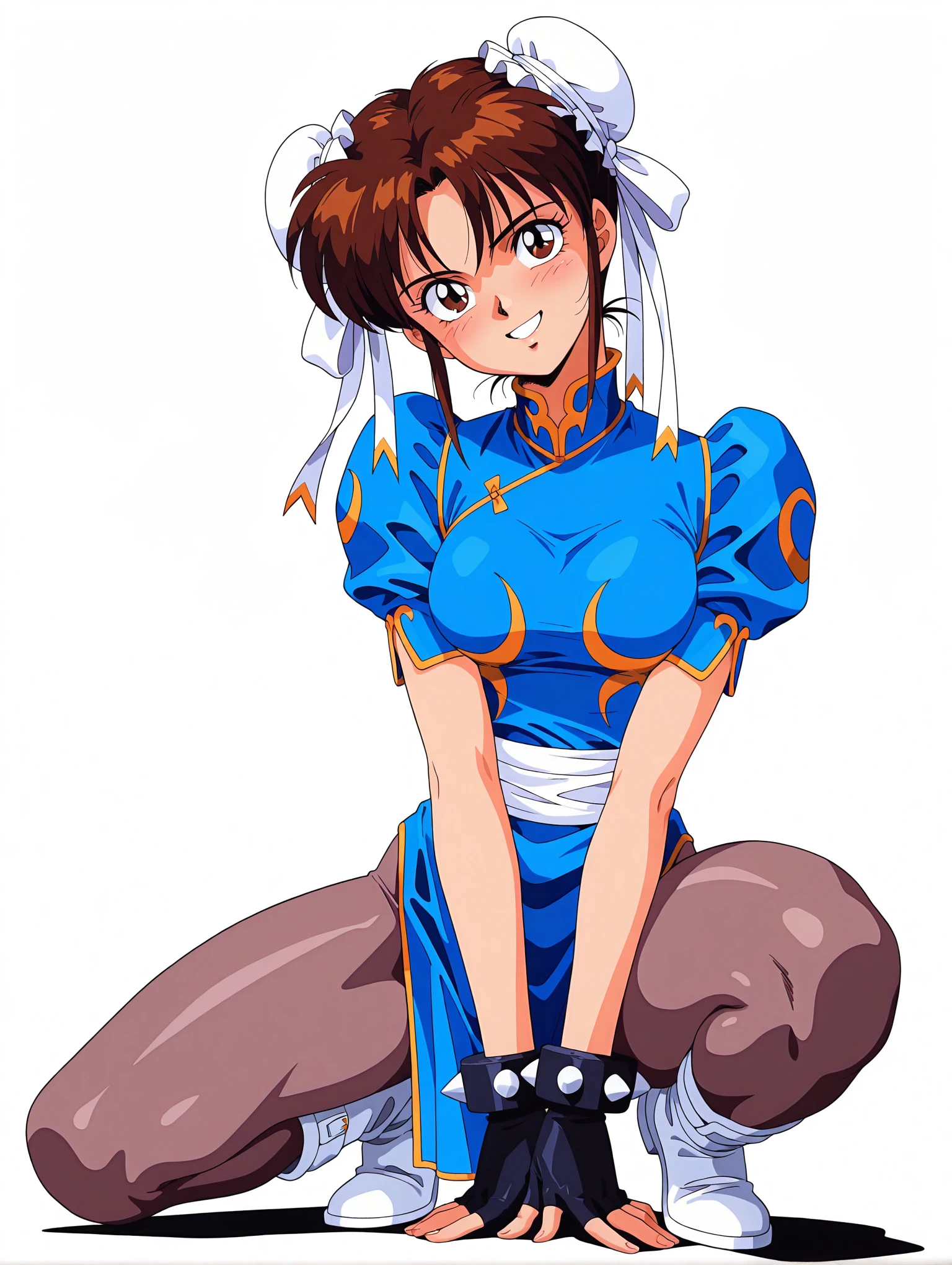 トリガーワード ・c_l,white double bun,brown hair,short hair,brown eyes,