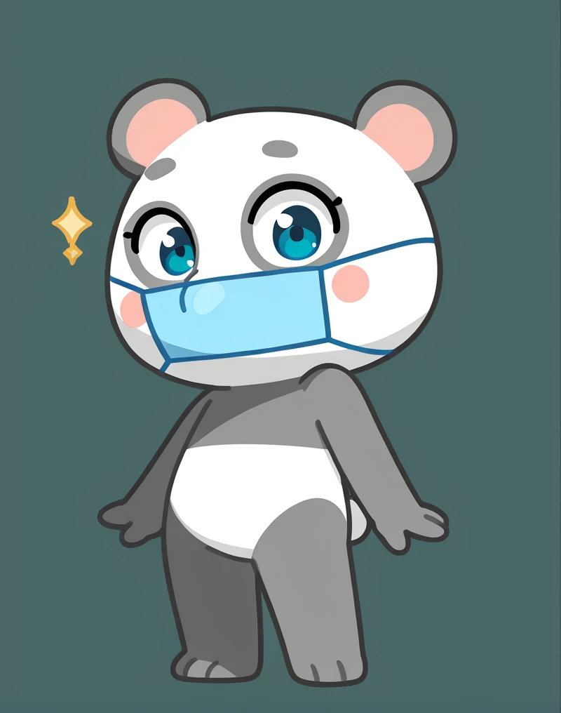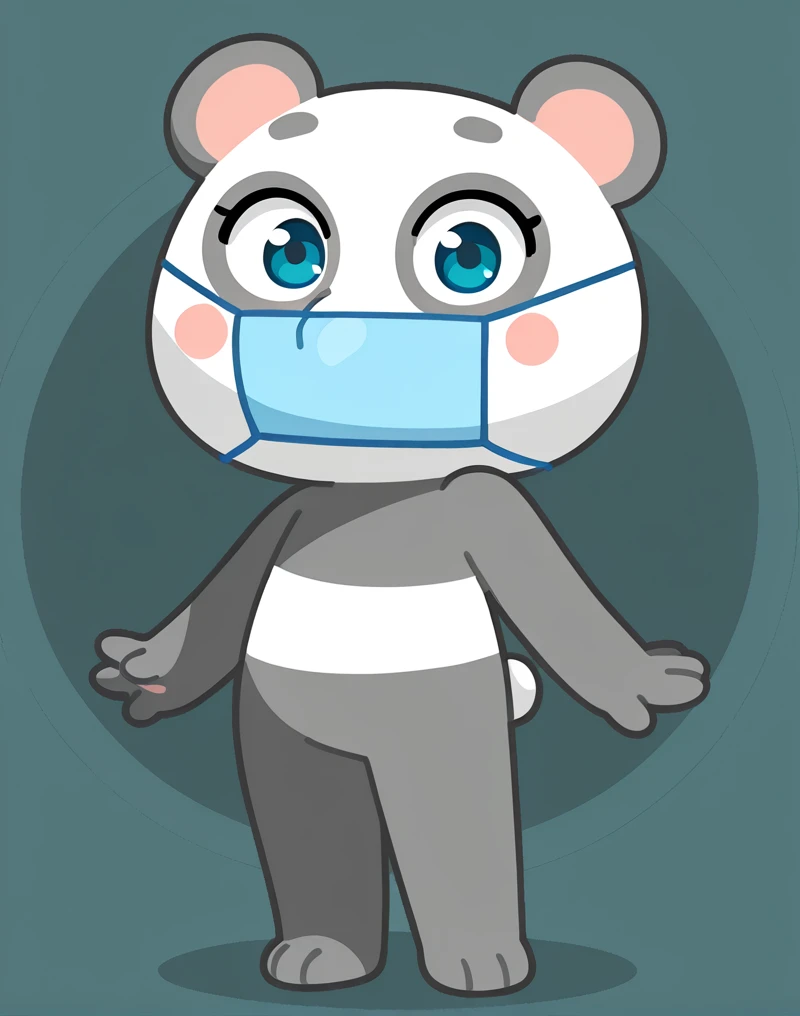 PandaMiaVK, giant panda, white and gray fur, two-tone fur, blue eyes, blush, surgical mask, panda ears, chibi, furry female, furry, 1girl