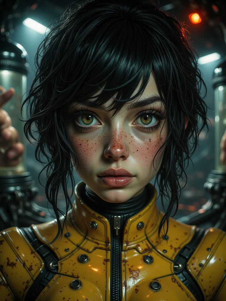 cables, green fluid, red glow