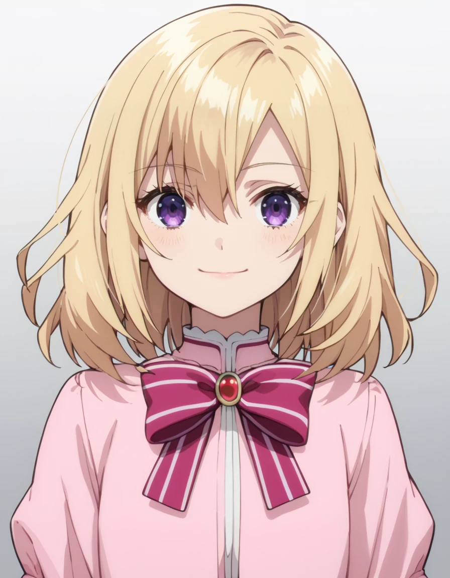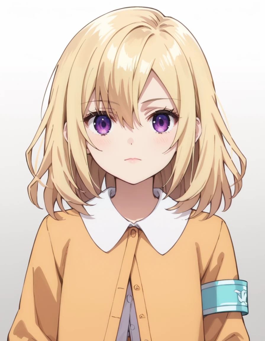 jill cervel (yariryuu), short hair, blonde hair, hair between eyes, dark purple eyesOutfit - Reincarnated