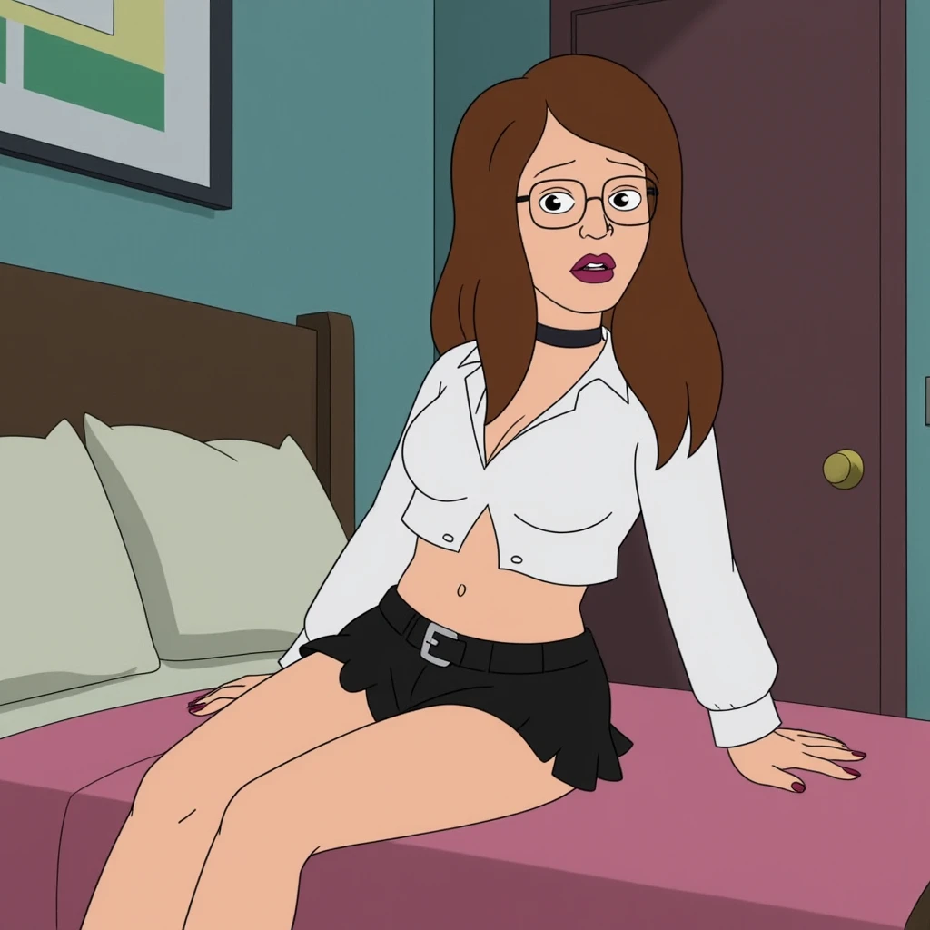 Amber is a college student at Southern Methodist University in Dallas, Texas, who hooks up with Bobby Hill on the King of the Hill revival series. She only appears in the Season 14 episode "Return of the King". She is voiced by Grey DeLisle. Amber is a young Caucasian woman with slender build, fair skin, and long brown hair. She wears a white short-sleeve V-neck midriff top, dark gray shorts with a red belt and white buckle, red and black ankle boots, and accessorizes with a black choker necklace, nose stud piercing, glasses, and purple lipstick.