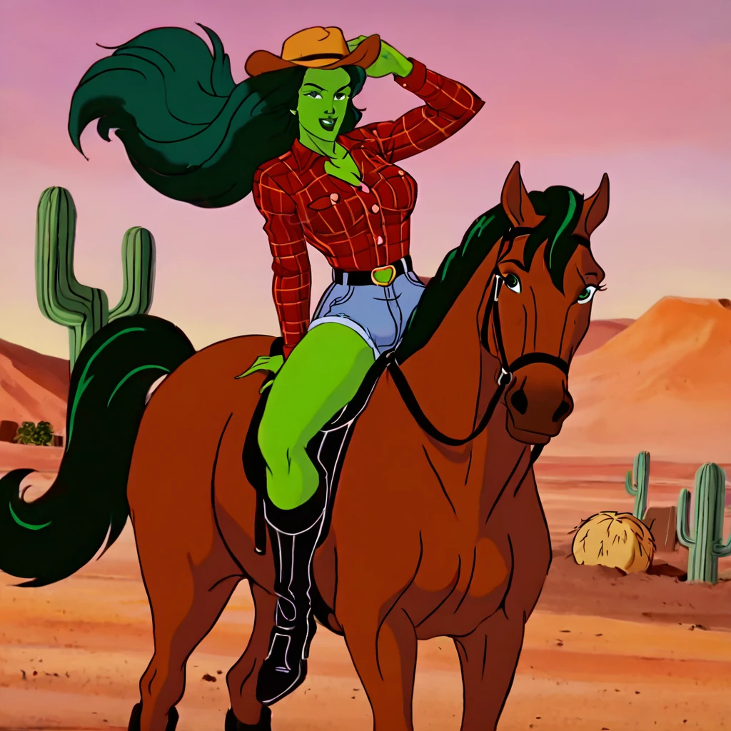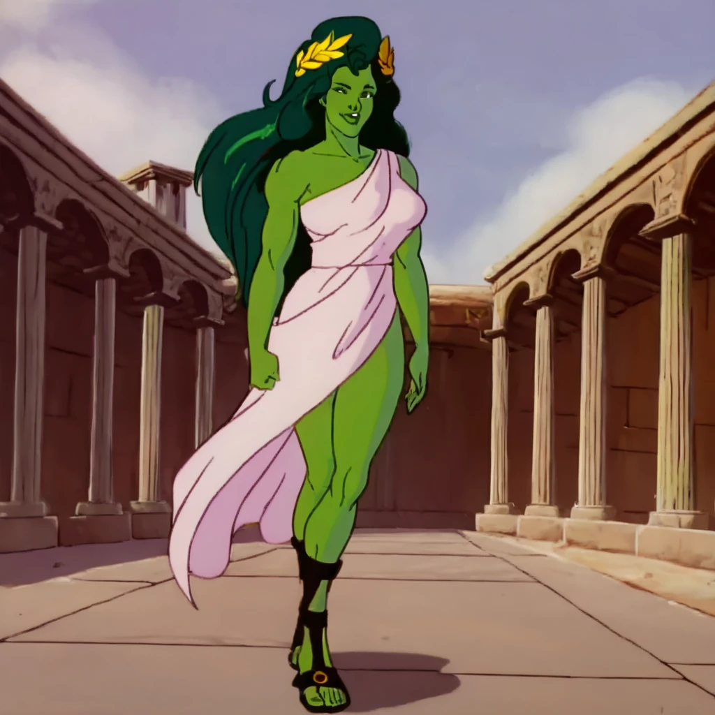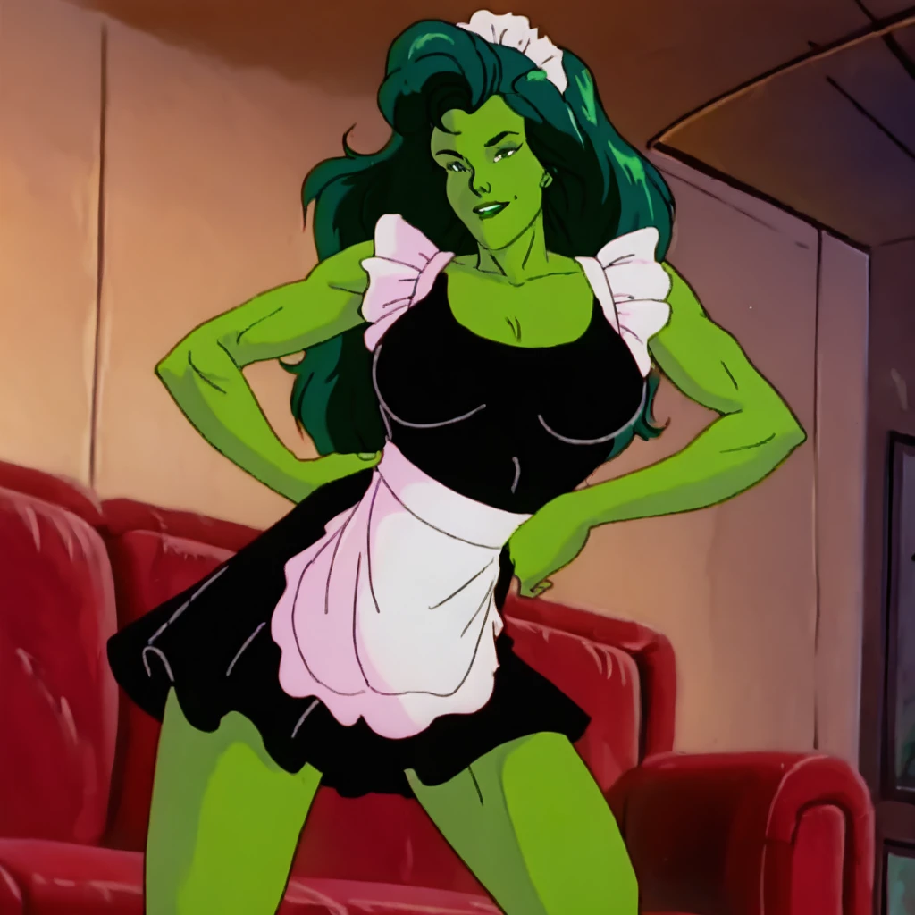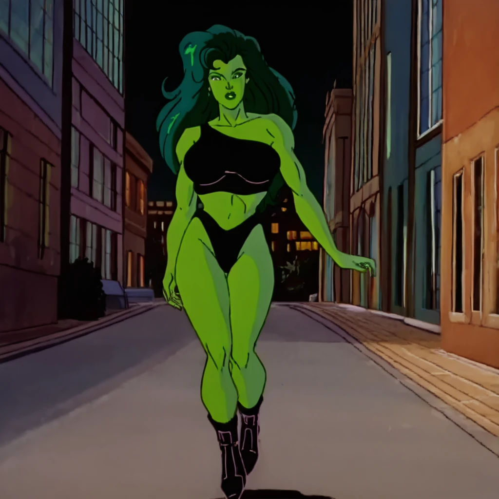She-Hulk, 1girl, solo, green eyes, green skin, green hair,