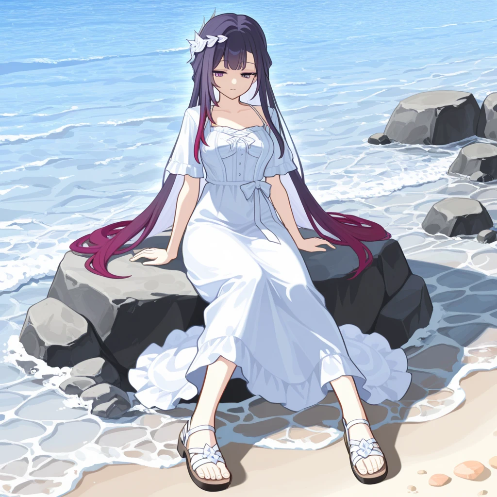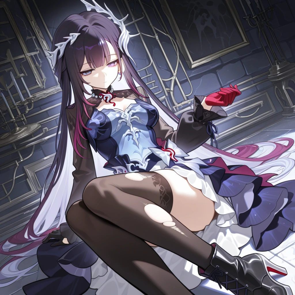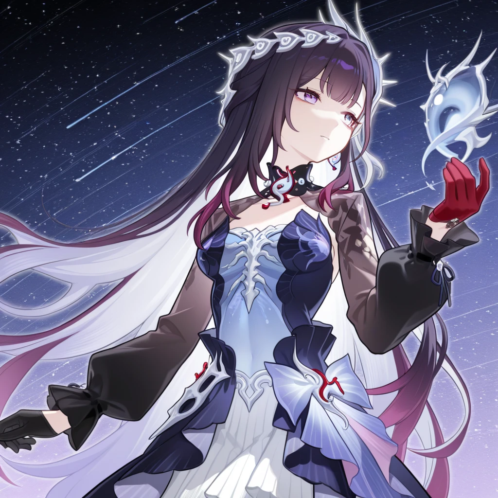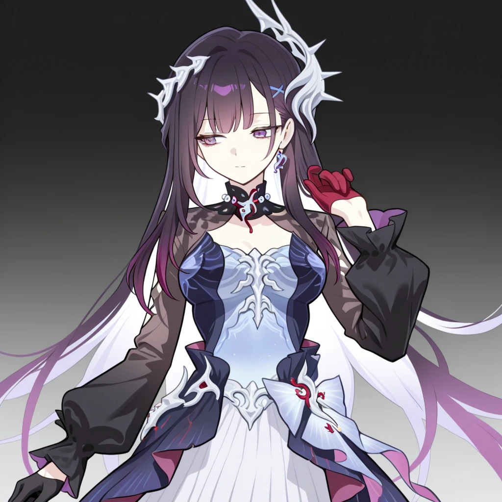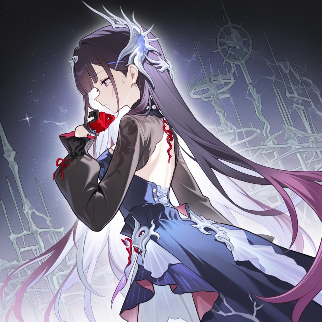 • long hair, dark hair, purple hair, gradient hair, very long hair
