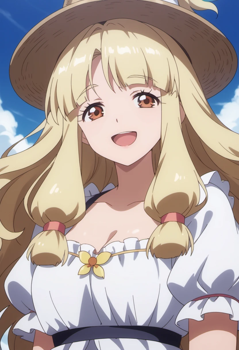 Trigger Words: hahajima fuwari (shadowverse flame), long hair, blonde hair, brown eyes