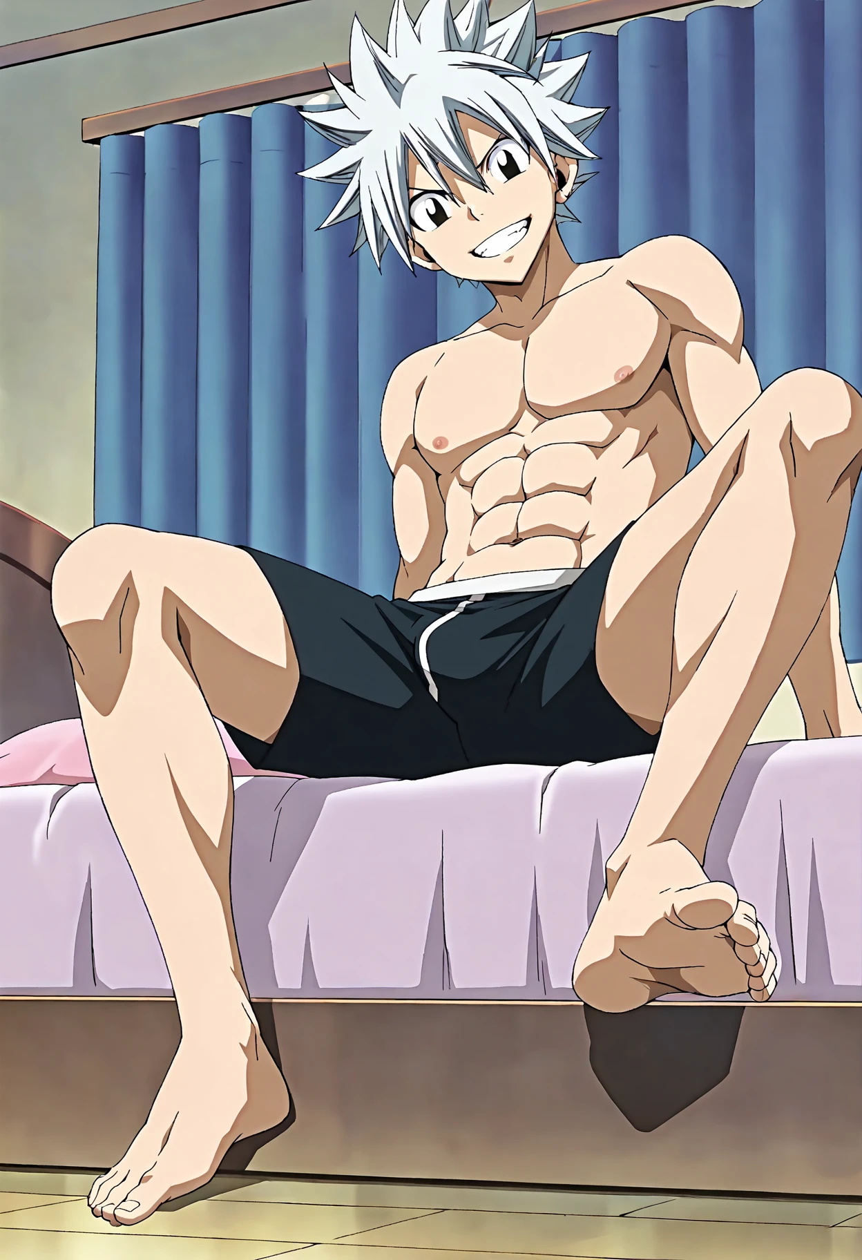 haru_glory,white hair,spiked hair,black eyes,muscular male
