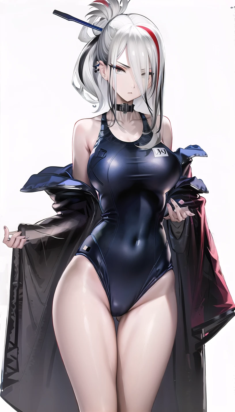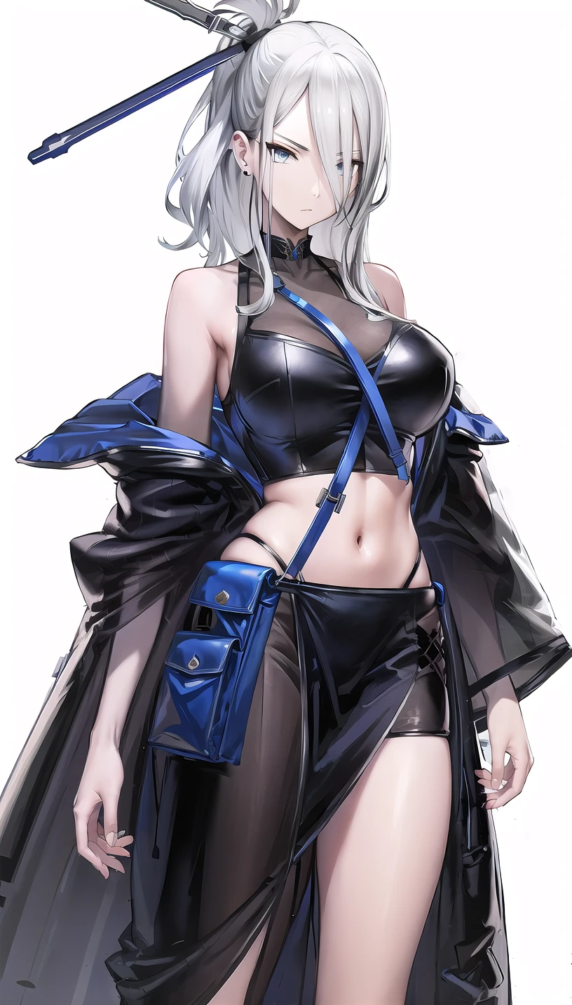 open coat, navel,fishnet pantyhose,