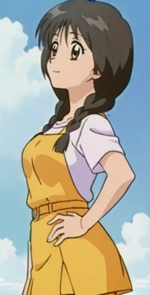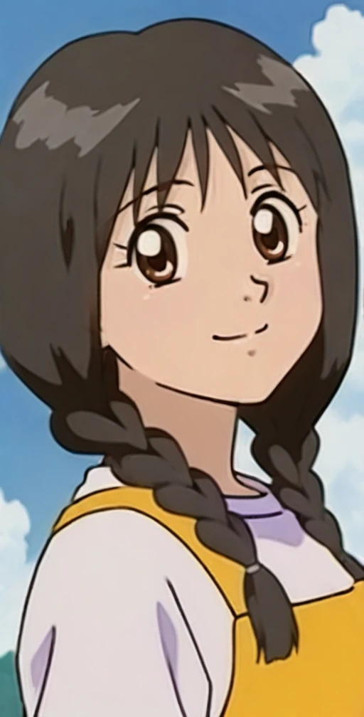 ,anime screencap, anime Coloring, <lora:Hitomi - Aka-chan to Boku V1:0.8>Hitomi,1girl, long hair, black hair, brown eyes, braid ,twin braids , Medium