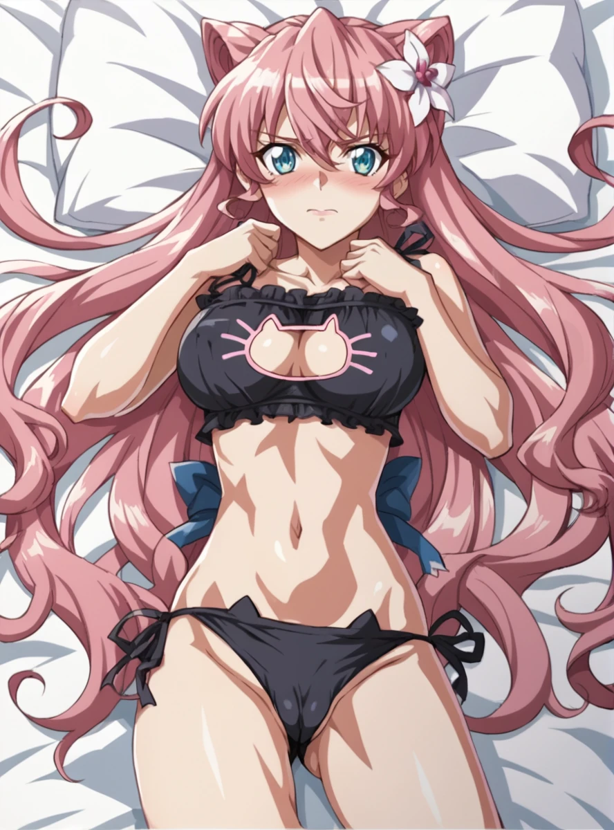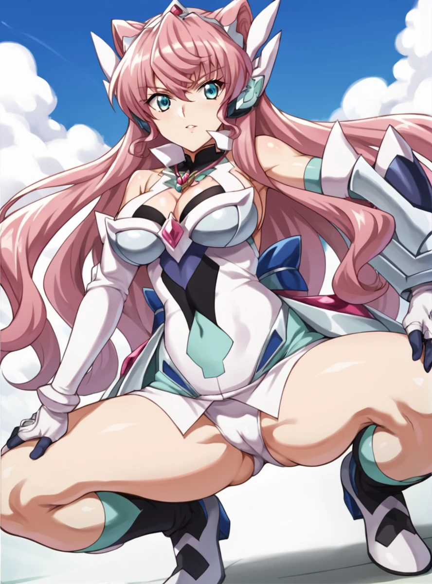 Prompts: , long hair, pink hair, maria cadenzavna eve, breasts, thighhighs, gloves, leotard, blue eyes, covered navel, very long hair, elbow gloves, anime coloring , focus, thick arms, open mouth, blue sky, screaming,looking at viewer, side view, hands on hips, single gauntlet,