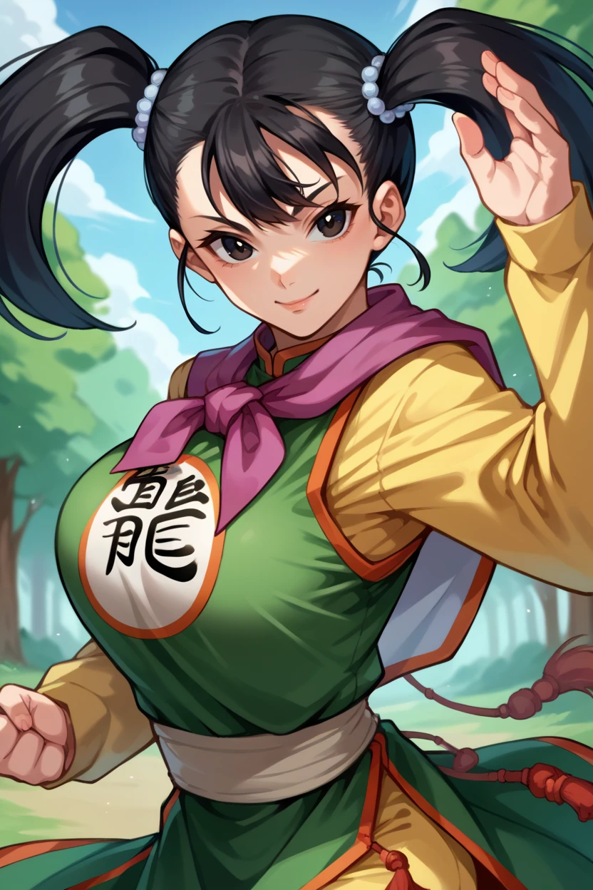Trigger word is "dq3fighter" and "black hair, twintails, black eyes" is required.