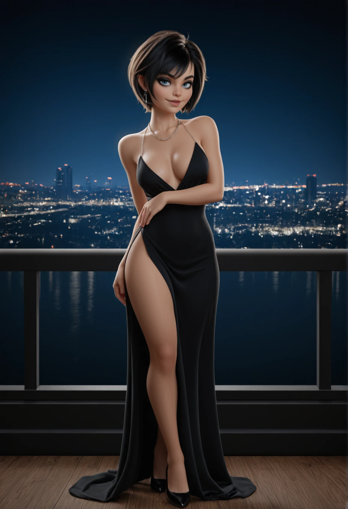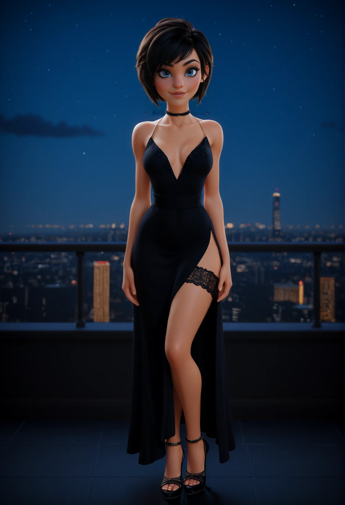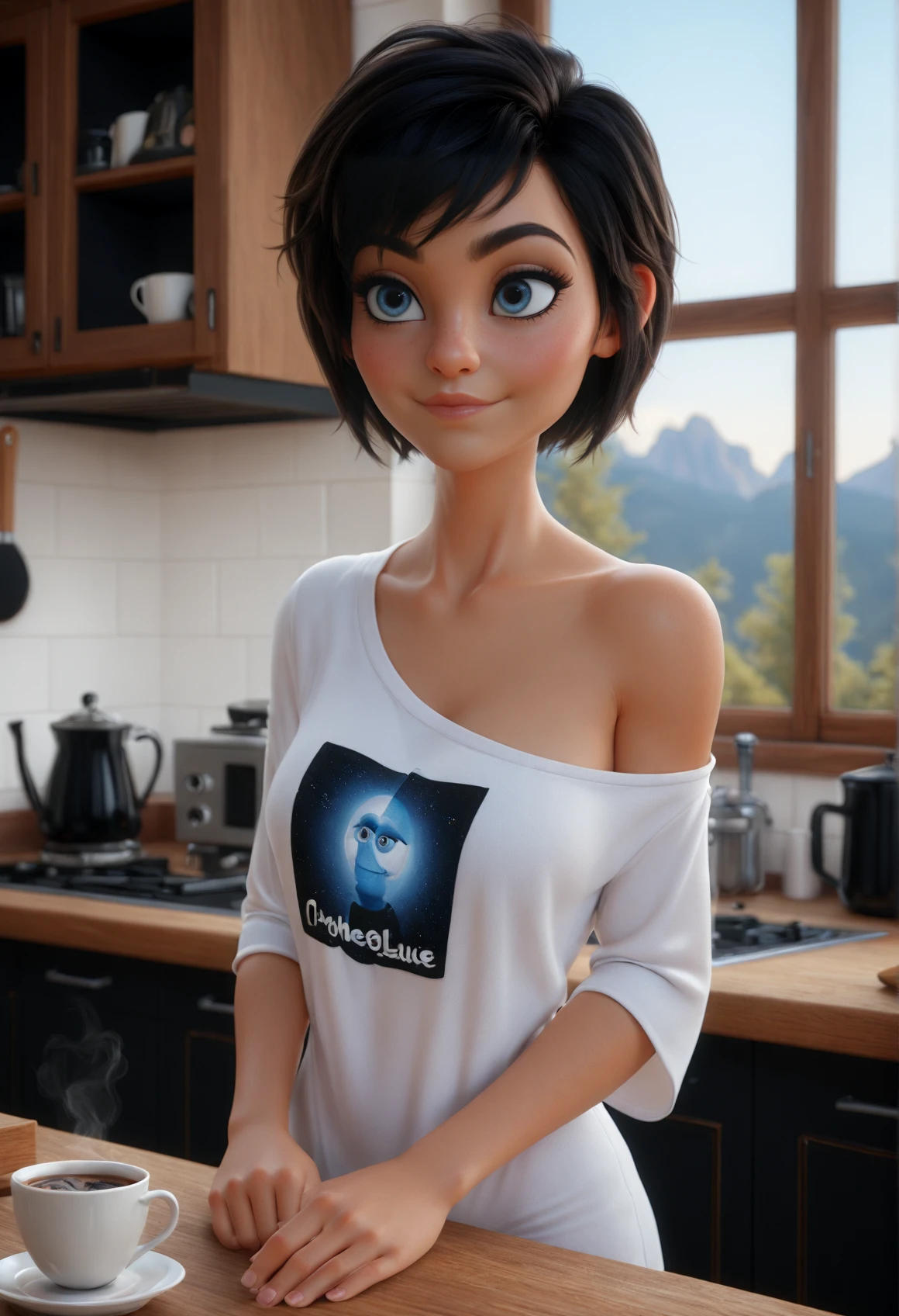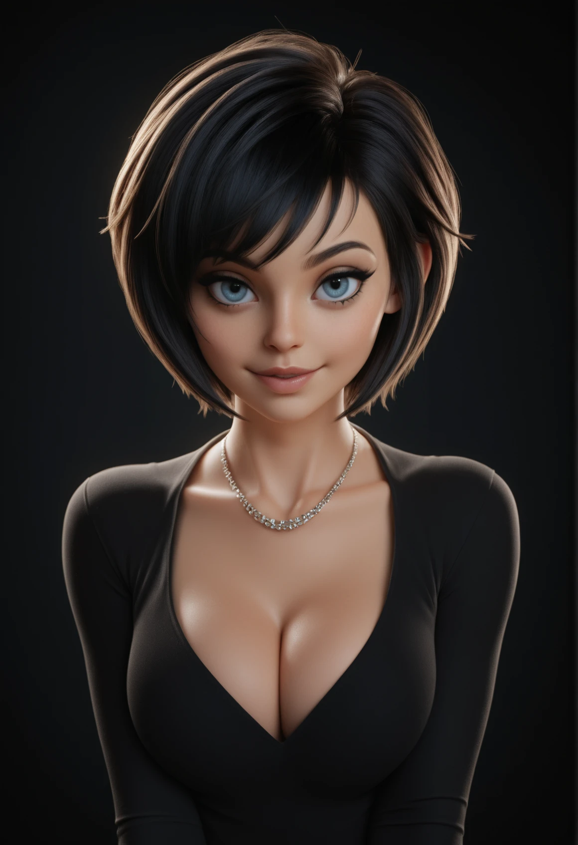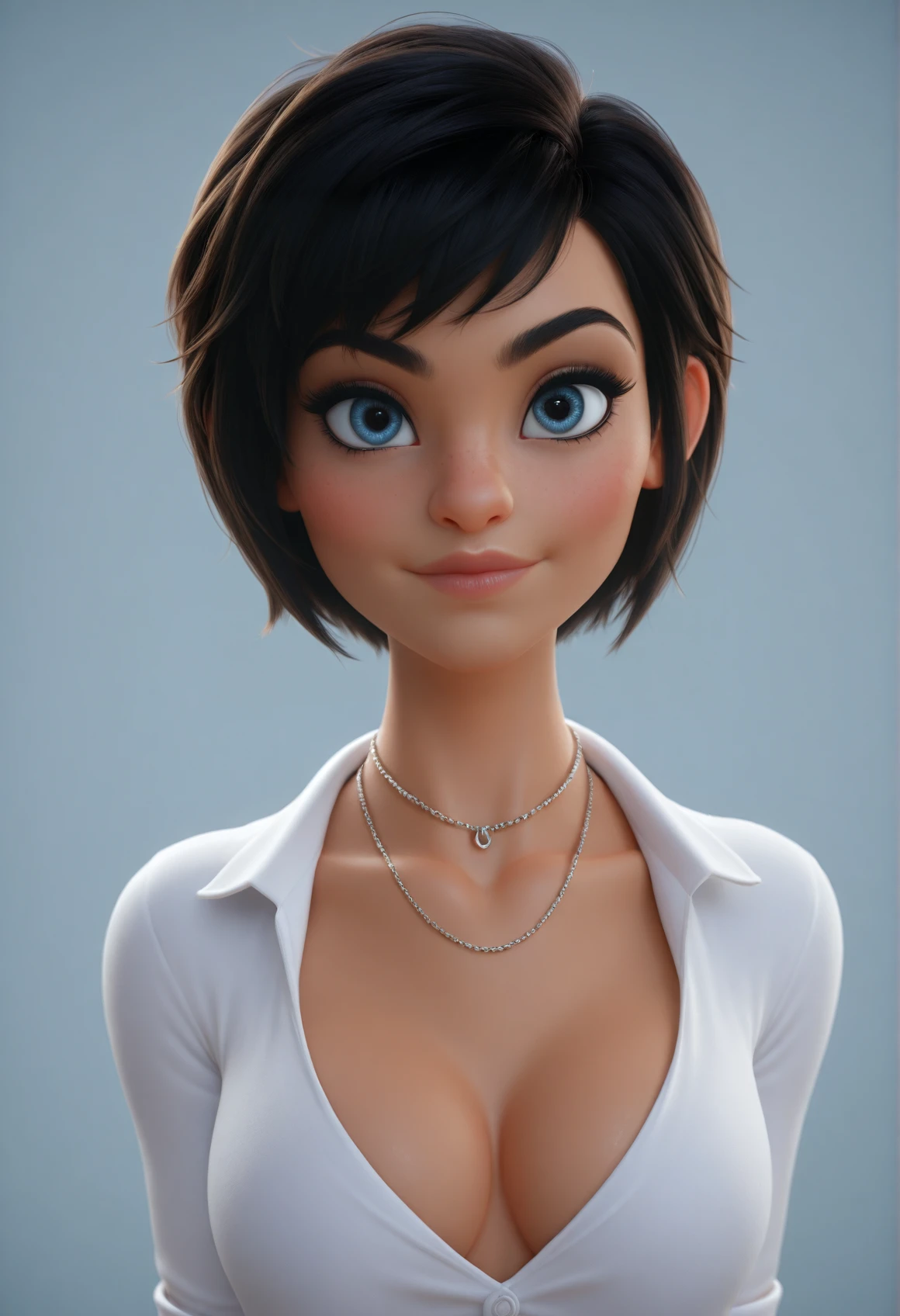 MichelleCute, black hair, short hair, blue eyes