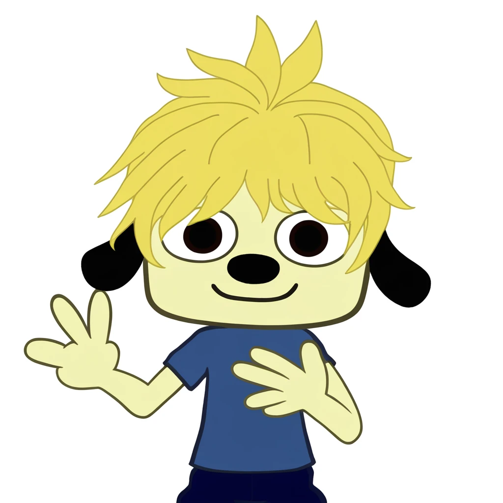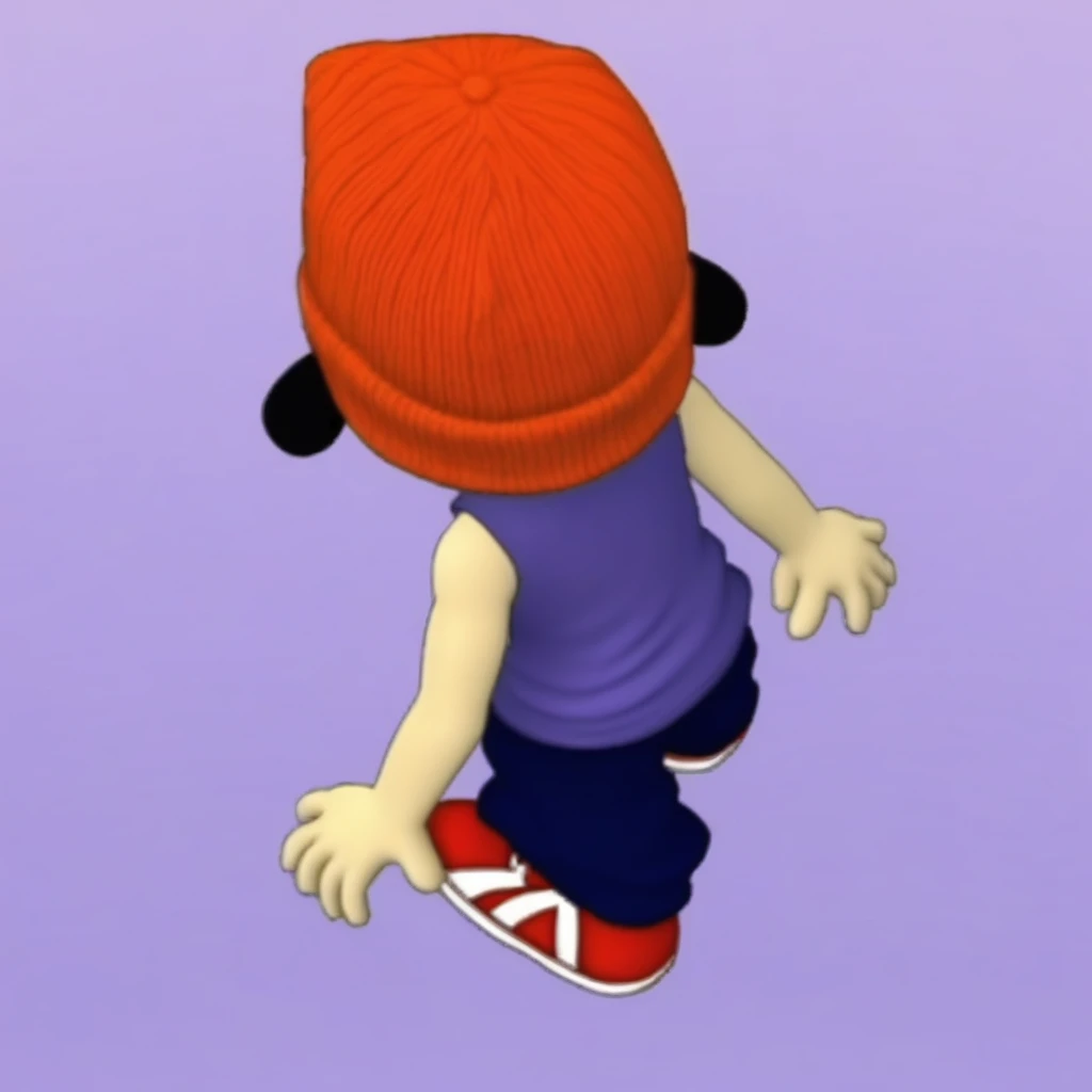 1boy, furry male, Parappa, Orange beanie, Animal ears, Blue tank top, Purple tank top, Baggy pants, Brown eyes, Red sneakers, Blonde hair