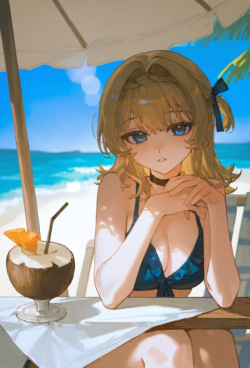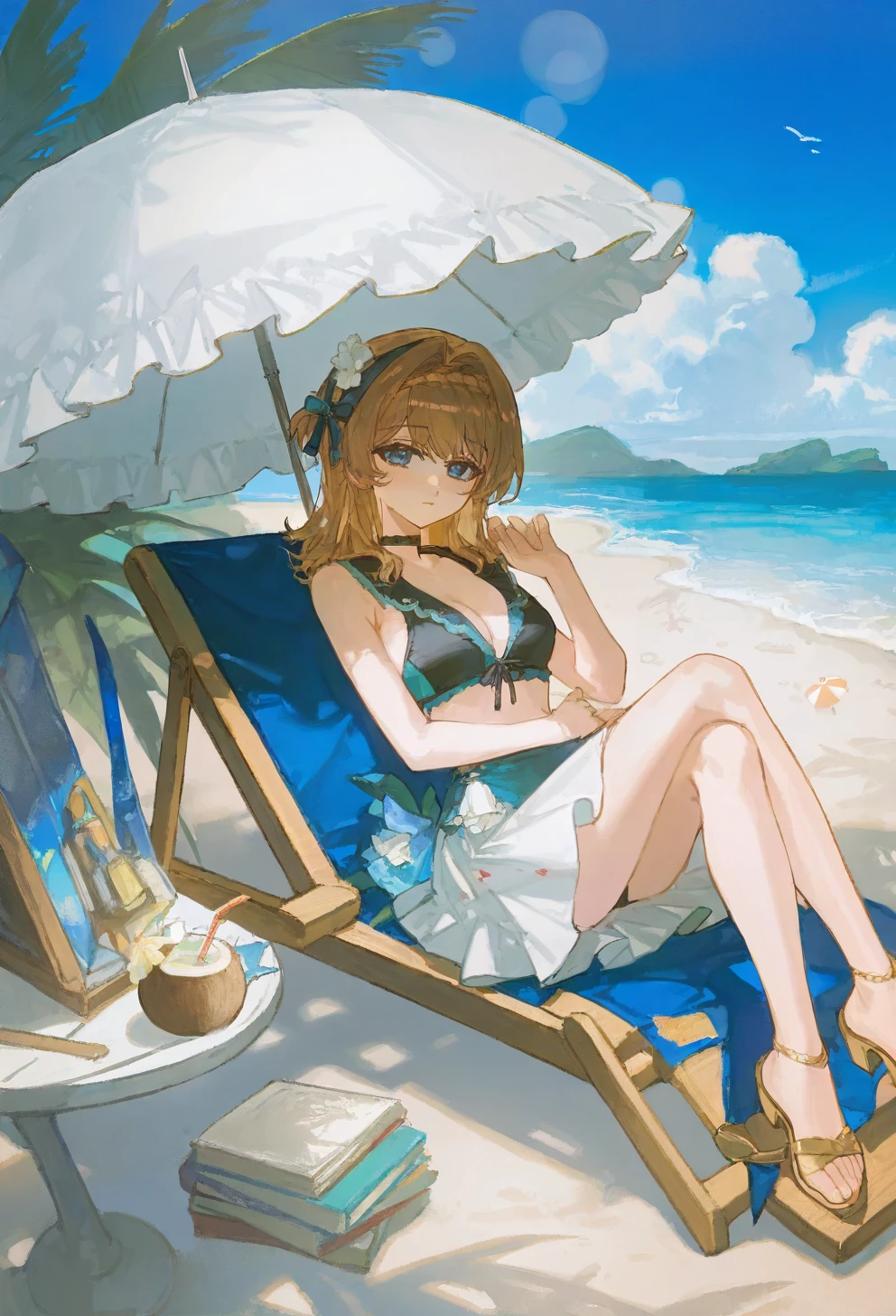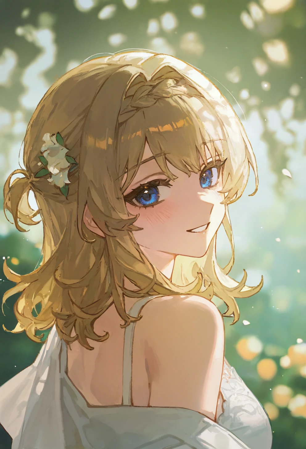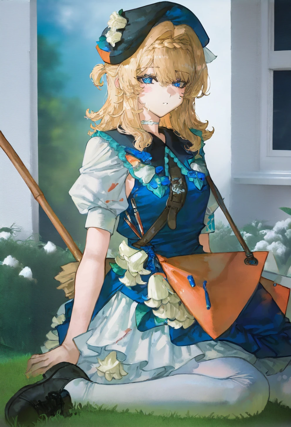 kphhpf, 1girl, solo, blonde hair, medium hair, hair intakes, braid, blue eyes, black beret, black headwear, hat flower, white flower, hair ornament, blue dress, white dress, shoulder bag, white pantyhose, black footwearLora仅发布在civitai未经授权禁止转载