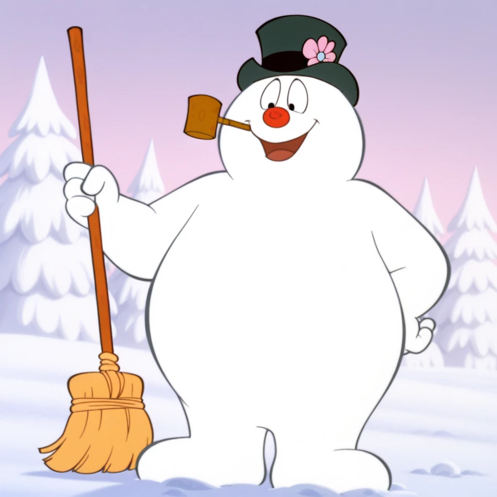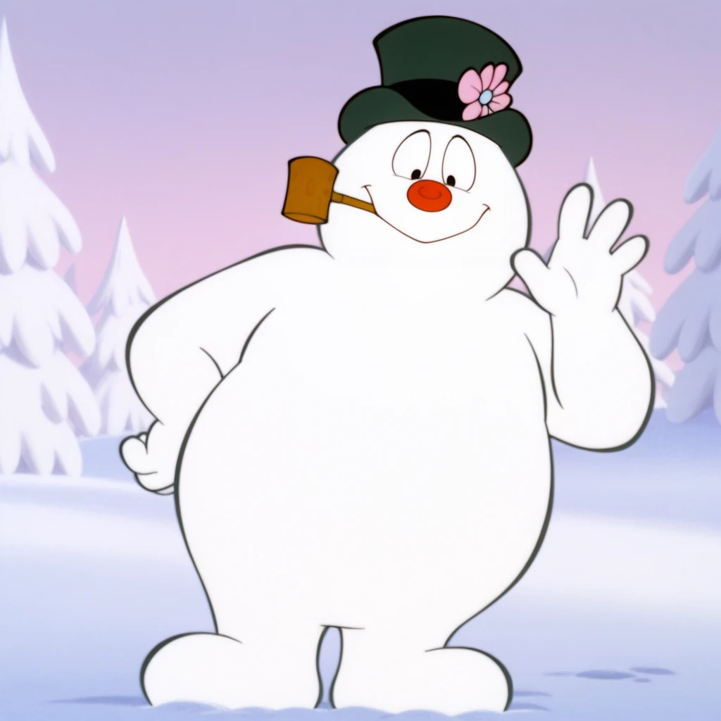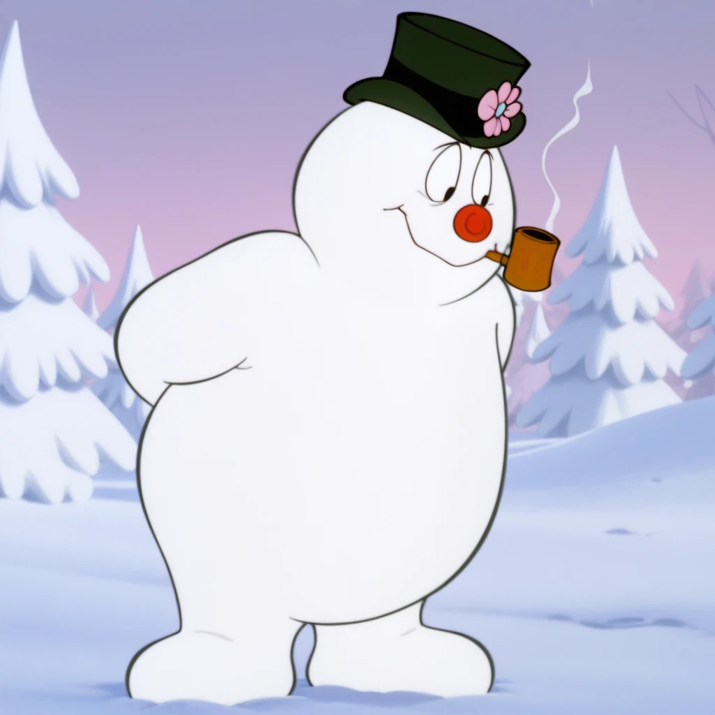 1boy, male, male focus, humanoid, snowman, white body, bald, black eyes, red nose, 4 fingers, plump, fat