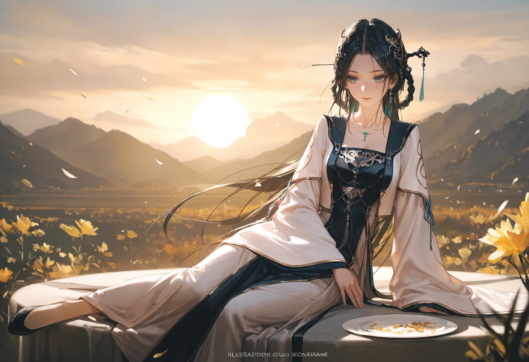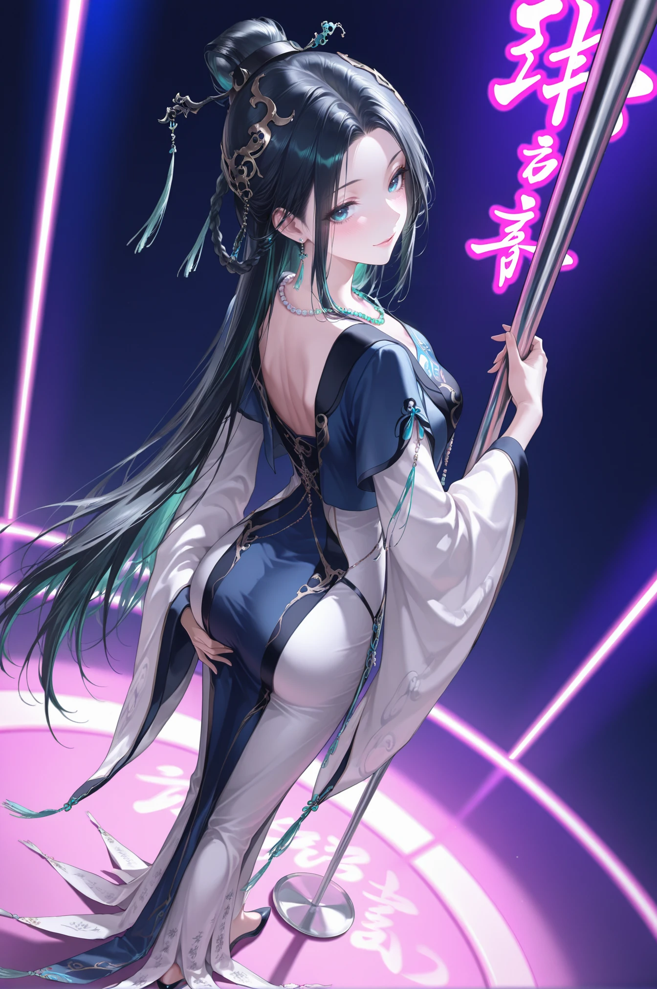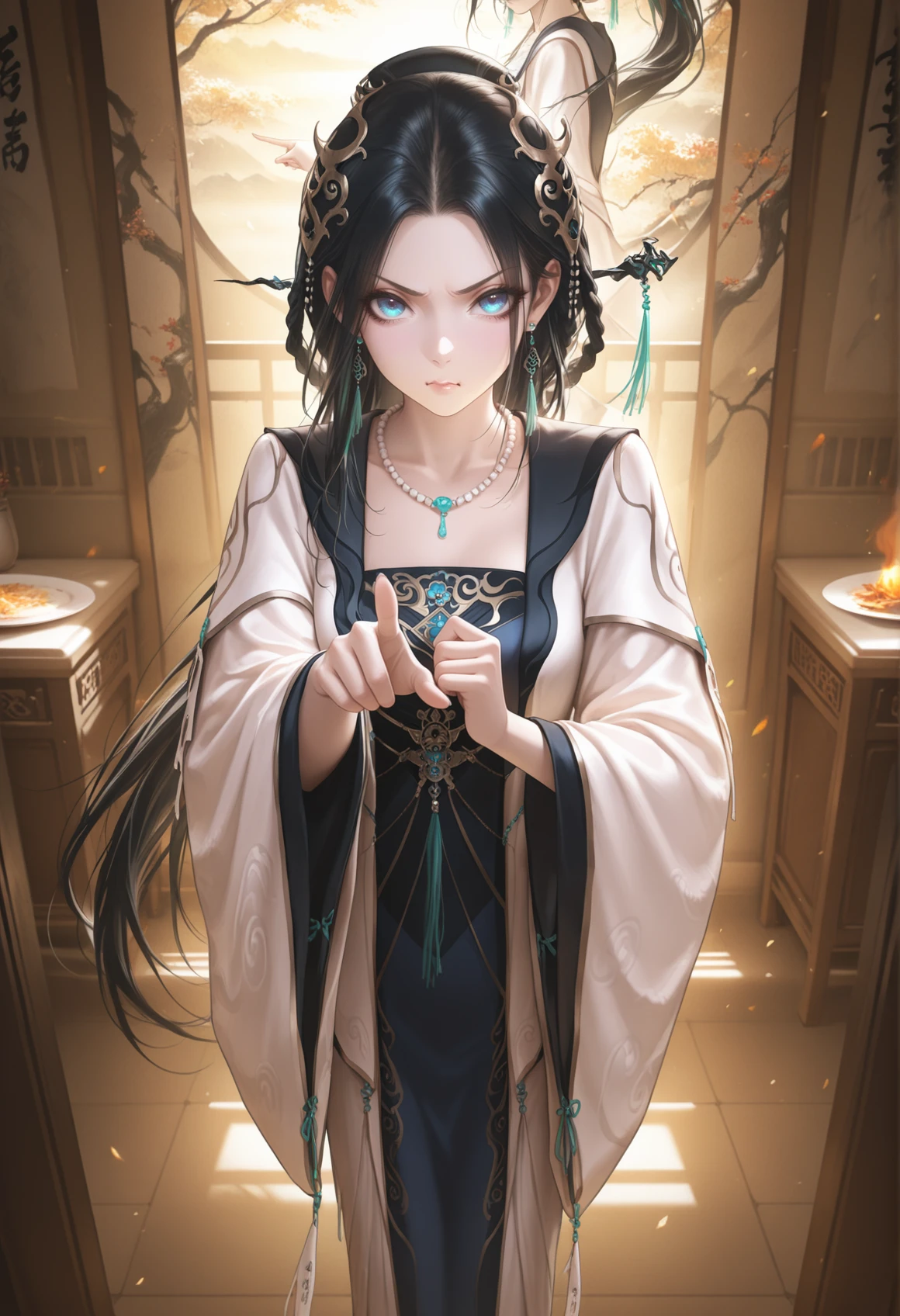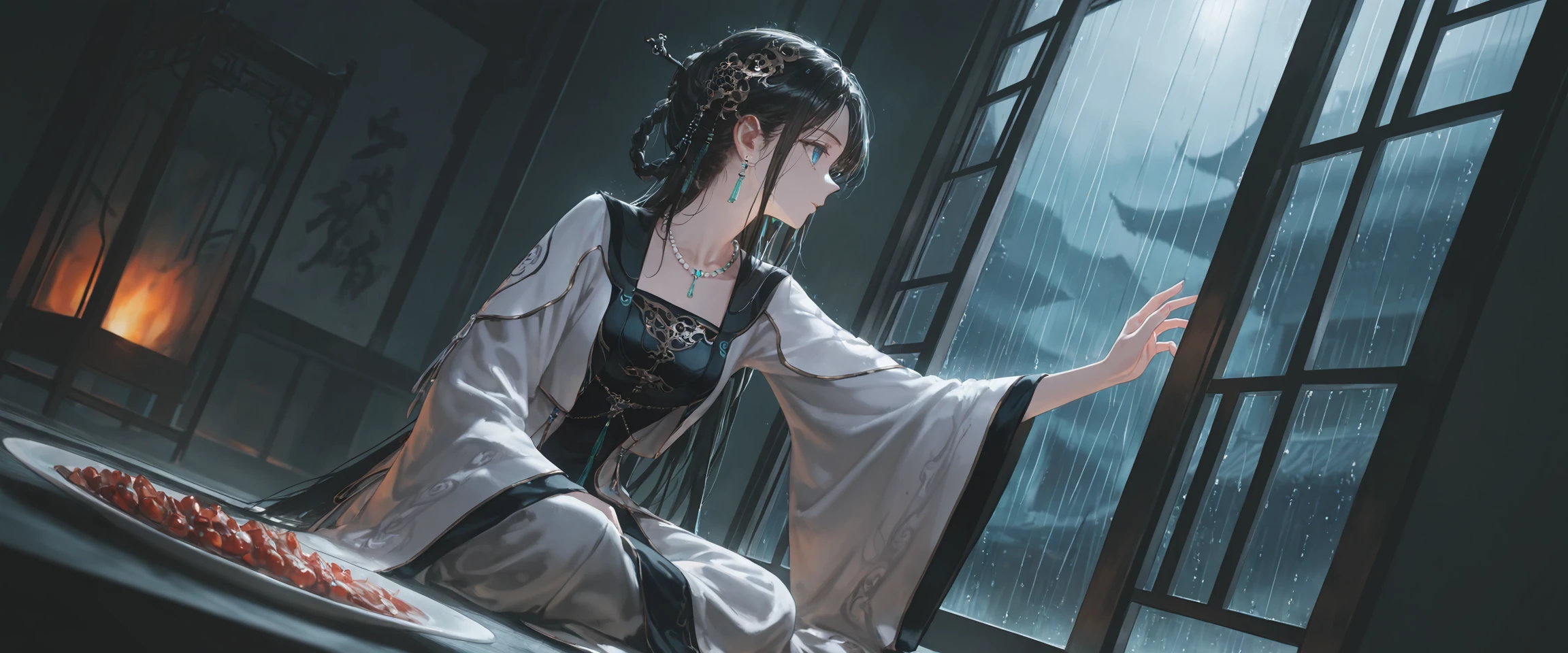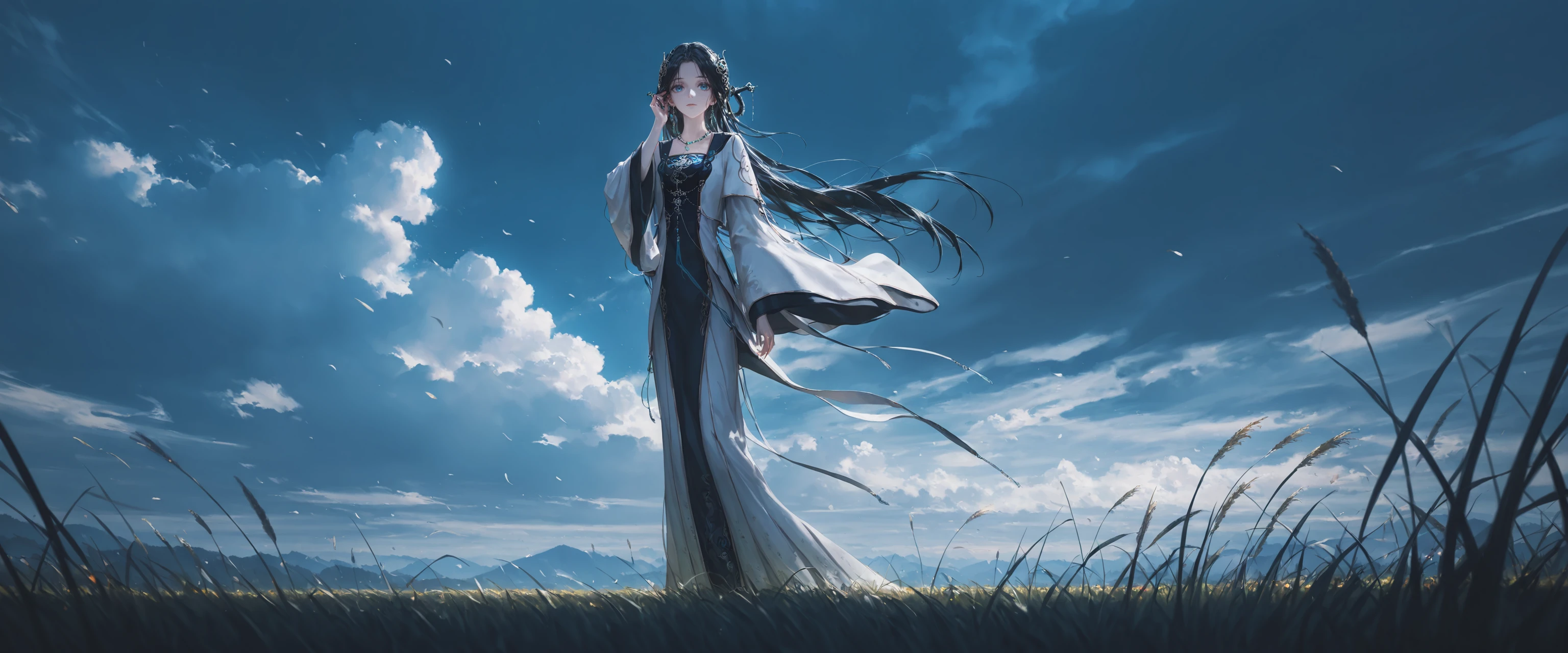Optional clothing tags衣服 :Yuguyifu,Yugu bead necklace,Yugu chinese clothes,Yugu earrings,Yugu hair ornament,Yugu hair rings,Yugu white and dark blue hanfu,Yugu long sleeves,Yugu wide sleeves,