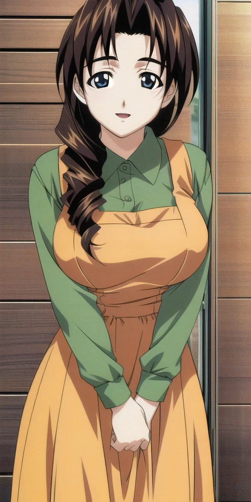 green_shirt_wing_collar_long_sleeves_brown_pinafore_dress: Her anime only OG outfit.