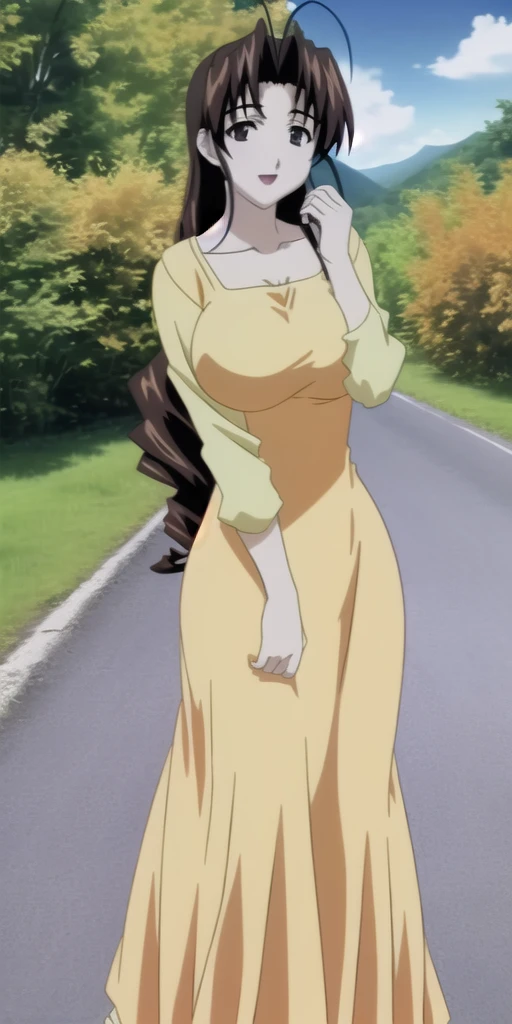YellowOrangeDress(Total failure, should be her reddish orange or brown dress with a yellow sweater and maybe a red scarf. only outputs the yellow dress if used without extra tags)