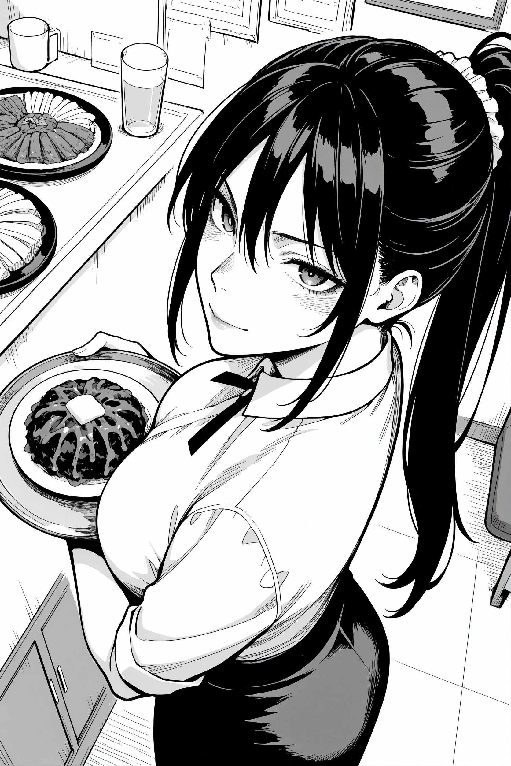 g1sh1, double-parted bangs, long ponytail, sidelocks