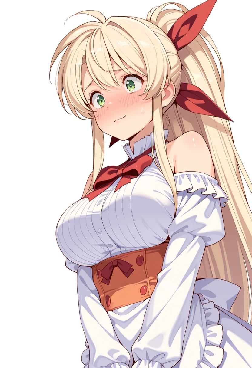 carson_cnr, 1girl, long hair, blonde hair, green eyes,sidelocks, ponytail, large breasts,very long hair,