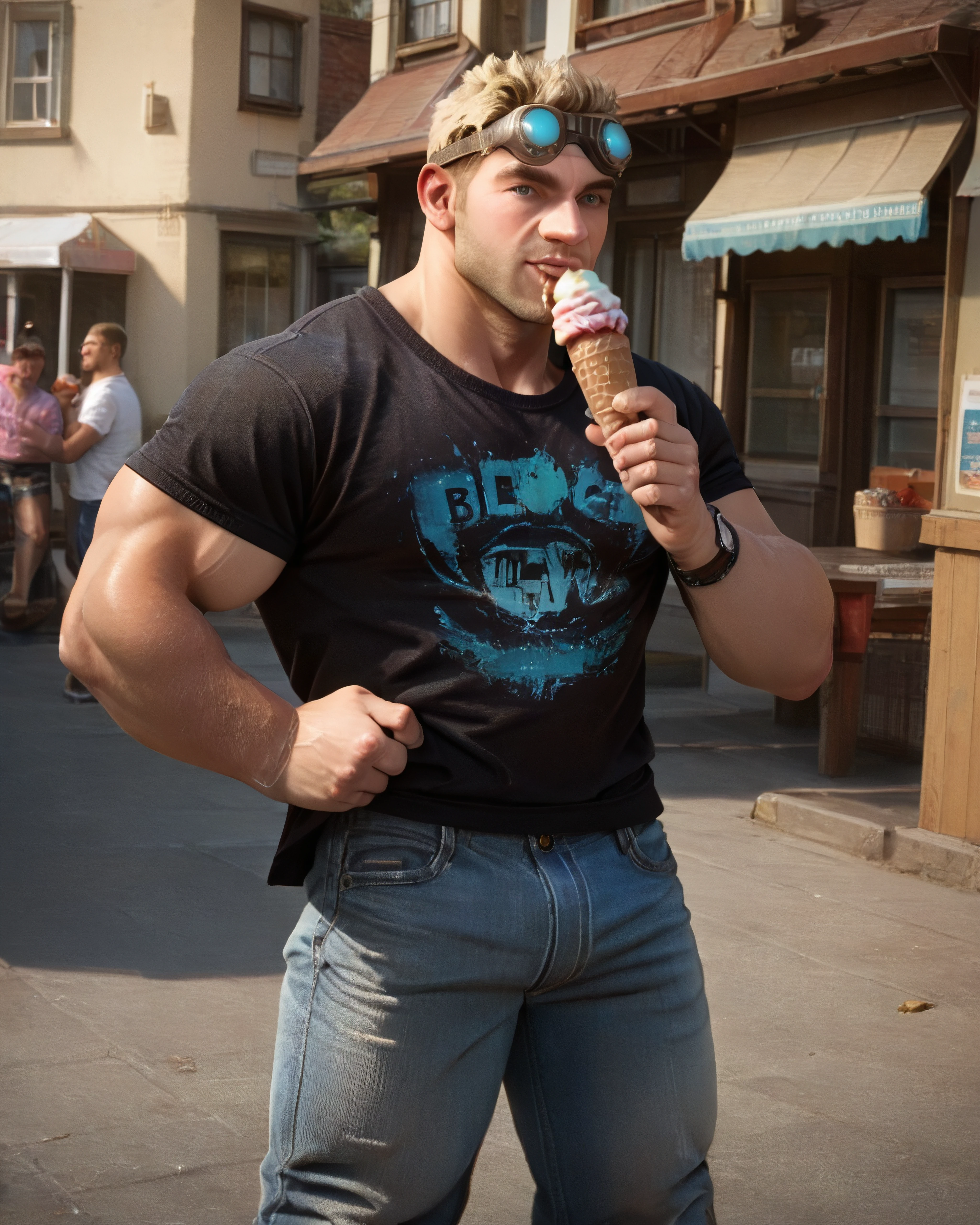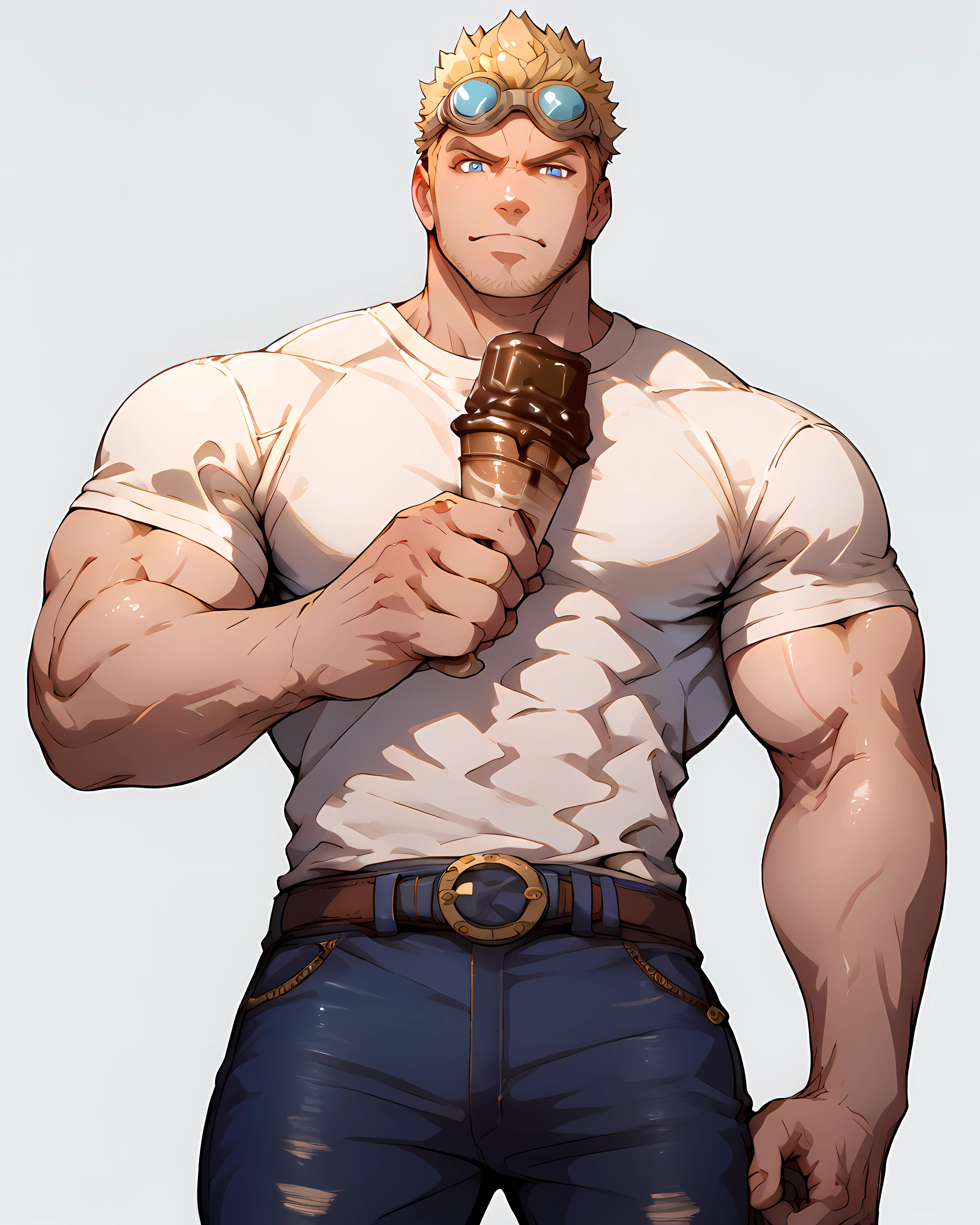 score_9, score_8_up, damon_baird, goggles, shirt, tie, long pants, beard, blonde hair, muscularSettings I Used: