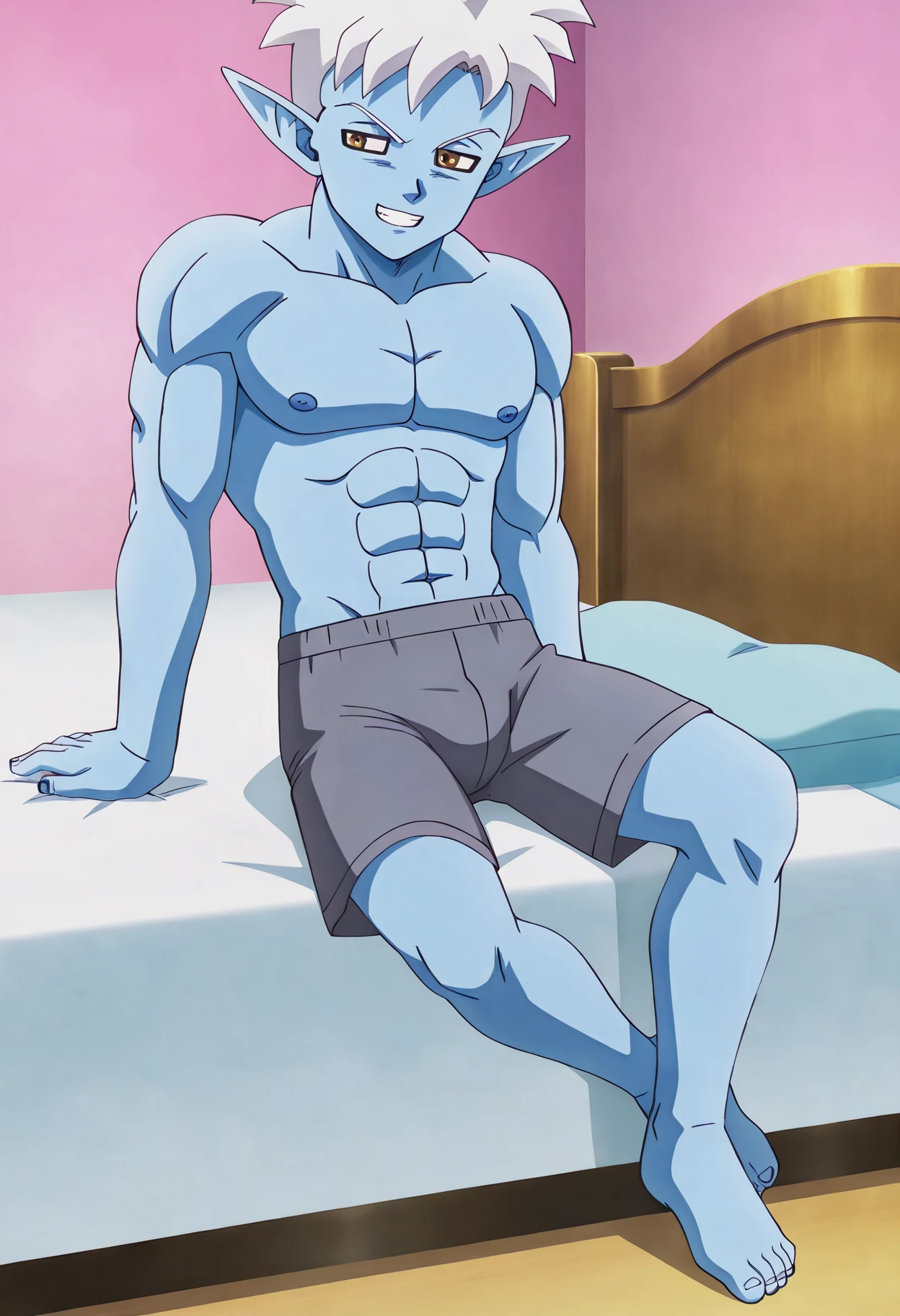 glorio,white hair,spiked hair,yellow eyes,pointy ears,blue skin