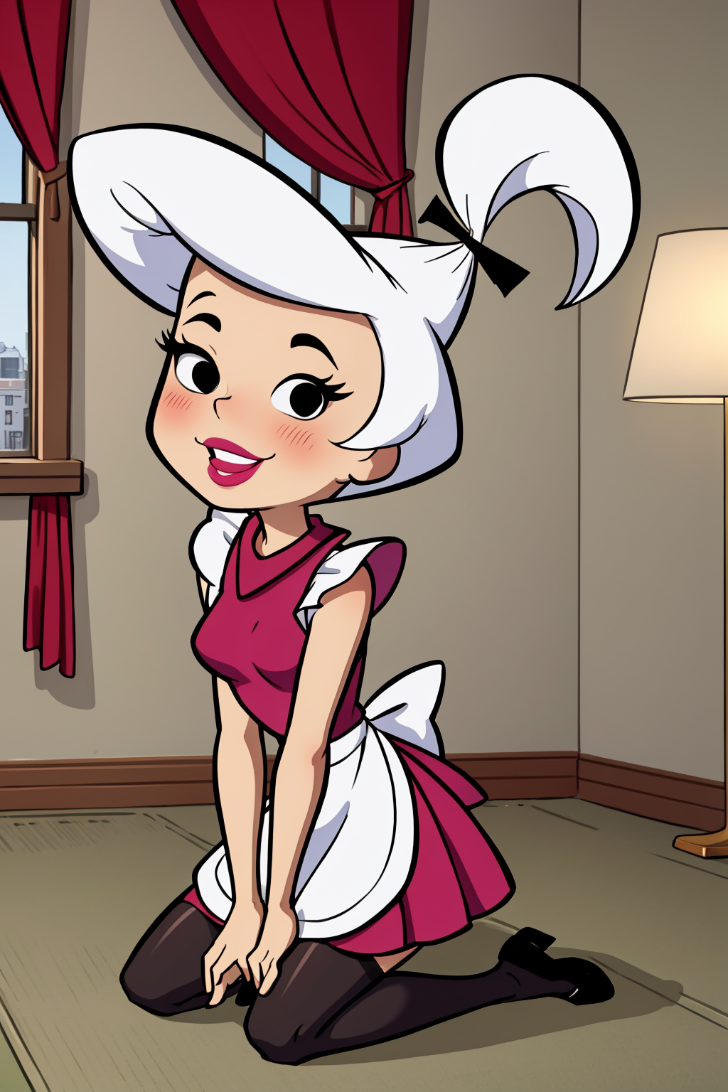 Other prompts : 1girl, white hair, black eyes, makeup, skirt